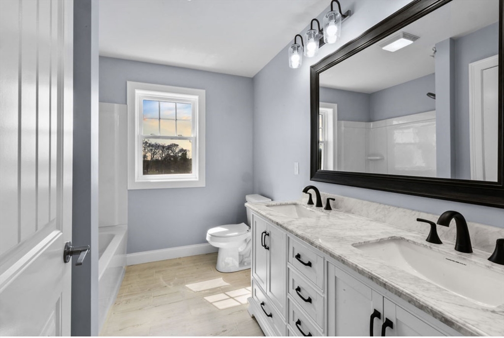 Presenting a newly constructed colonial that blends timeless design with modern luxury. This residence offers four bedrooms and three full baths, providing generous space for both relaxation and entertaining.The interior showcases an open-concept floor plan with beautifully finished hardwood floors that create a seamless flow throughout the main level. The gourmet kitchen is thoughtfully designed with quartz countertops, premium stainless steel appliances, and ample workspace for culinary excellence. Distinctive shiplap and designer accent walls add a touch of character and refinement, while the convenience of a second-floor laundry room enhances everyday living. The primary suite serves as a true retreat, complete with a spacious layout and a luxurious en-suite bath, offering a private haven at the end of each day.