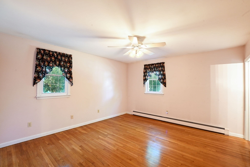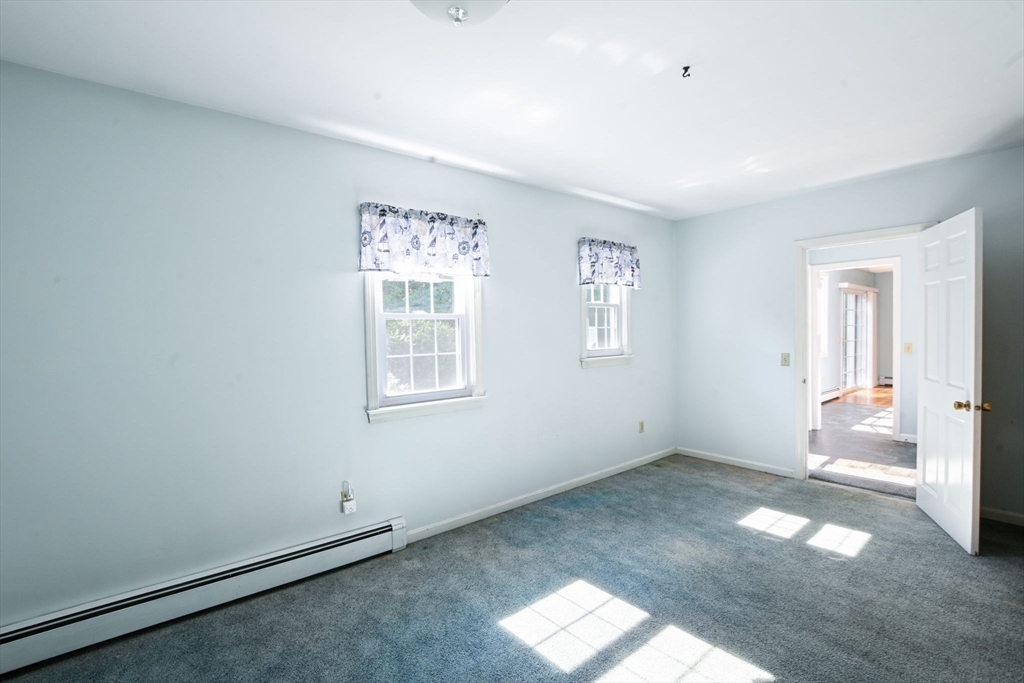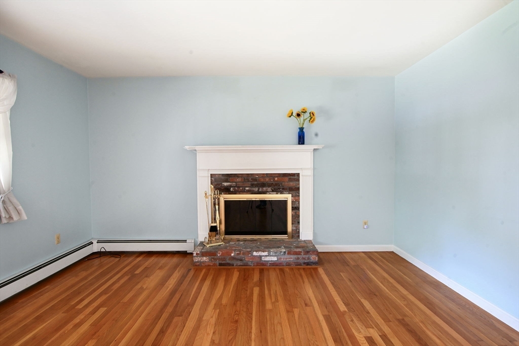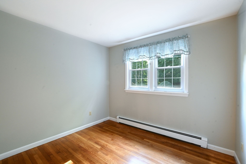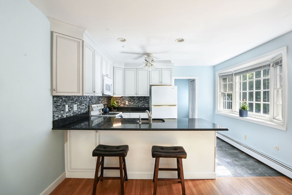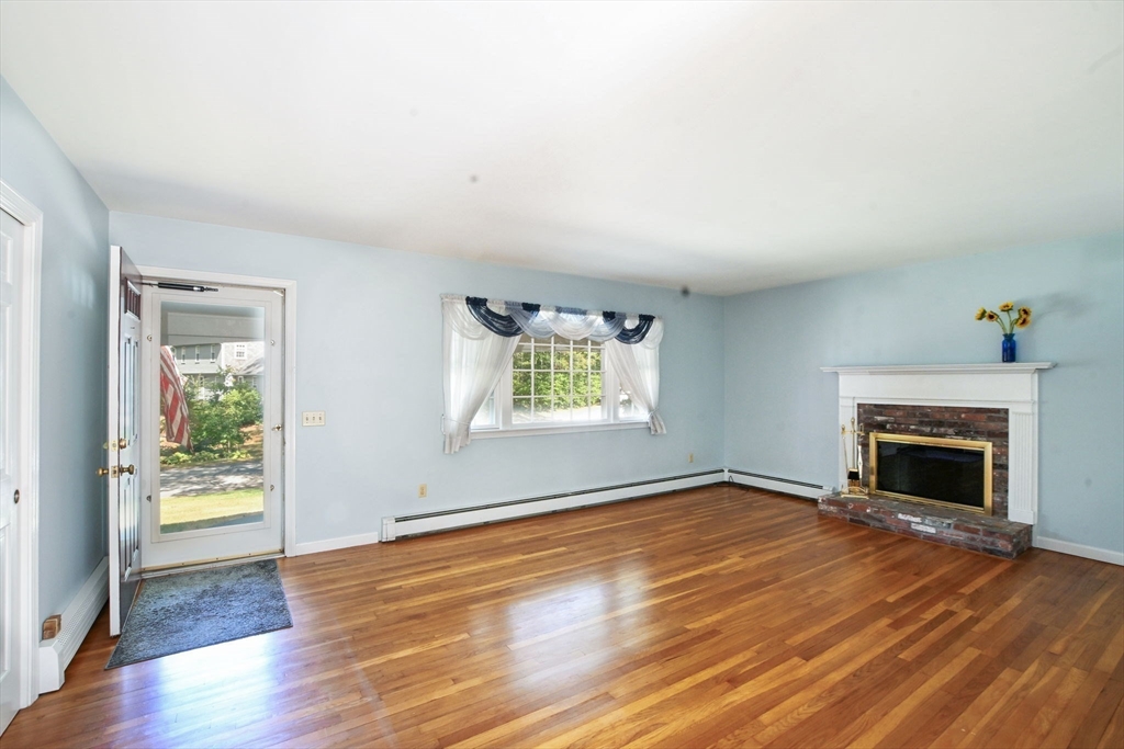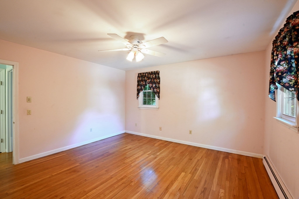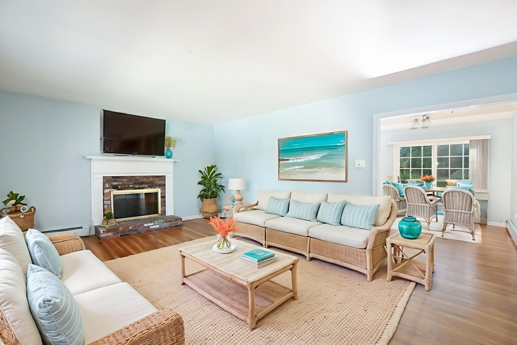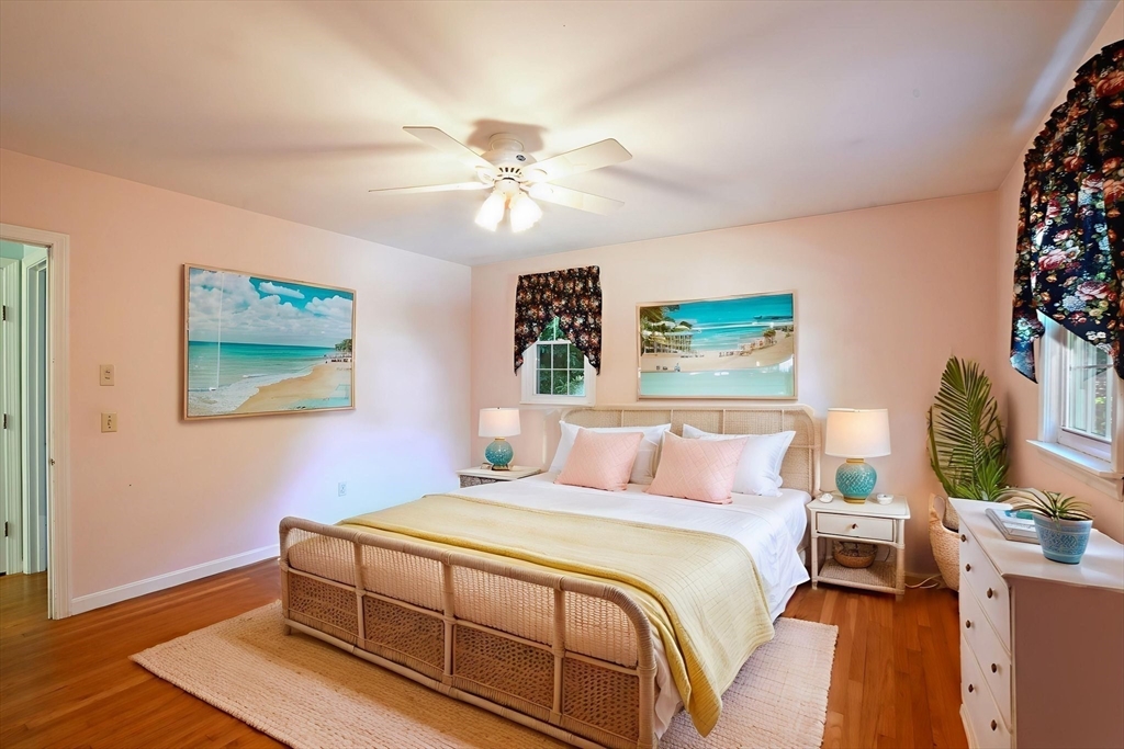 Meticulously cared for home tucked away on a quiet cul-de-sac minutes from town. Set on a 2/3 acre wooded lot, it offers privacy while still being part of the Galloping Hills neighborhood. The inviting front porch is perfect for relaxing, and the attached two-car garage makes bringing in groceries easy. Inside, you'll find hardwood floors, a cozy wood-burning fireplace, and an updated kitchen with quartz countertops. The primary bedroom includes its own ¾ bath and a walk-in closet. Two additional bedrooms share a full bath, and there's a bonus room ideal for guests, a home office, or den. The basement has built-in storage shelves, and a backyard shed holds lawn tools and equipment. Many updates over the years, including roof, kitchen, baths, windows & double lined oil tank. Enjoy easy access to nearby beaches, downtown shopping and dining, the marina, and the Cape Cod Canal. This home offers a perfect blend of comfort, privacy, and convenience.
