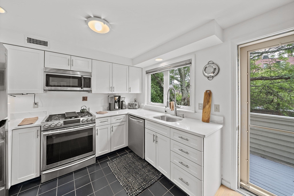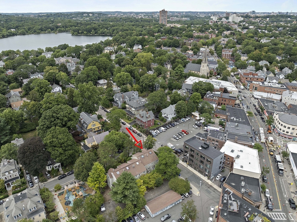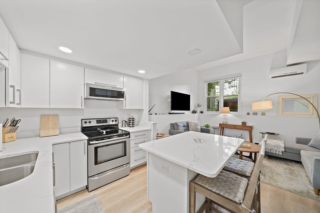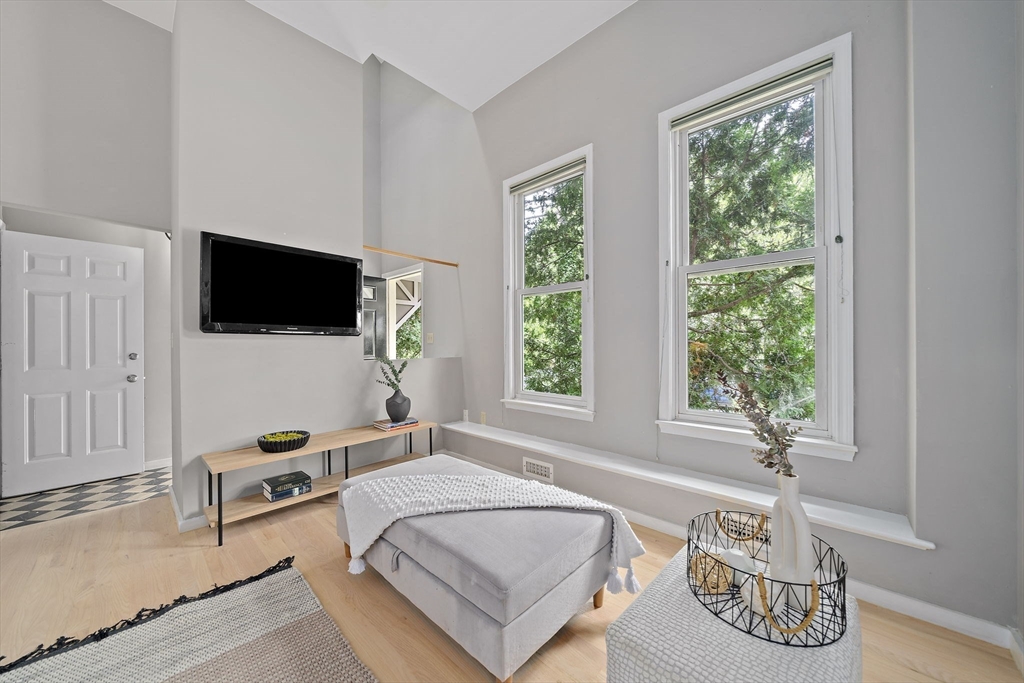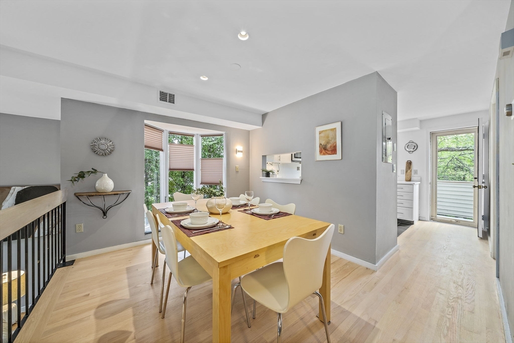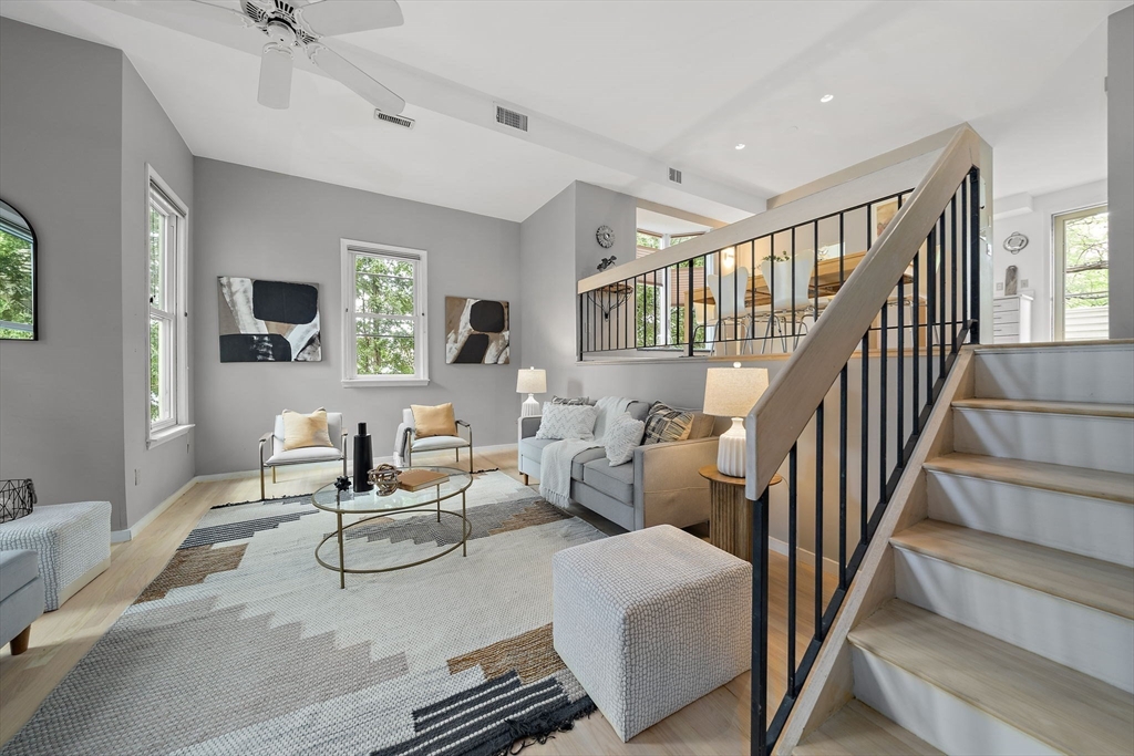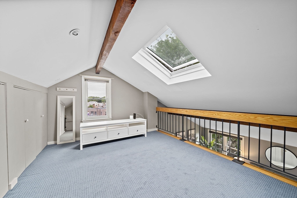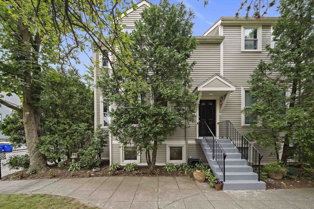 Very unique, rarely available Pondside offering - renovated modern multi-level townhouse-style home, with a 2nd income-producing unit for ADU: au pair, multi-generational living, or Airbnb. The upper townhouse on 3 floors offers a 2025 renovated kitchen, 3 beds and 1.5 baths, office nook, spacious rooms w/vaulted ceilings, dining room open to living room w/loft elevation, private balcony, skylights, open wood beams, built-ins, & private laundry. The beautifully renovated lower unit w/fully-equipped island kitchen open to the living room offers a large bedroom and walk-in closet w/laundry, and designer bath. This unit has been used as a high income-producing Air BnB grossing $5K/mo, but can be rented out long-term as well. Two car parking (one in garage) and private yard on corner lot (this is an end unit). Adjacent to Brewer-Burroughs playground and tot lot, a (free) Boston Municipal parking lot, EV charging station, shopping on Centre St, Green Street T, Arboretum, and Jamaica Pond.