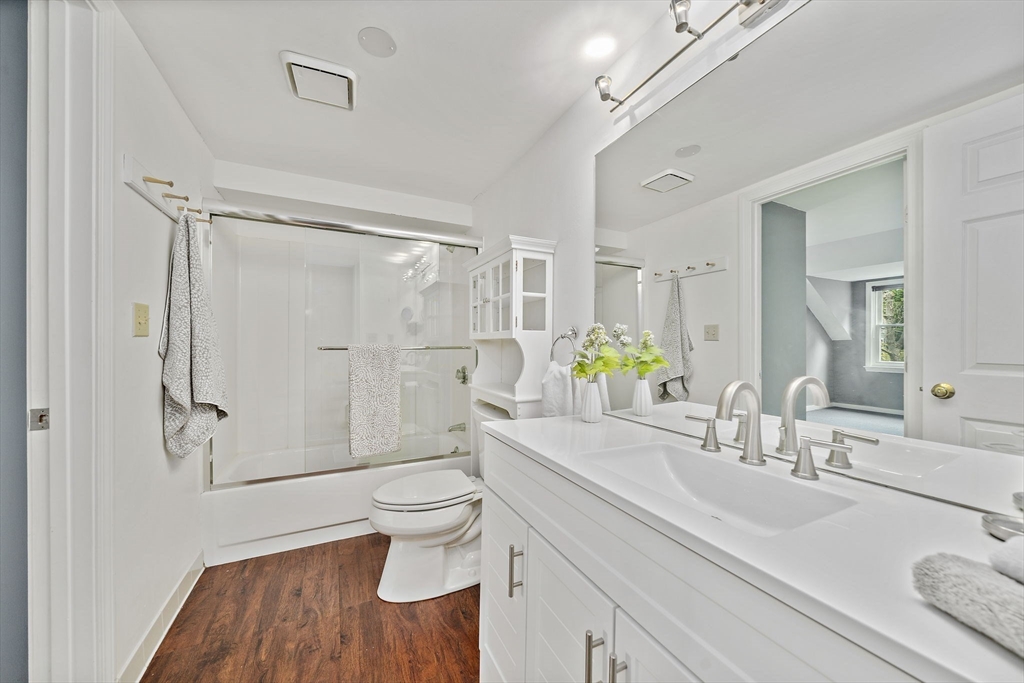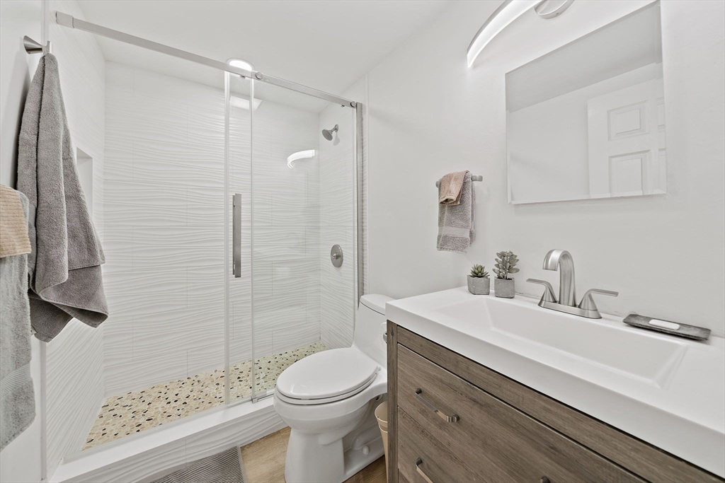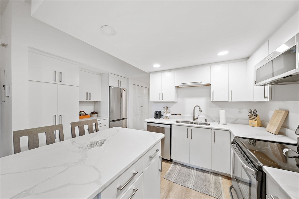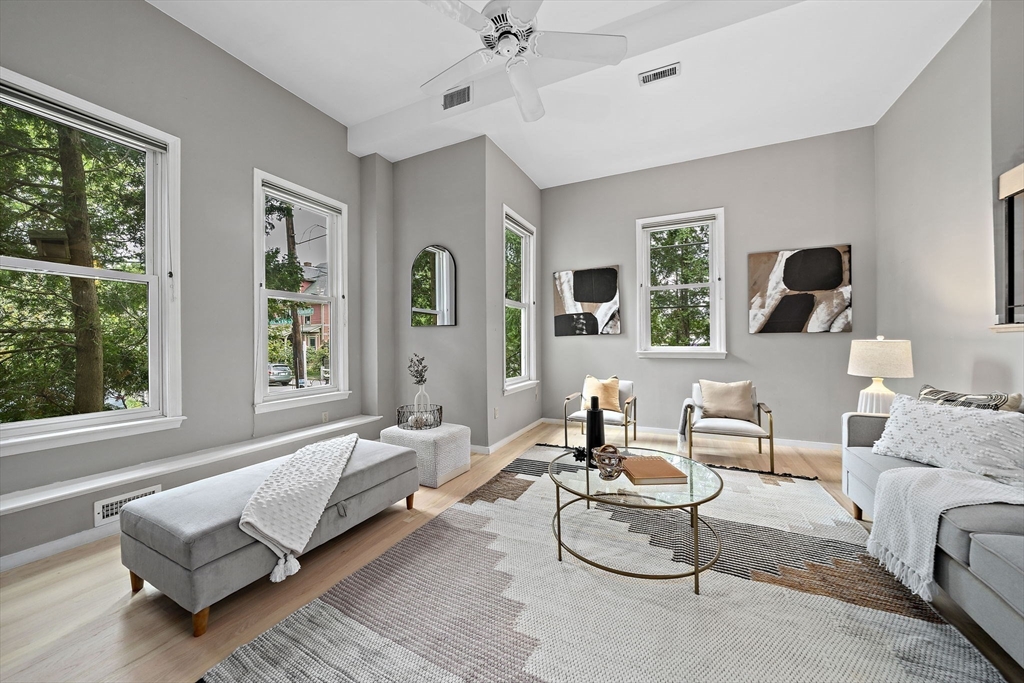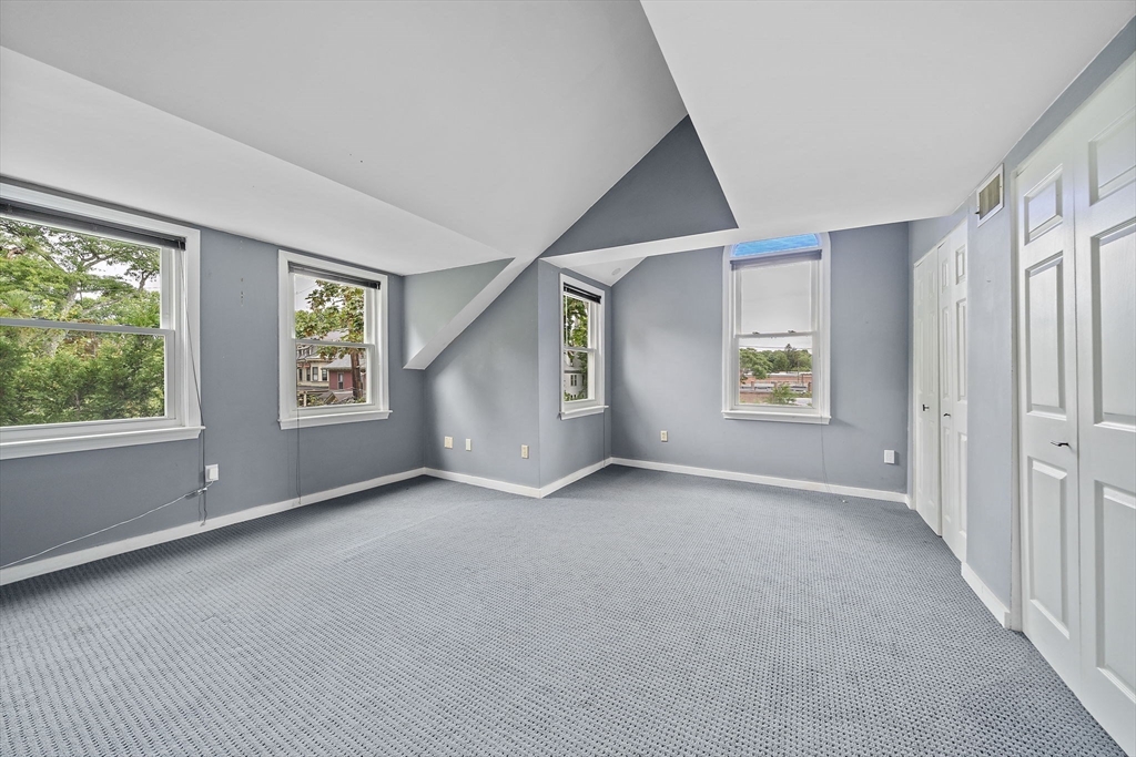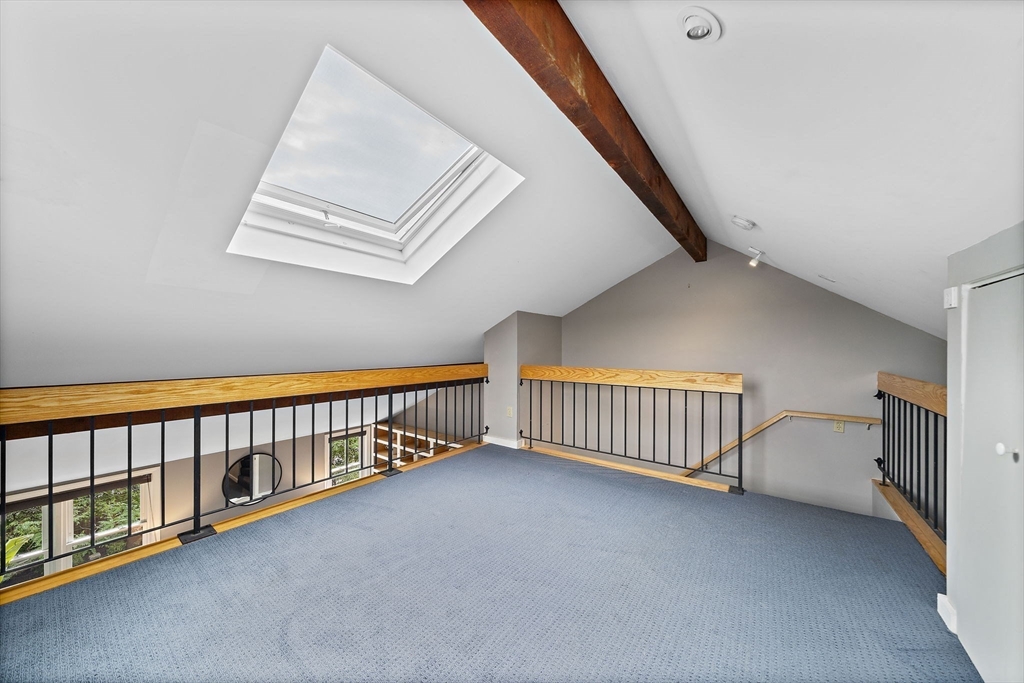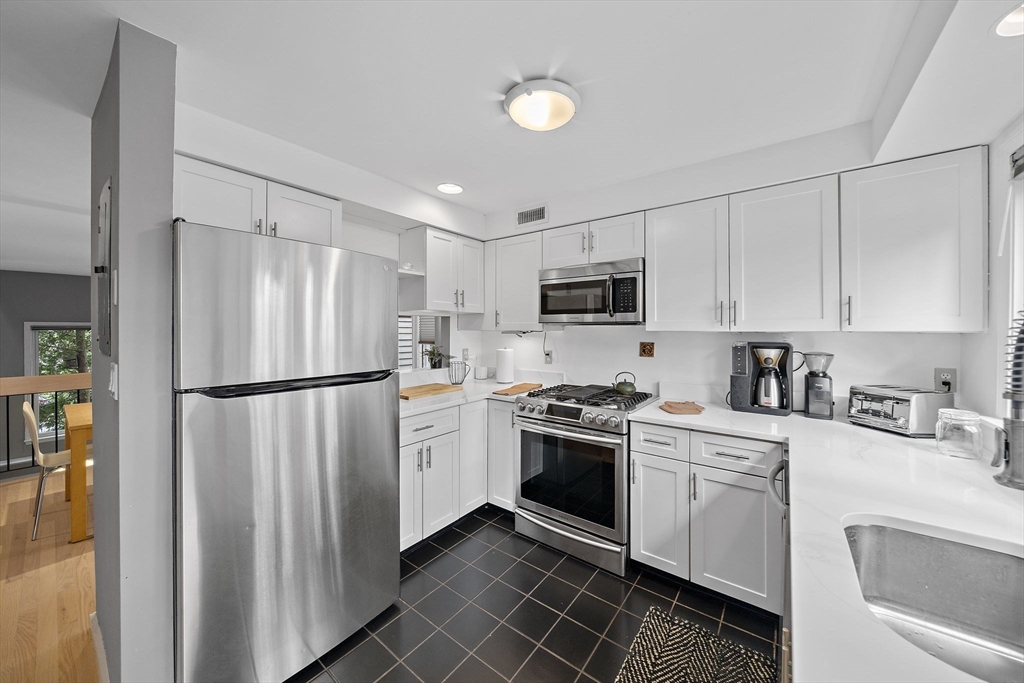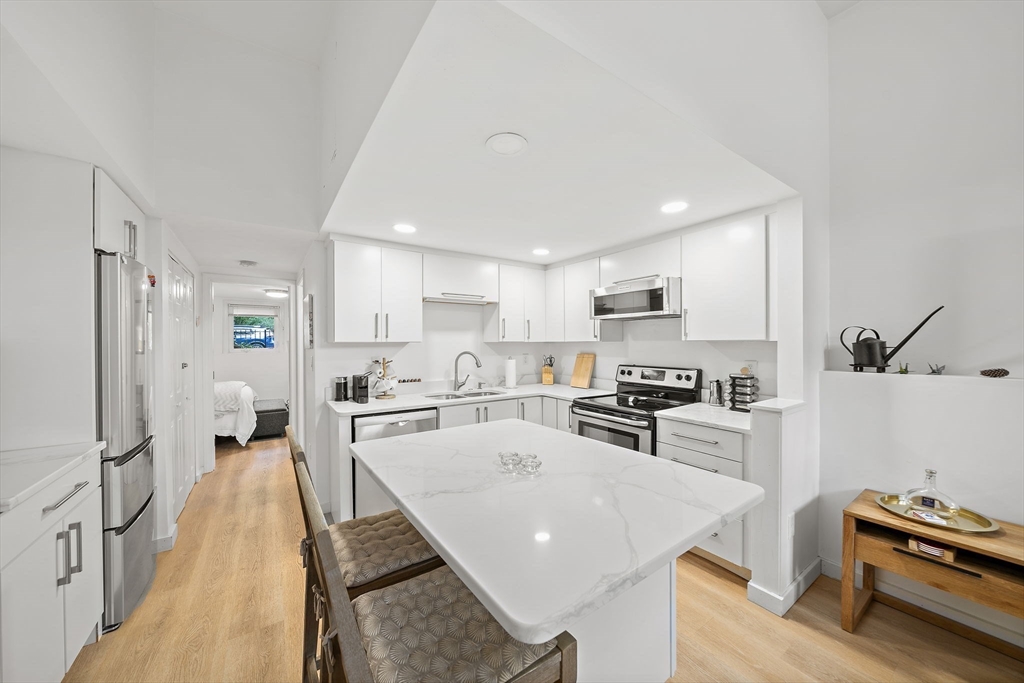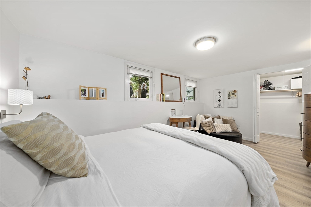 Very unique, rarely available Pondside offering - renovated modern multi-level townhouse-style home, with a 2nd income-producing unit for ADU: au pair, multi-generational living, or Airbnb. The upper townhouse on 3 floors offers a 2025 renovated kitchen, 3 beds and 1.5 baths, office nook, spacious rooms w/vaulted ceilings, dining room open to living room w/loft elevation, private balcony, skylights, open wood beams, built-ins, & private laundry. The beautifully renovated lower unit w/fully-equipped island kitchen open to the living room offers a large bedroom and walk-in closet w/laundry, and designer bath. This unit has been used as a high income-producing Air BnB grossing $5K/mo, but can be rented out long-term as well. Two car parking (one in garage) and private yard on corner lot (this is an end unit). Adjacent to Brewer-Burroughs playground and tot lot, a (free) Boston Municipal parking lot, EV charging station, shopping on Centre St, Green Street T, Arboretum, and Jamaica Pond.