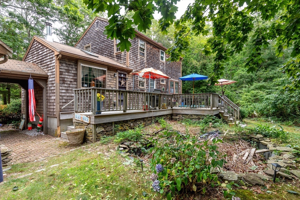 Charming cape located in the Cedar Bushes community of Manomet~ Last house on the street before the private beach access ~ How lucky to be able to Enjoy the amazing ocean breezes from your large, relaxing front porch. The Main floor features the primary bedroom, bright /updated kitchen, full bath and cozy living room with pellet stove for keeping warm on winter nights. Two large bedrooms upstairs both with double closets and a shared full bath. Two car Garage with ample storage PLUS loft area above that could easily be renovated into an accessory unit. Very private yard with several seating areas for peaceful reflection ~ and did i mention the association beach entrance just across the road? Ocean breezes and beautiful sunsets, an incredible way to live!