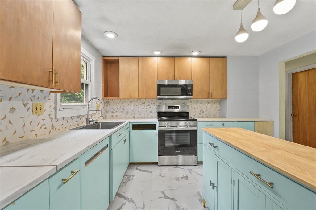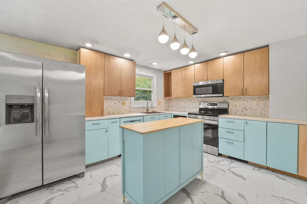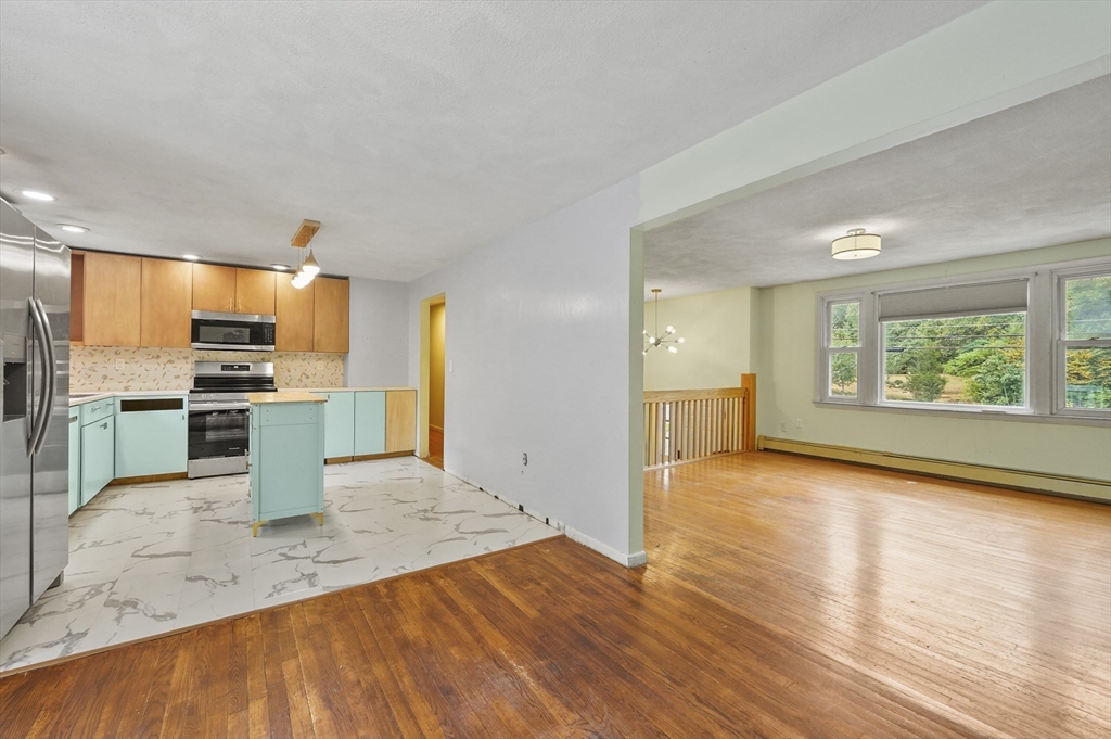 A commuters dream, conveniently located just off Route 2 in the highly ranked Ashburnham Westminster Regional School District, this bright and versatile split level home is waiting for its next family. Three bedrooms, a full bath, kitchen, dining and living room on the main living level is just the beginning. Downstairs you'll find 4 additional rooms and a second full bath with laundry hookups. New LVP flooring throughout. What about breakfast at Tiffany's? The stylishly designed Tiffany blue kitchen offers brand new stainless steel appliances, and a center island, open to the dining room with sliders out to the upper deck. The level backyard offers privacy and so many possibilities for outdoor enjoyment. The previous pool location is perfectly prepped for a new patio installation. A few finishing touches is all it needs!