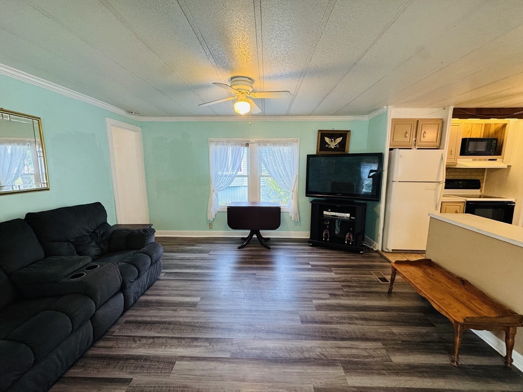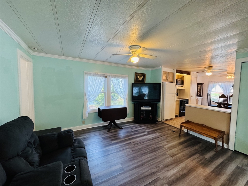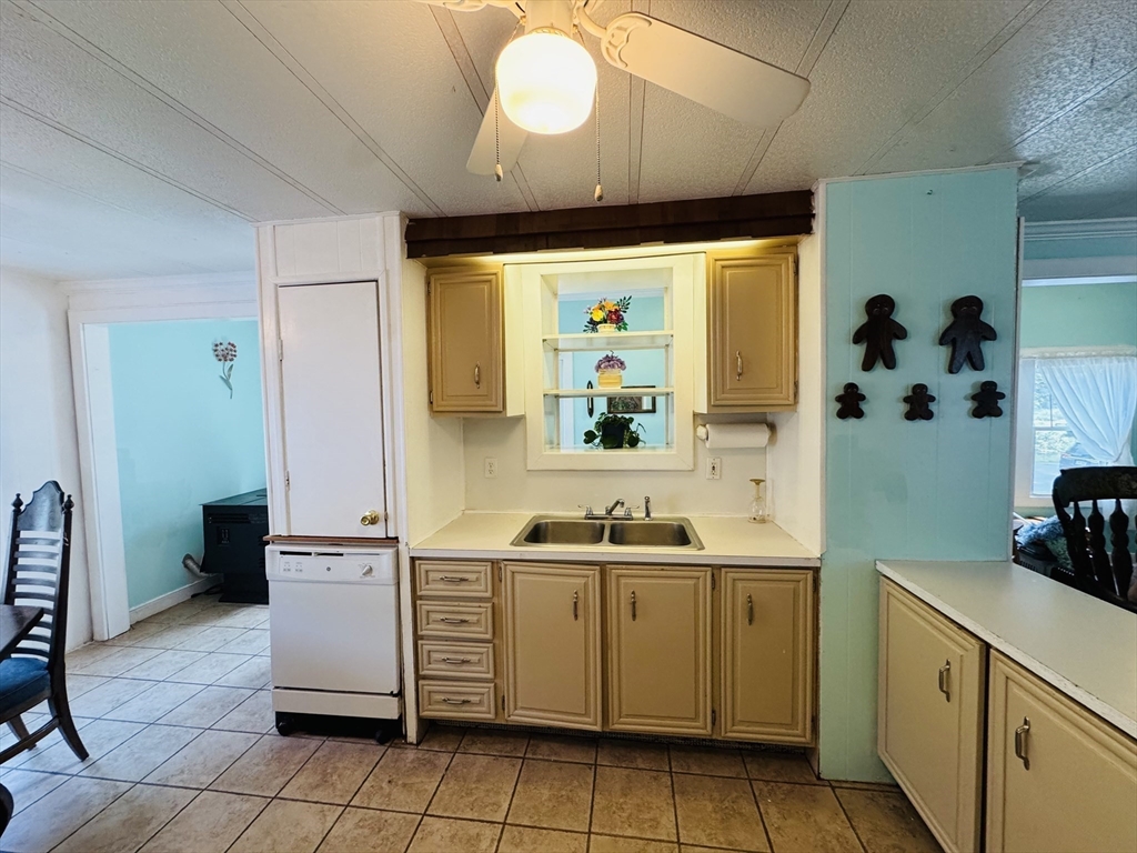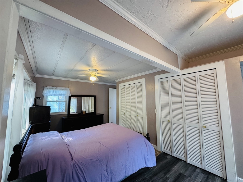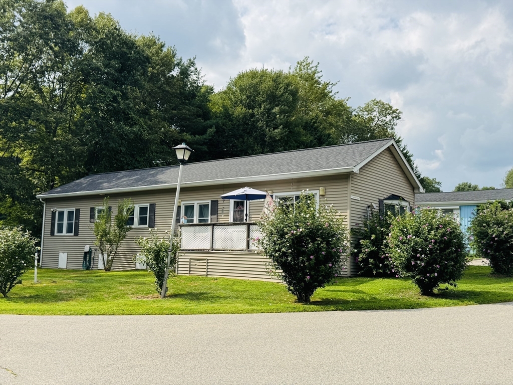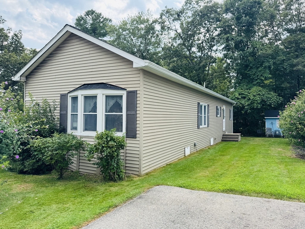 RARE OPPORTUNITY! The best spot in Gulbankian Mobile Home Community! This sun-filled 2BR, 1BA home on the premier corner lot features a NEW ROOF, 2024 hot water heater, central air, an energy saver system, and a beautifully landscaped yard. The property has a paved driveway for smooth, low-maintenance entry. The spacious kitchen flows into the dining room, where bay windows showcase blooming Rose of Sharon, perfect for morning coffee. The open layout continues into a large living room, plus a cozy mudroom with a pellet stove for New England winters. The enormous primary bedroom offers a second bay window, ceiling fan, and two oversized closets, while the bright second bedroom provides flexible guest or office space. A separate laundry room includes a newer washer and dryer. Storage is exceptional with two outdoor sheds with electricity and a FULL-LENGTH attic for all your storage needs. This well-loved home is ready for new owners to add their personal touches. Motivated sellers!