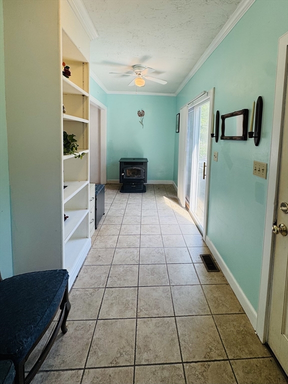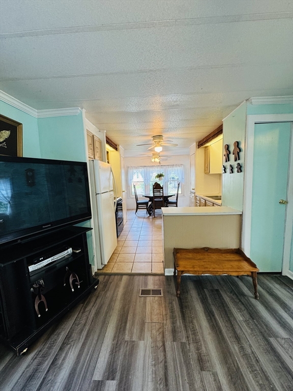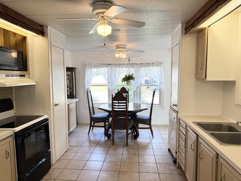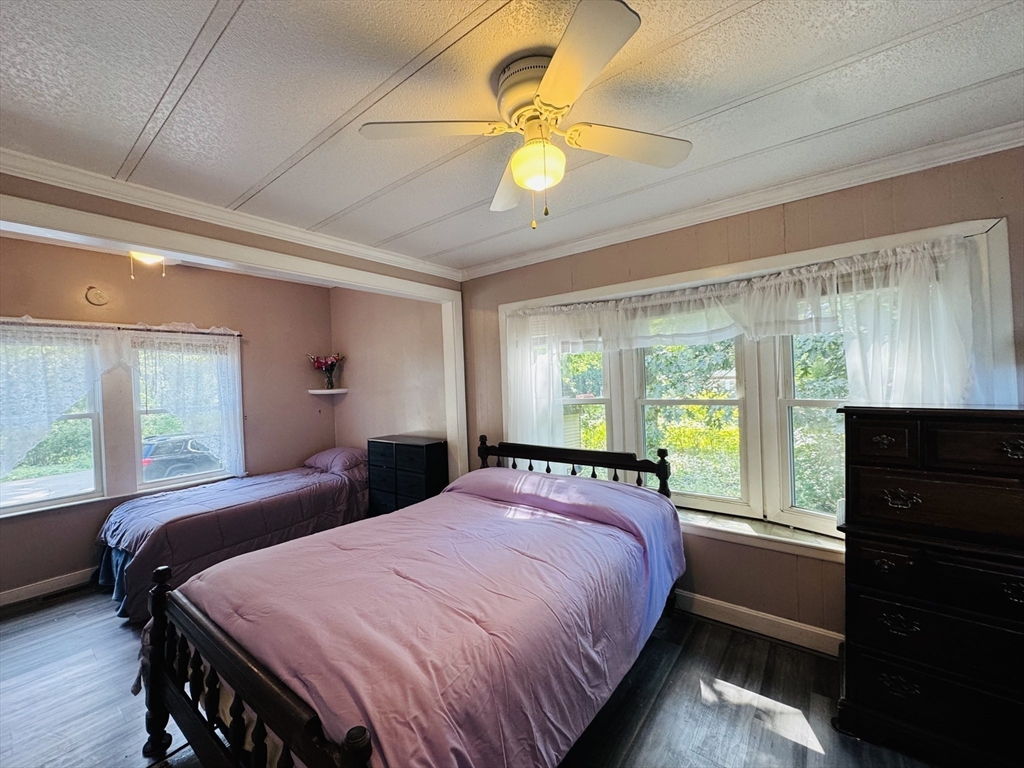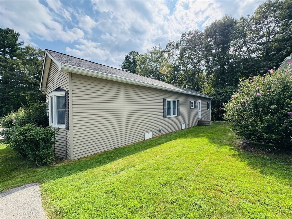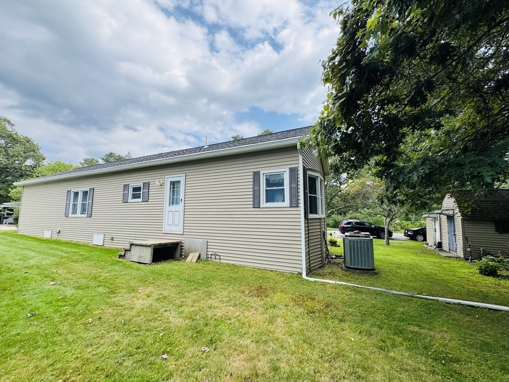 RARE OPPORTUNITY! The best spot in Gulbankian Mobile Home Community! This sun-filled 2BR, 1BA home on the premier corner lot features a NEW ROOF, 2024 hot water heater, central air, an energy saver system, and a beautifully landscaped yard. The property has a paved driveway for smooth, low-maintenance entry. The spacious kitchen flows into the dining room, where bay windows showcase blooming Rose of Sharon, perfect for morning coffee. The open layout continues into a large living room, plus a cozy mudroom with a pellet stove for New England winters. The enormous primary bedroom offers a second bay window, ceiling fan, and two oversized closets, while the bright second bedroom provides flexible guest or office space. A separate laundry room includes a newer washer and dryer. Storage is exceptional with two outdoor sheds with electricity and a FULL-LENGTH attic for all your storage needs. This well-loved home is ready for new owners to add their personal touches. Motivated sellers!