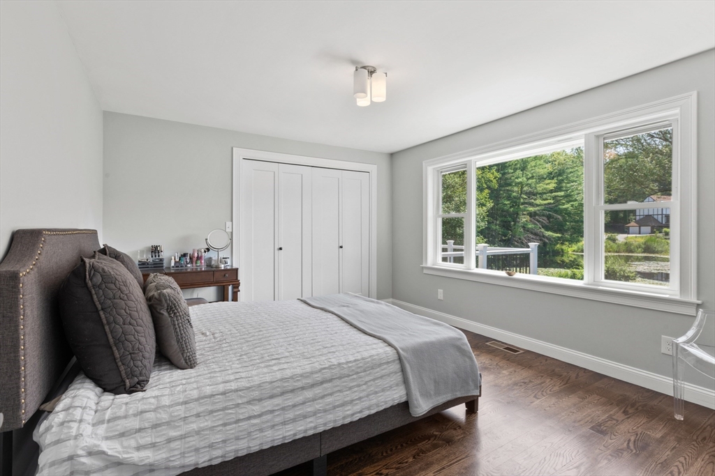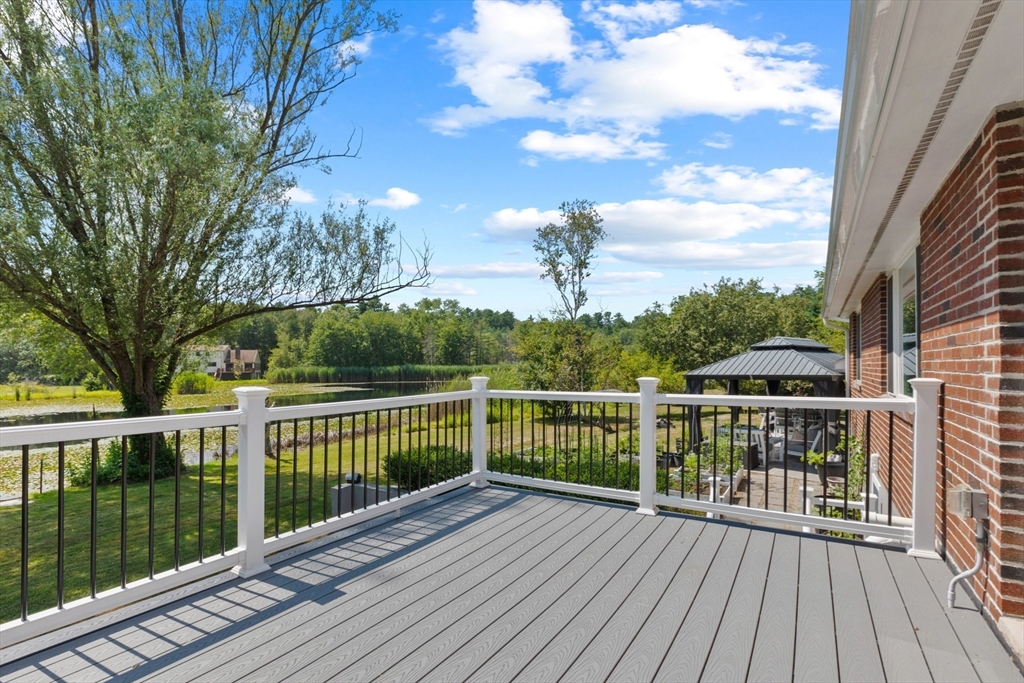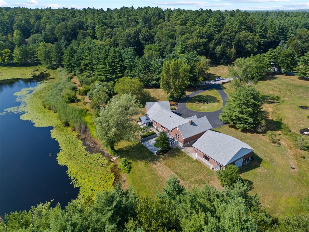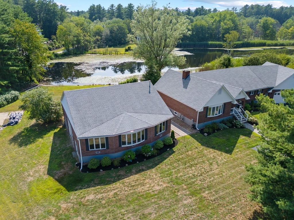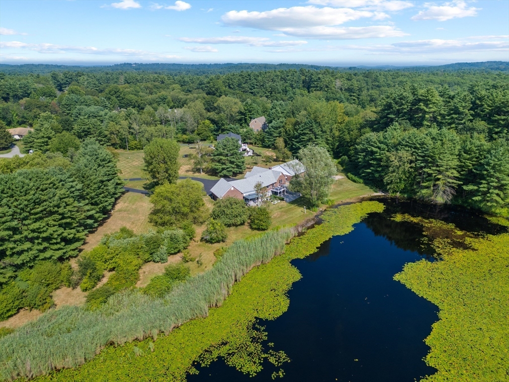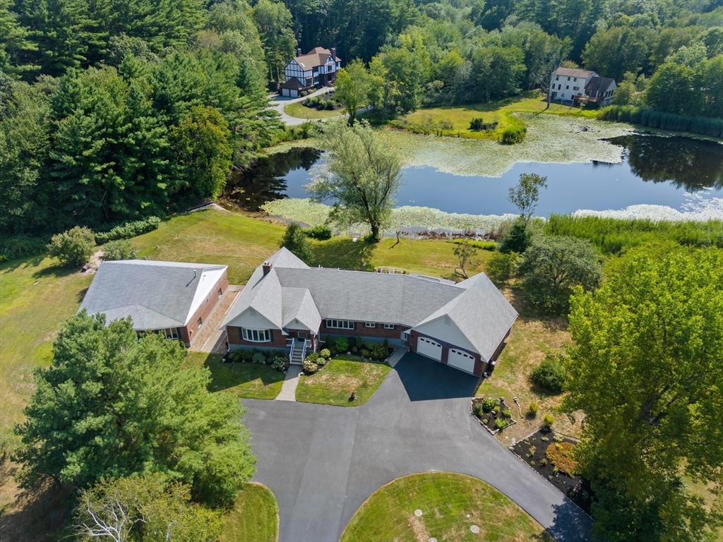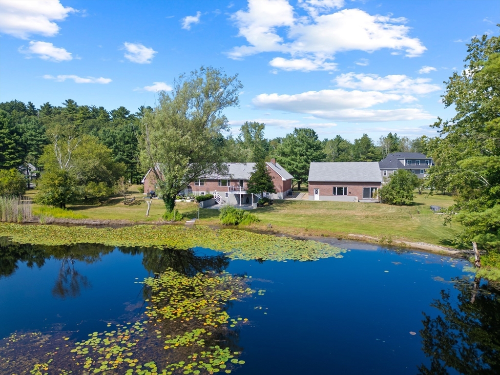 Discover your dream home on Holmes Pond, an idyllic retreat framed by a stately brick entryway. Sun-filled and open, the home is perfect for entertaining, with a chef’s kitchen featuring Bosch appliances, 5-burner range, wall oven, wine fridge, walk-in pantry, and spacious dining area. The oversized living room with fireplace invites memorable family gatherings. The primary bedroom offers breathtaking pond views, custom closets, and en suite; 2 additional bedrooms share the same views and a full bath. The lower level is flexible for media, gym, office, or play. Step outside to deck, patio, and direct pond access for fishing, kayaking, or SUP. A 600+ sq. ft. annex building awaits your vision- A guest house, studio, or hobby space. Close to 95 & Boston, this home is a lifestyle all its own.
