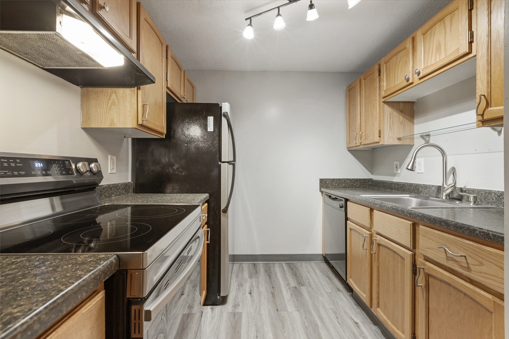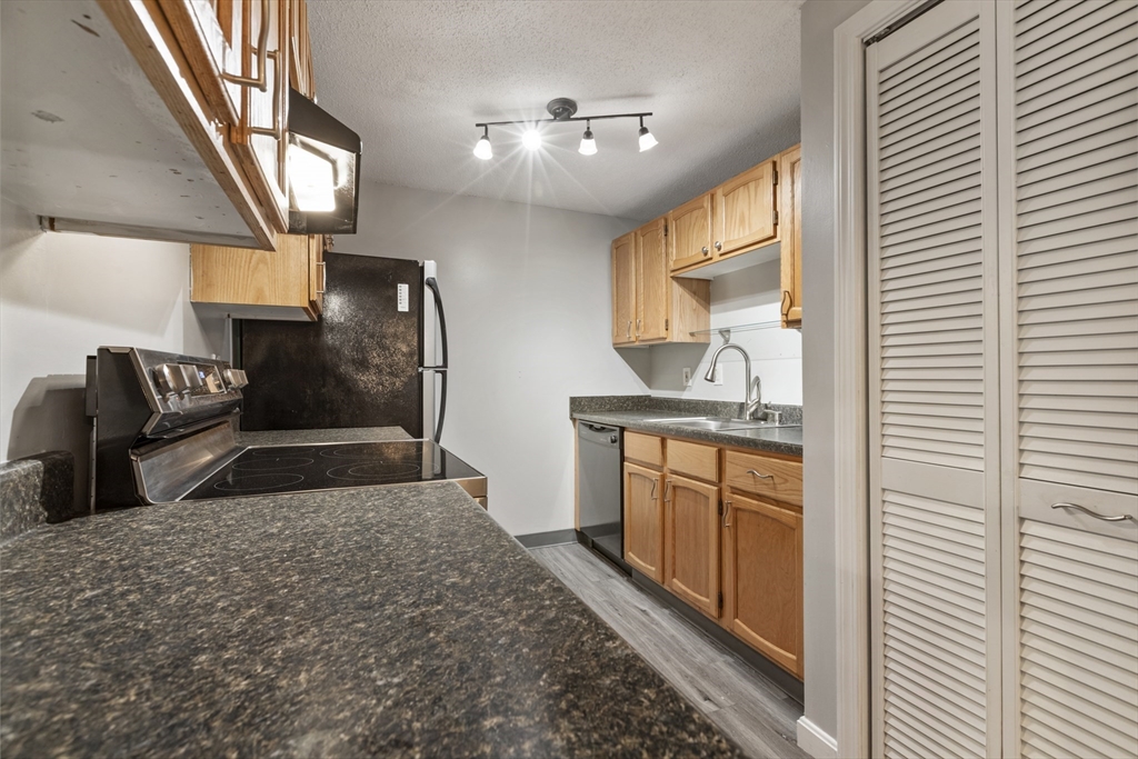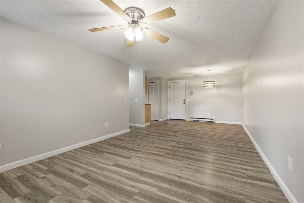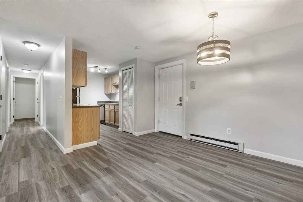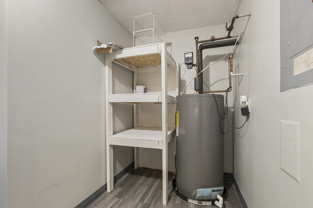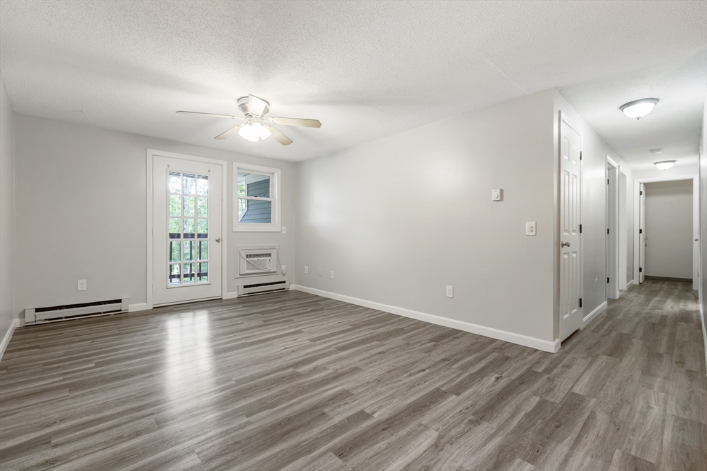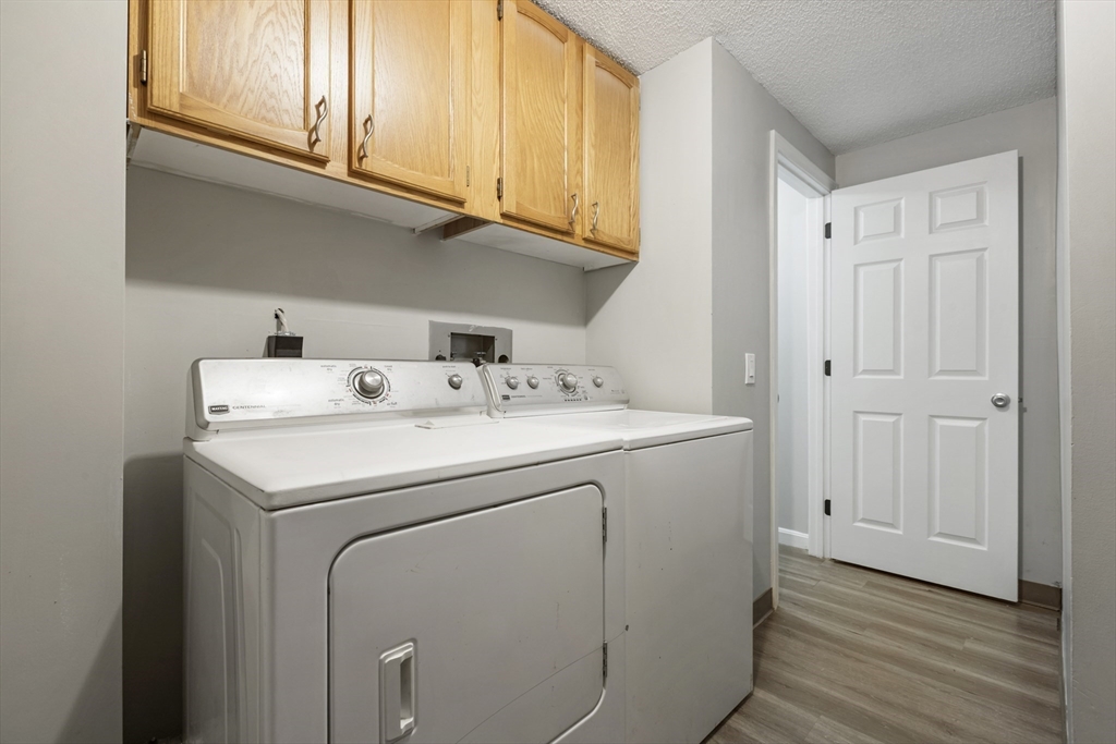 Heritage Park Estates; corner unit, rear facing, penthouse unit is move in ready in this sough after community. Freshly painted & newer flooring throughout. This two bedroom unit has a bright, open floor plan. Galley style kitchen includes updated appliances & pantry closet. Dining room/living room combo has wall ac unit. Both bedrooms good sized & main bedroom has a walk-in closet & window ac. Convenient, separate laundry room in unit includes washer, dryer & updated hot water tank. Enjoy the wooded views from covered porch which also has a storage closet. Two designated parking spots & visitor parking spots in complex. Lovely common grounds with park like setting for walking & also close to shopping & major routes. Welcome Home!