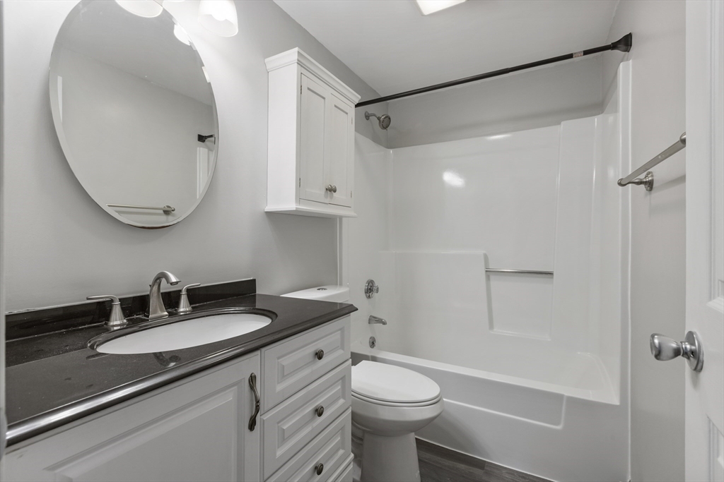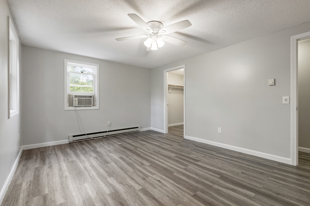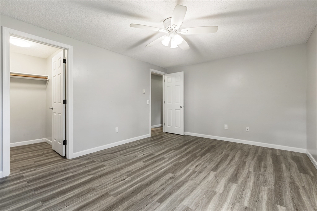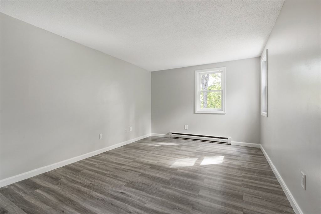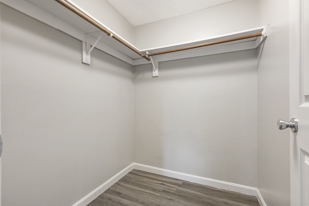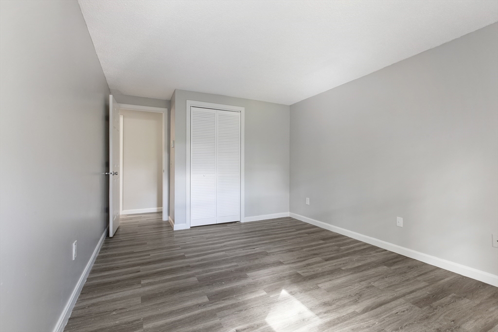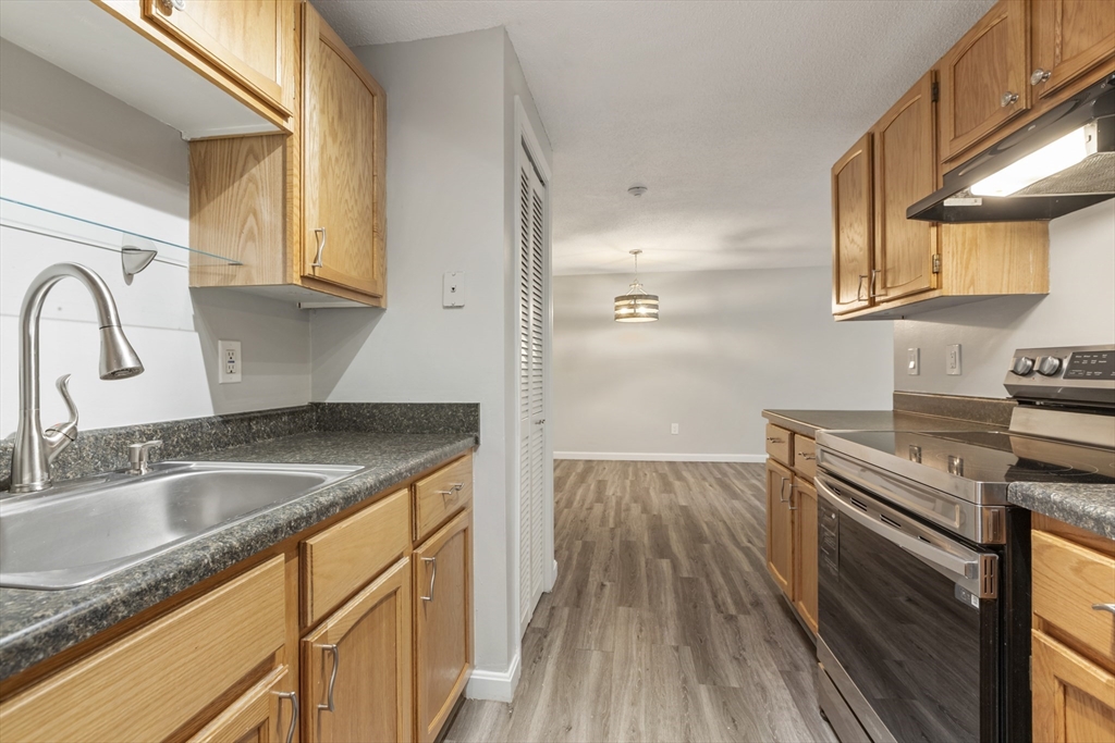 Heritage Park Estates; corner unit, rear facing, penthouse unit is move in ready in this sough after community. Freshly painted & newer flooring throughout. This two bedroom unit has a bright, open floor plan. Galley style kitchen includes updated appliances & pantry closet. Dining room/living room combo has wall ac unit. Both bedrooms good sized & main bedroom has a walk-in closet & window ac. Convenient, separate laundry room in unit includes washer, dryer & updated hot water tank. Enjoy the wooded views from covered porch which also has a storage closet. Two designated parking spots & visitor parking spots in complex. Lovely common grounds with park like setting for walking & also close to shopping & major routes. Welcome Home!
