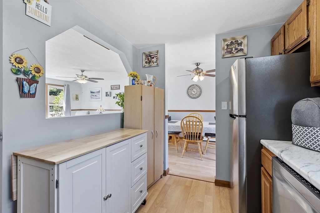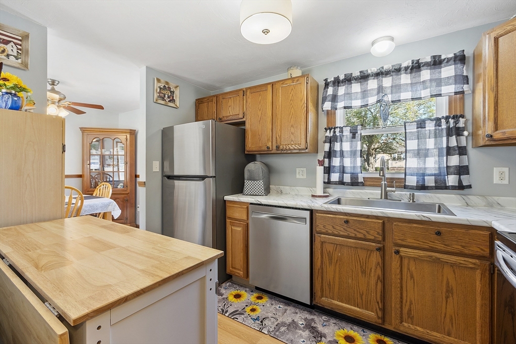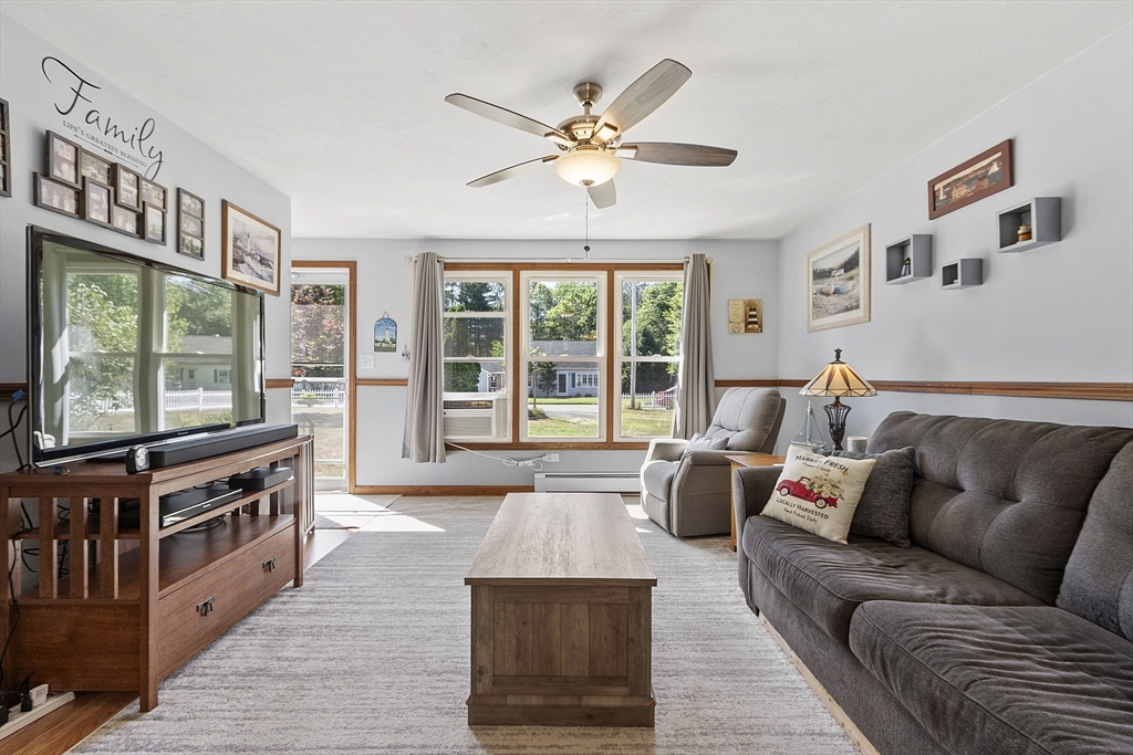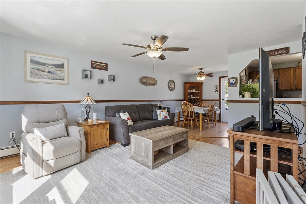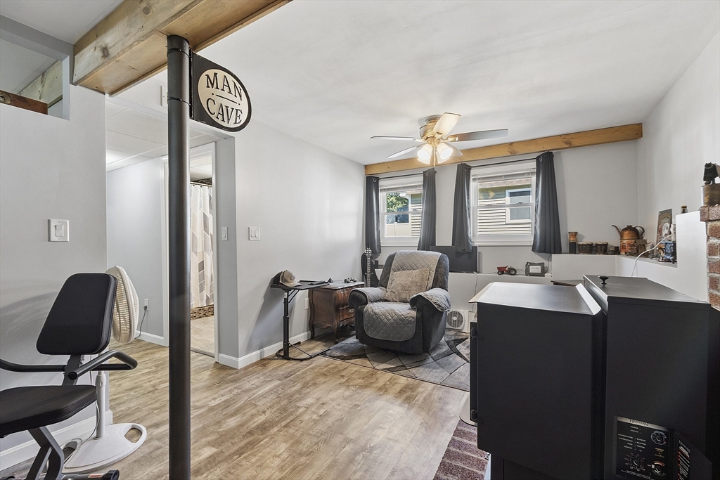 Discover comfort and convenience at 16 Walnut St in Templeton! This beautiful 3-bedroom, 2-bath home features warm wood grain laminate and vinyl flooring throughout and a stylish kitchen with stainless steel appliances, modern countertops, and a separate dining area. The finished basement provides versatility with two bonus rooms, a second full bath, and a walk-out access to a covered patio—ideal for entertaining or relaxing. Enjoy a private deck overlooking the fenced in backyard. The spacious detached garage is perfect for a work area or for storage/hobbies. Buderus boiler, Passing Title 5. Located close to shopping, dining, and everyday amenities, this home blends charm, space, and practicality.