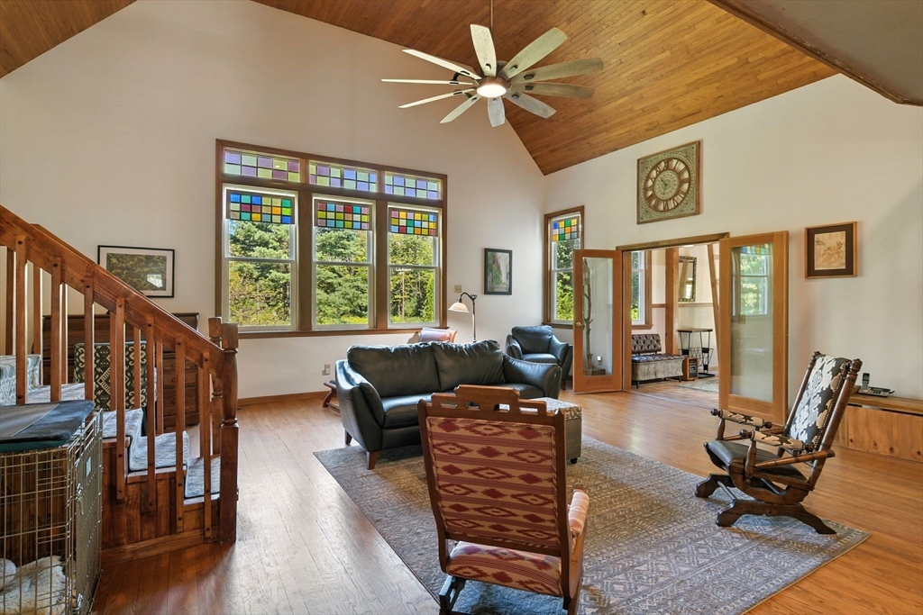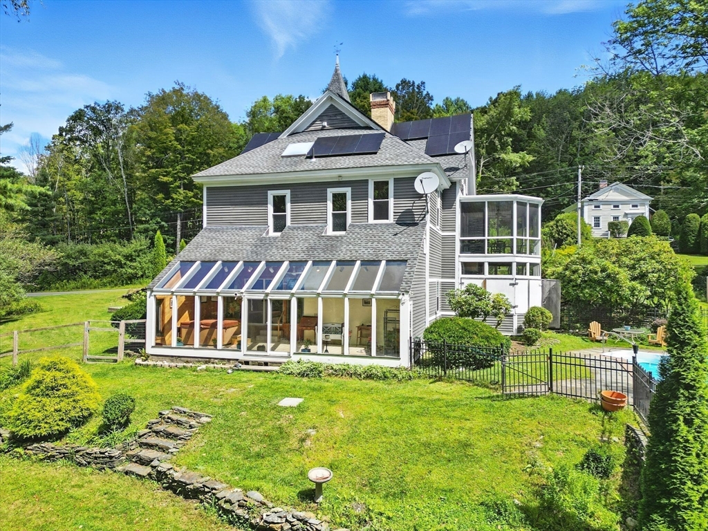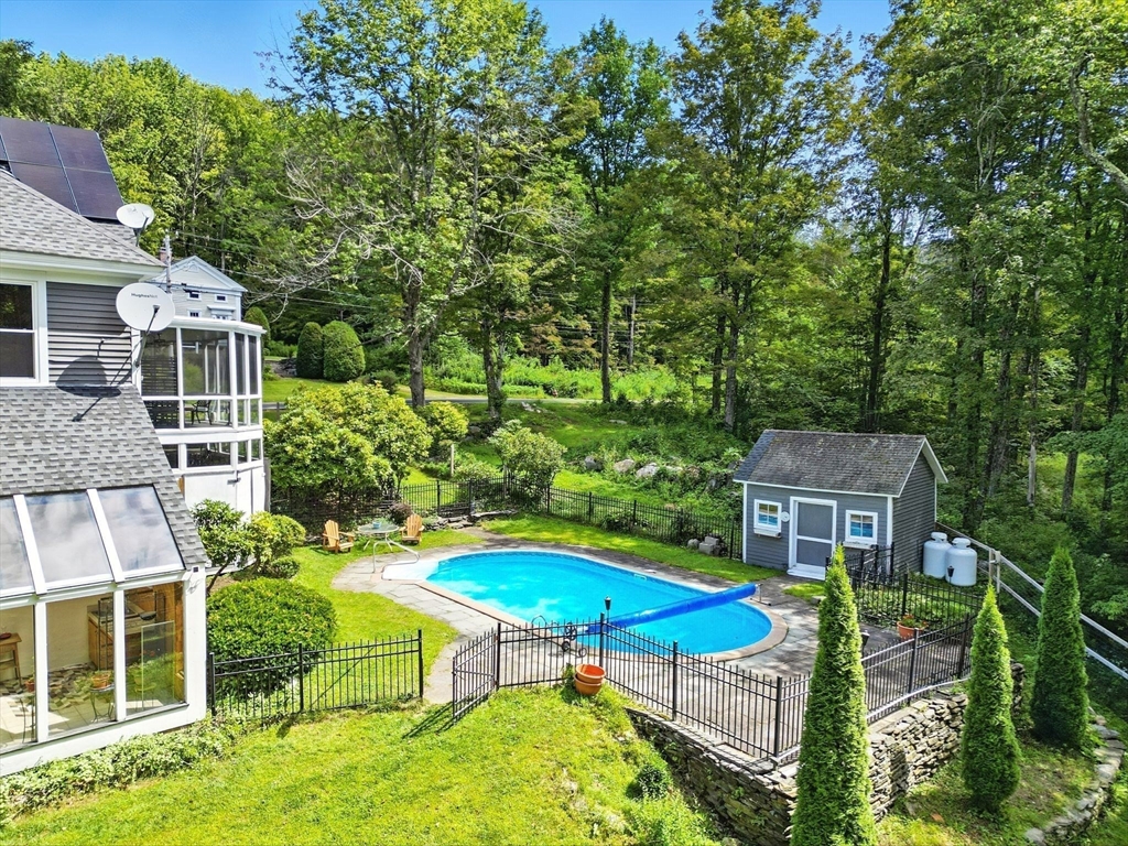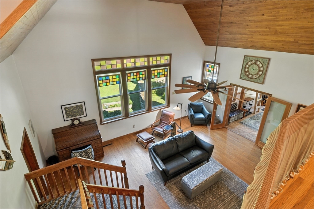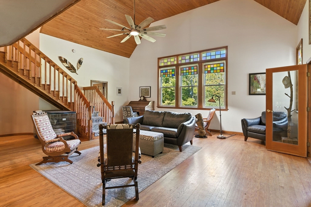 Step inside this stunning transformation of a historic church into a one-of-a-kind 3-bed, 3-bath home blending character and comfort. The original steeple serves as a striking centerpiece, cathedral ceilings, original stained-glass windows, and local fieldstone fireplaces on all three levels add timeless charm. Enjoy an open floor plan, screened-in porch, and a sun-filled solarium with hot tub that opens to a fenced yard. Each floor features a private bedroom and full bath, offering ideal flexibility. The lower level includes a separate entrance, kitchenette, and living space—perfect for an in-law or guest suite. Outside, unwind by the heated in-ground pool in your private backyard retreat. Truly a unique opportunity to own a piece of history with modern luxury. See feature sheet and improvement sheet attached.