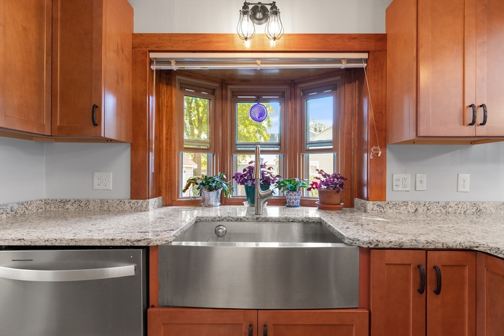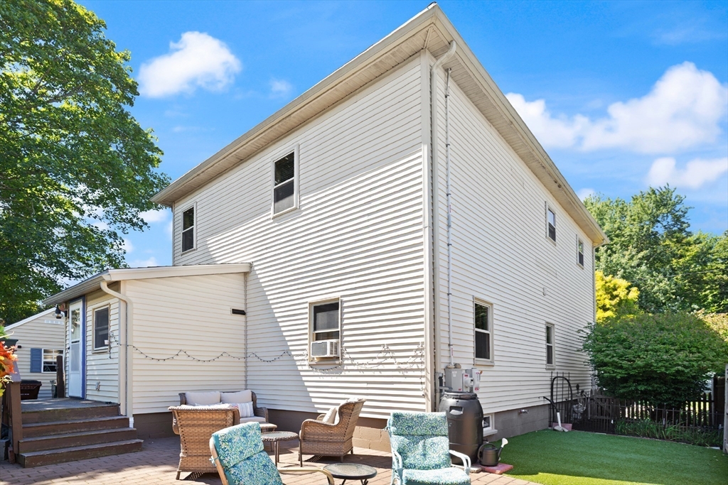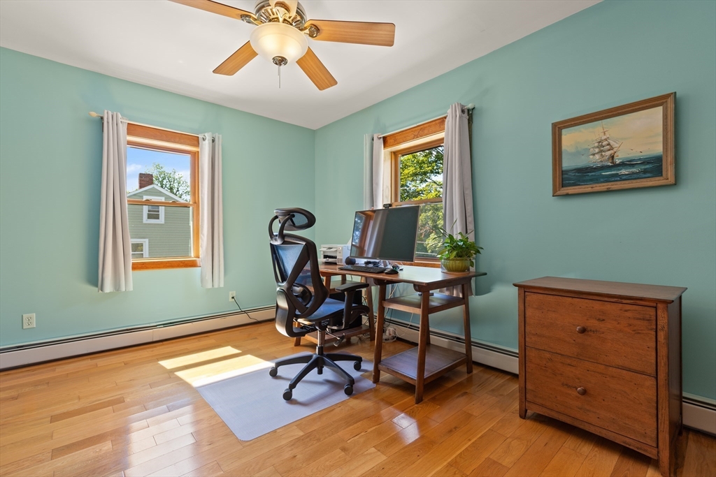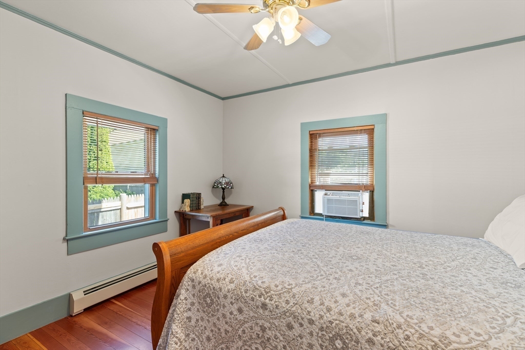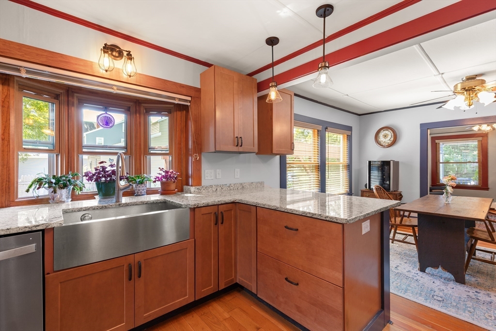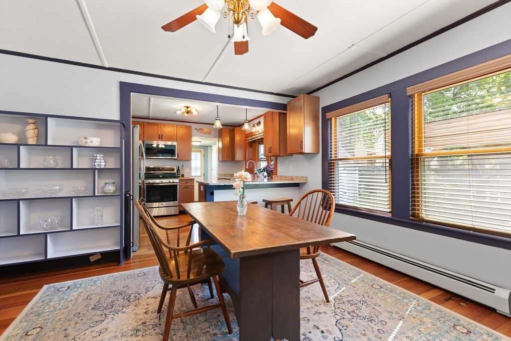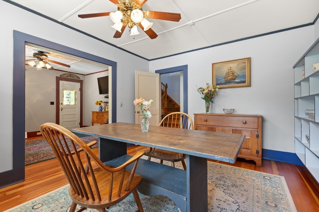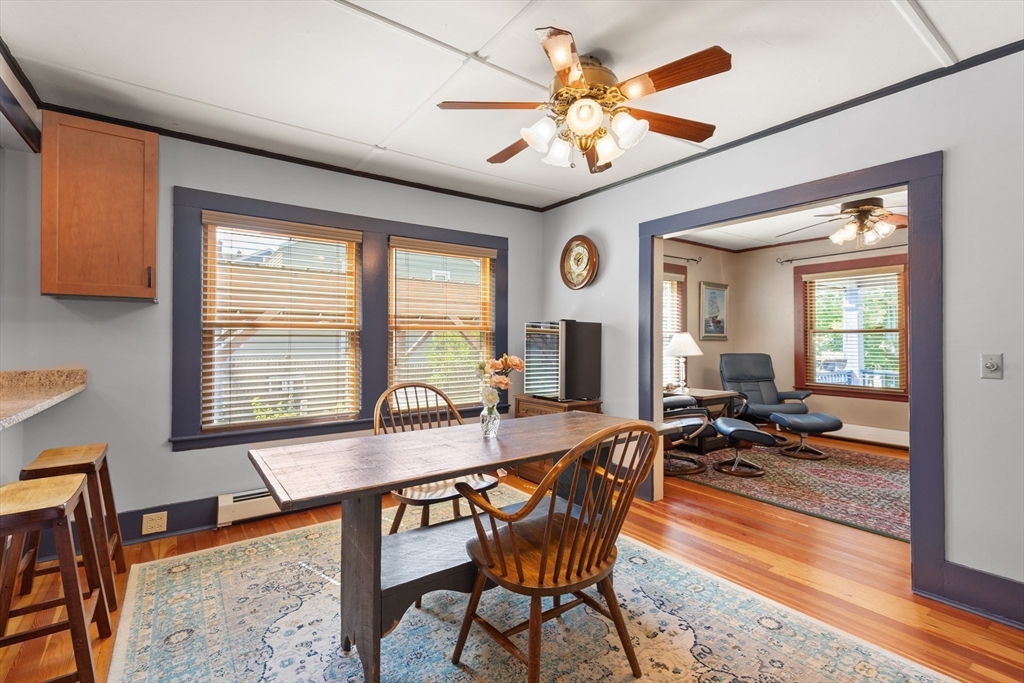 Welcome to this charming single-family home featuring hardwood floors throughout and a beautifully updated kitchen with granite and butcher block counters, breakfast bar, and stainless steel appliances. Off of the kitchen is a mudroom leading to the fenced backyard with a patio, perfect for entertaining. A spacious first-floor hallway offers room for a desk and includes a pantry for added storage. The main level also features a dining room with built-in shelves, a bedroom, and a bathroom with a new shower. A 2006 second-floor addition provides two spacious bedrooms, including one with a walk-in closet, plus a full bath with a skylight and stylish finishes. Additional highlights include pull-down attic storage, newer windows, solar panels for low-cost electricity, a shed, and a carport. This home combines character, comfort, and efficiency in one inviting package!