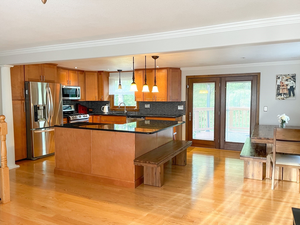 Welcome to this beautifully updated raised ranch that combines modern comfort w/ timeless style.Thoughtfully renovated — from the brand-new kitchen & bathrooms to the new roof, windows & doors. The main level features gleaming hardwood FLs, updated tile & laminate & a spacious open layout perfect for everyday living & entertaining. The kitchen is completely redone, offering stylish cabinetry, modern finishes & plenty of workspace. With 2 full baths — one on the main FL & one on the lower level - offering convenience & flexibility. Attached 1-car garage. Step outside onto a good-sized deck, perfect for relaxing or hosting BBQs, overlooking the private backyard. The nice front & back yards are ideal for play, or just enjoying the outdoors & a decent size shed. All of this is nestled in an amazing neighborhood — not part of a subdivision, but w/ that same community feel. Surrounded by long-term residents, you’ll love the sense of pride in this area. Close to shopping, HWY & State Park.