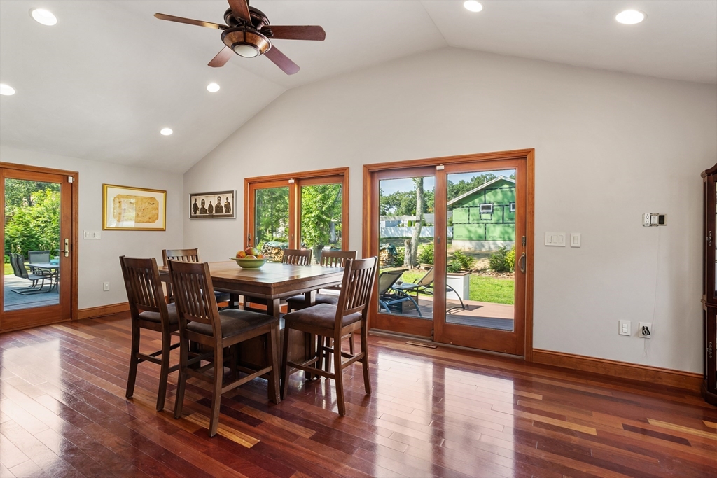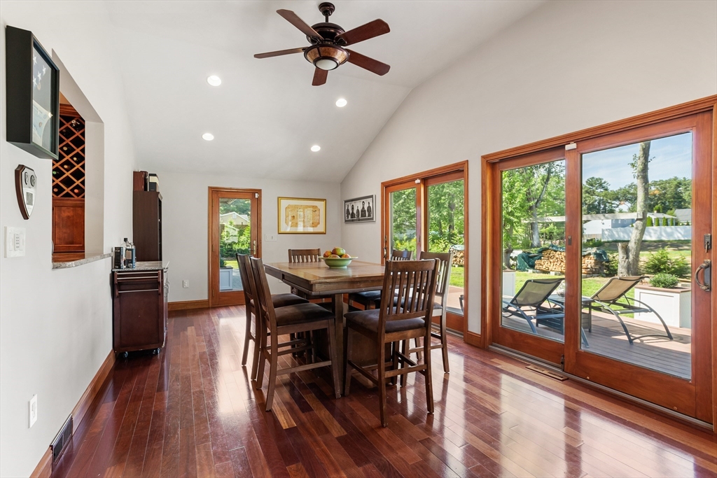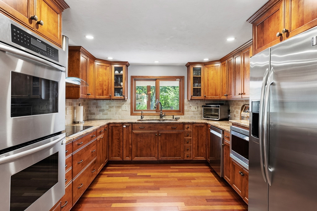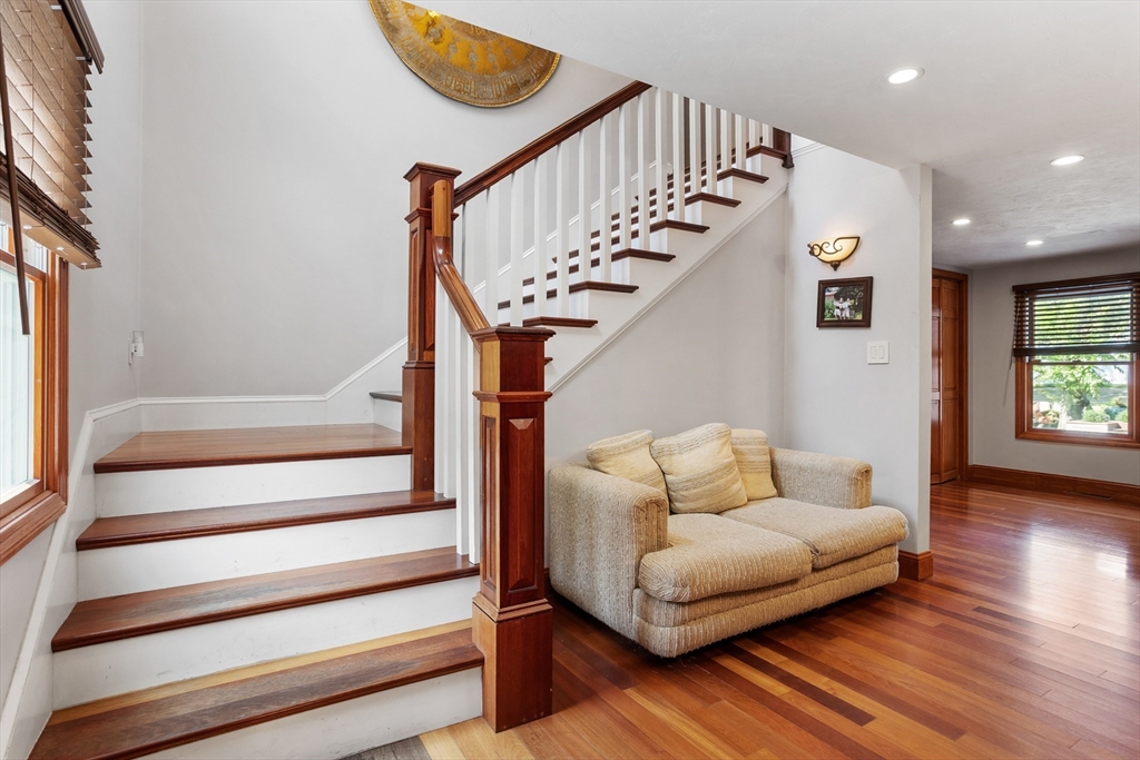 Welcome to 6 South St, a stylish colonial situated on a quiet street in beloved Acton. This home's open floor plan features gleaming wood floors and natural light that fills every corner. The well-appointed kitchen, complete w/ abundant cabinetry, flows seamlessly into a casual dining area and wet bar-perfect for entertaining. From here gaze into the sunken diningroom, awash in sunlight, where sliders open to a stunning deck and patio. As you explore further, you'll pass custom shelving ideal for displaying treasured collections, before ascending to the generous primary suite. Here you'll find 2 walk-in closets and pocket doors to a versatile office or sitting room as well as a luxorious 4-piece bath. French doors lead to your private balcony overlooking the serene backyard. 2 more BR's, laundry, and storage room with attic access finish the 2nd fl. Just across the way, you can access the Bruce Freeman Trail. Embrace your next chapter! Notice of video & voice recording on the premises.