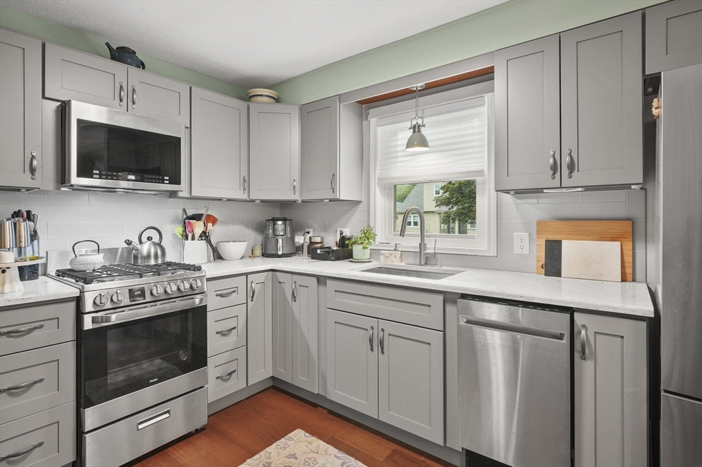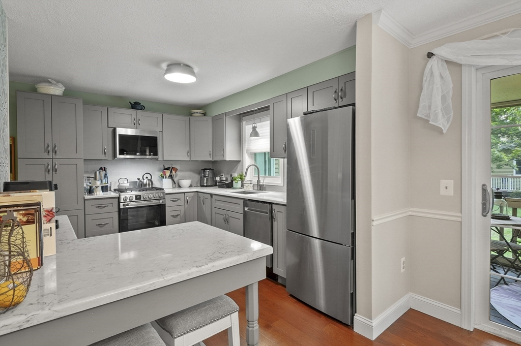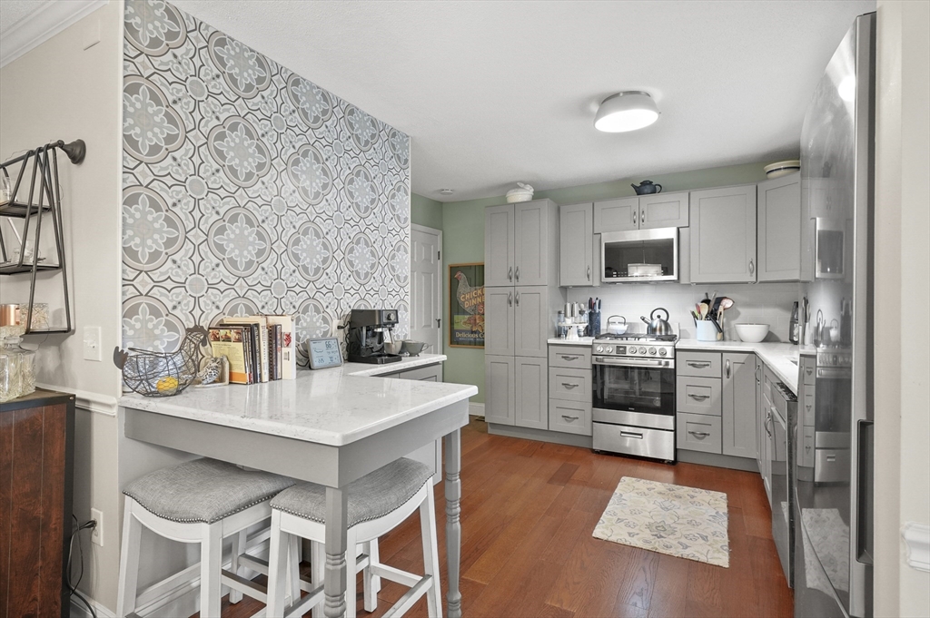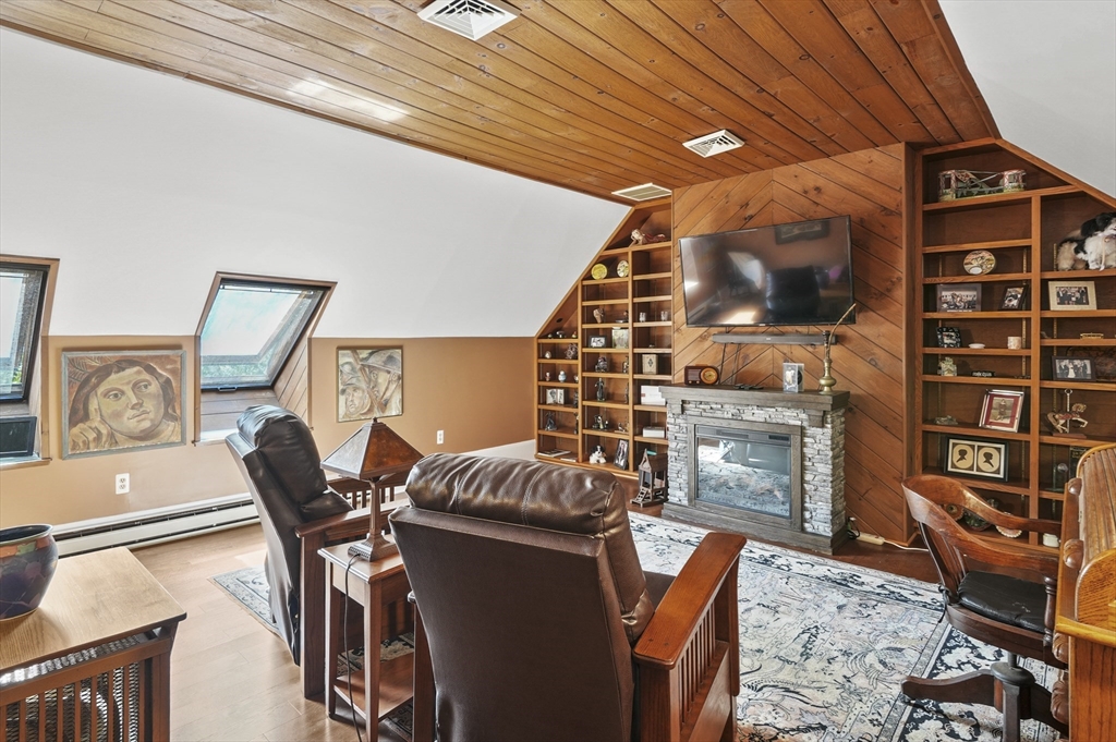 Welcome to this stunning multi-level condo, a true gem on the West Side! The main level features an open concept floor plan w hardwoods throughout & numerous recent upgrades, including a stunning kitchen w breakfast bar, SS appliances & quartz counters, a chef's delight. Enjoy your morning coffee on the sun porch off the dining rm. The spacious living rm features an electric fireplace that will remain. A 1/2 bath on this level adds to the home's functional design. Upstairs, you'll find 2 generous BRs. The primary suite is a serene retreat w its own en-suite BA. Another full BA is located off the hallway, rounding out this level. But the living space doesn't stop there! The expansive 3rd floor offers even more possibilities w a bonus family room complete w vaulted ceilings, skylights, & custom built-in shelving. Enjoy garage parking, a fantastic location near Coes Reservoir, shops, restaurants & more. This is one you won't want to miss.
