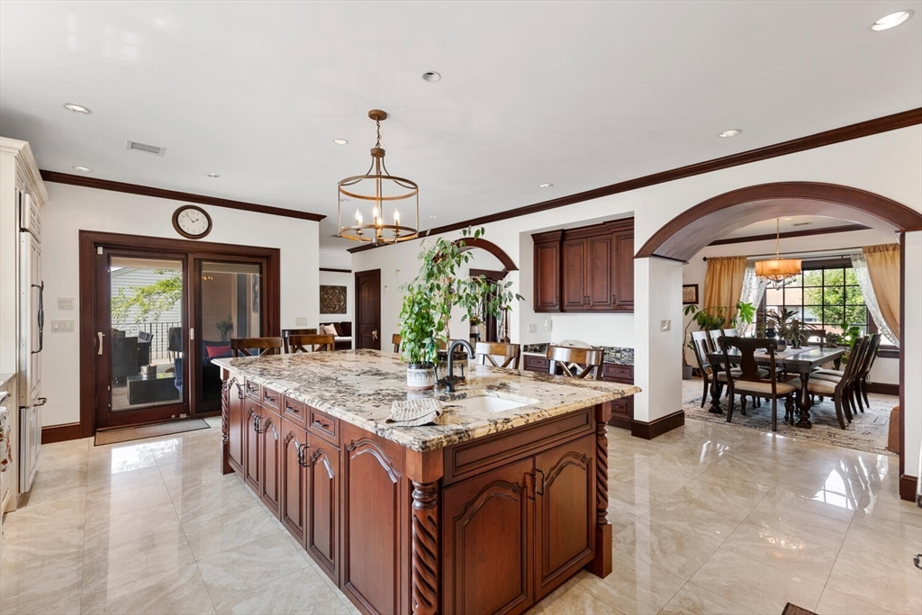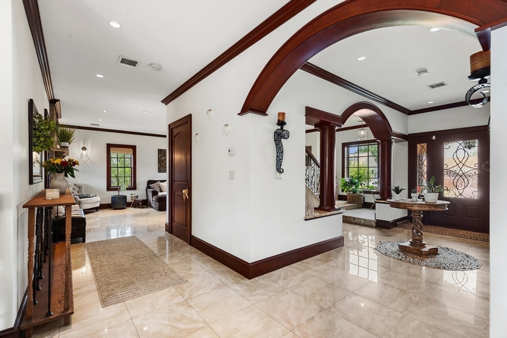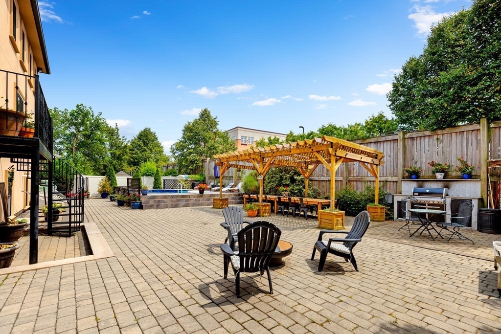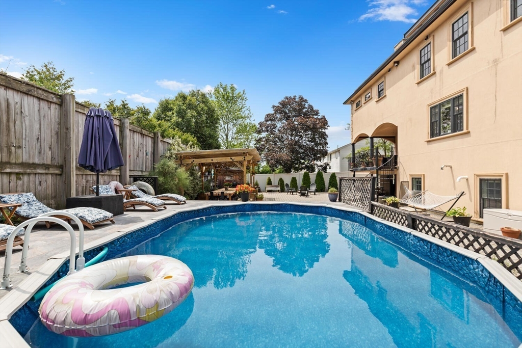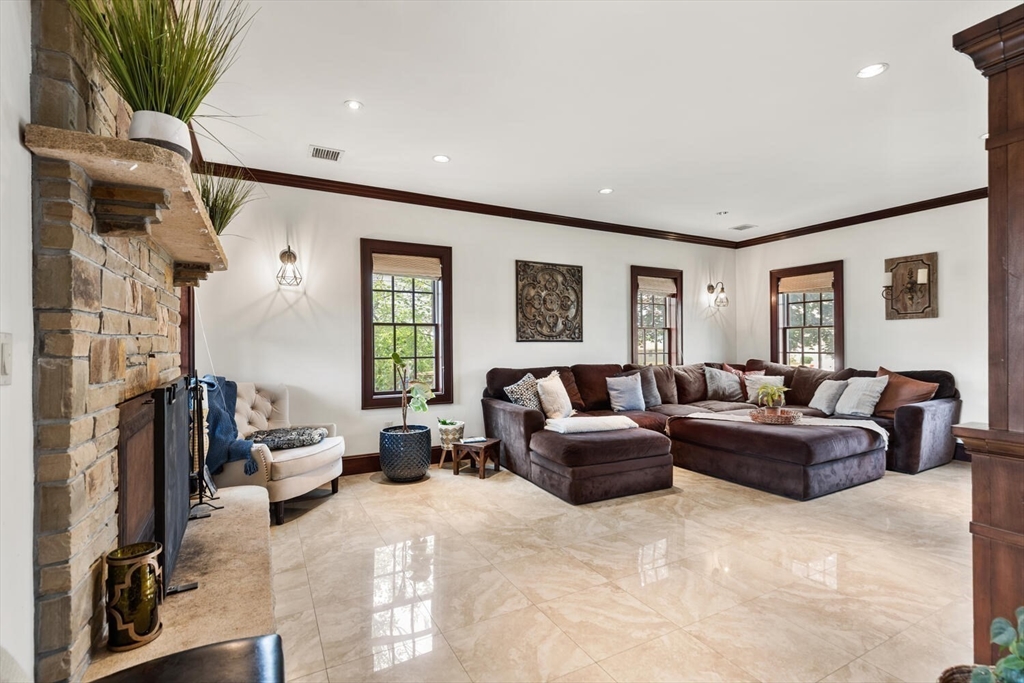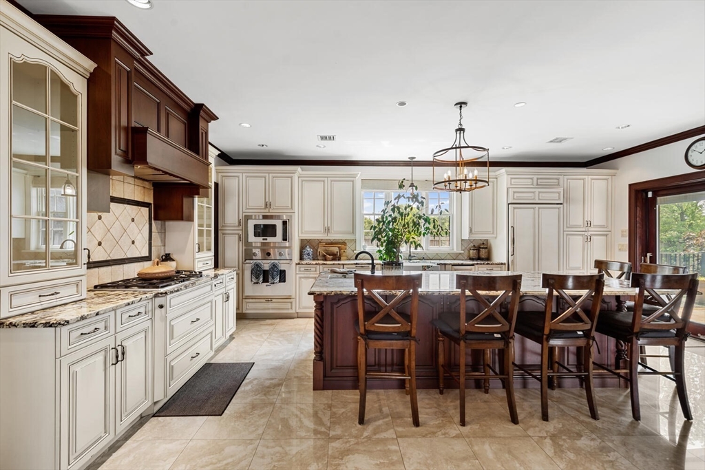 Gorgeous Suburban Retreat. Custom designed & masterfully built in 2012, this gracious & unique home showcases exceptional craftsmanship across 4 spacious levels. Every detail, inside & out, was meticulously curated & the results are stunning. Elegant foyer sets the tone, introducing fine features+: porcelain & tile floors, arched doorways, rich woodwork, built-ins, granite stairs & more. Elegant LR has cozy fireplace w/stone wall. DR w/picture window flows to exquisite chef’s kitchen that has oversized island, pantry, custom cabs & fridge, & offers space as functional as it is beautiful. Covered tile deck extends kitchen outside, perfect for seamless al fresco dining. Main BR suite has spa-like shower & custom closet; 3 more BRs, full bath & laundry complete 2nd level. Lovely 3rd level offers versatile space. Lower level impresses with guest BR, full bath, gym, & large FR w/access to your amazing backyard oasis, where covered deck, paver patio, pool, built-in grill & pizza oven await.