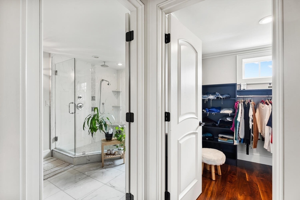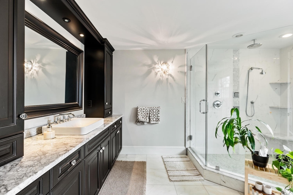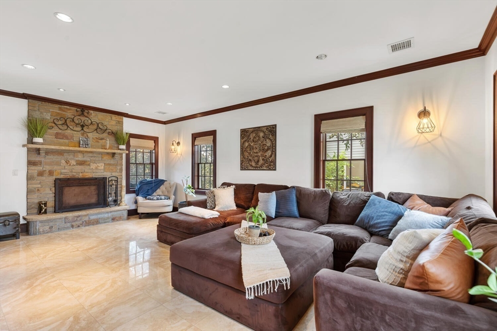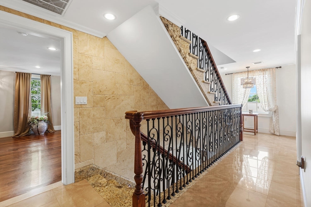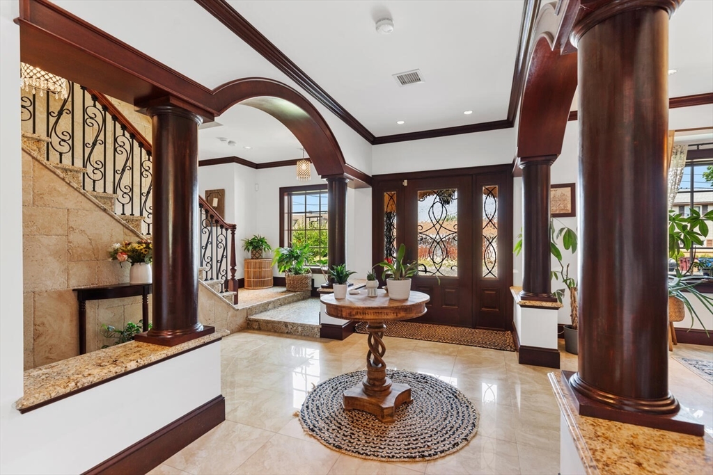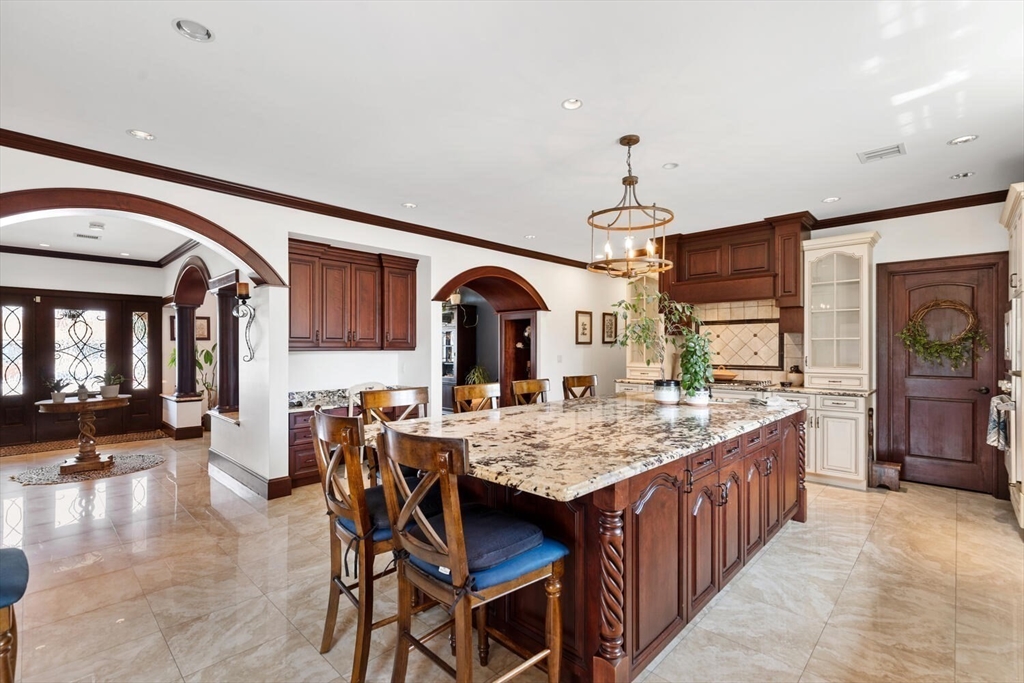 Gorgeous Suburban Retreat. Custom designed & masterfully built in 2012, this gracious & unique home showcases exceptional craftsmanship across 4 spacious levels. Every detail, inside & out, was meticulously curated & the results are stunning. Elegant foyer sets the tone, introducing fine features+: porcelain & tile floors, arched doorways, rich woodwork, built-ins, granite stairs & more. Elegant LR has cozy fireplace w/stone wall. DR w/picture window flows to exquisite chef’s kitchen that has oversized island, pantry, custom cabs & fridge, & offers space as functional as it is beautiful. Covered tile deck extends kitchen outside, perfect for seamless al fresco dining. Main BR suite has spa-like shower & custom closet; 3 more BRs, full bath & laundry complete 2nd level. Lovely 3rd level offers versatile space. Lower level impresses with guest BR, full bath, gym, & large FR w/access to your amazing backyard oasis, where covered deck, paver patio, pool, built-in grill & pizza oven await.