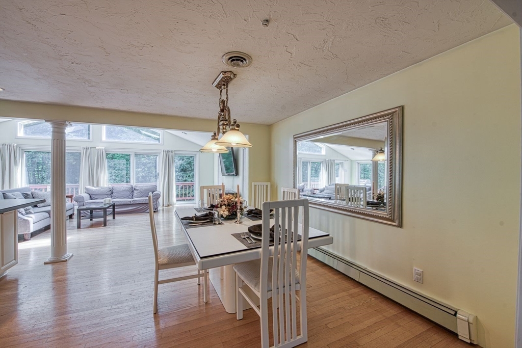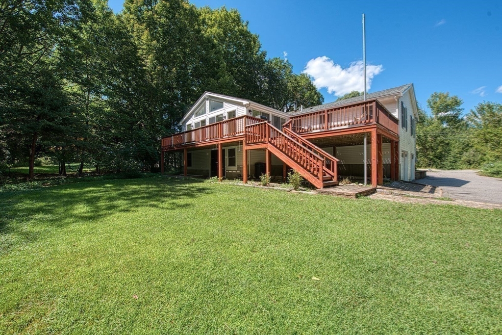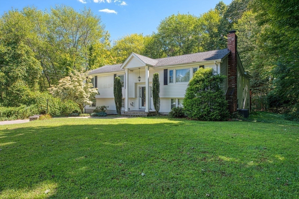 Welcome to this Stunning Raised Ranch home that perfectly blends comfort, space and style featuring 3 spacious bdrms, including a Primary Suite, and 3 Full Baths. This residence offers a versatile layout ideal for entertaining. Step into the sundrenched Great Room with lots of sliders and skylights and has access to the expansive deck and backyard. The open concept design flows seamlessly into a spacious Dining room and Kitchen with an island, making it the heart of the home. Rich Hardwood flooring runs throughout most of the home adding elegance. The LL offers a family room with fireplace, full bath, and area that can be used as a home office or gym .Enjoy the practicality of a 2car garage, Central Air and more. There is an additional room in the back with exterior access that has many possibilities. This property offers the perfect balance of functionality and flair. Sharon has top schools, Lake Massapoag, Borderland State Park, access to 95, shopping and more. Do not miss out