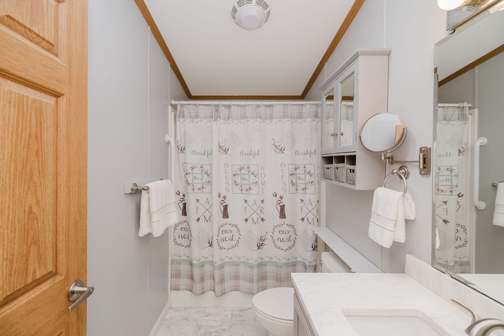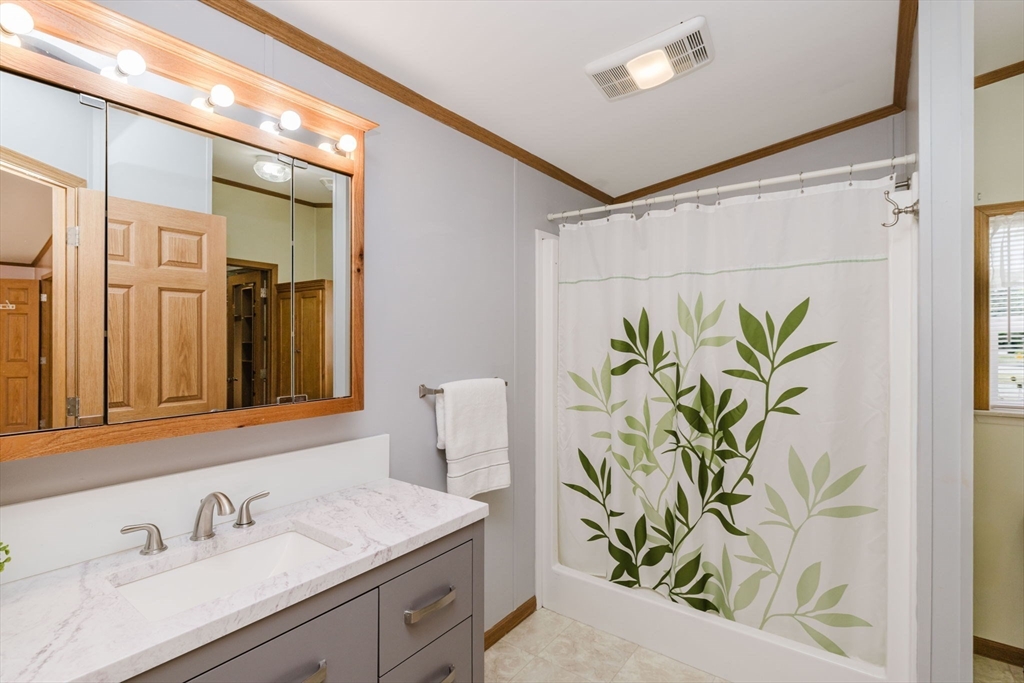 This beautifully designed home presents a remarkable opportunity to own a spacious residence in the desirable 55+ community of Pine Hill Estates. Custom built for the present owner and lovingly maintained, this home provides the opportunity to embrace comfortable living in a serene environment. Picture starting your day in the beautifully appointed kitchen or enjoy your coffee in the sunroom - ideal for year round living with custom blinds, flooring and pellet stove. Entertaining will be a breeze with the oversized island, dining area, or outside on the private patio with Sunbrella awning. The primary suite will be your sanctuary - custom closet/dressing area, ensuite bath with walk in shower. Two additional bedrooms and a bath create options for additional sleeping, home office or hobby room. Beautiful gardens surround the property and there's an oversized shed with electricity and shelving. There is so much more to discover about this unique residence - it's a must see!