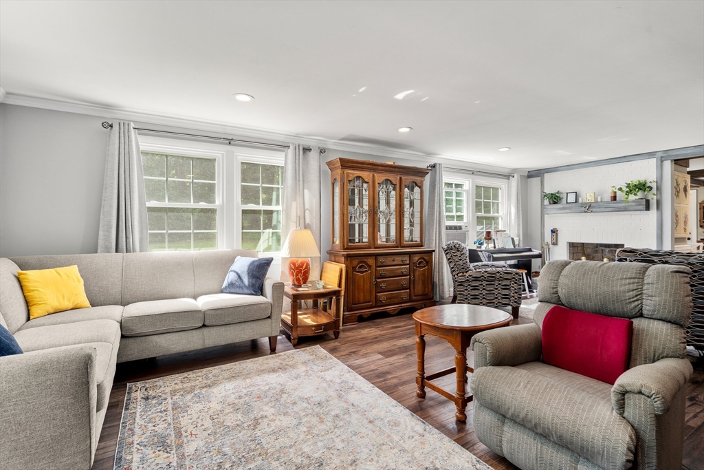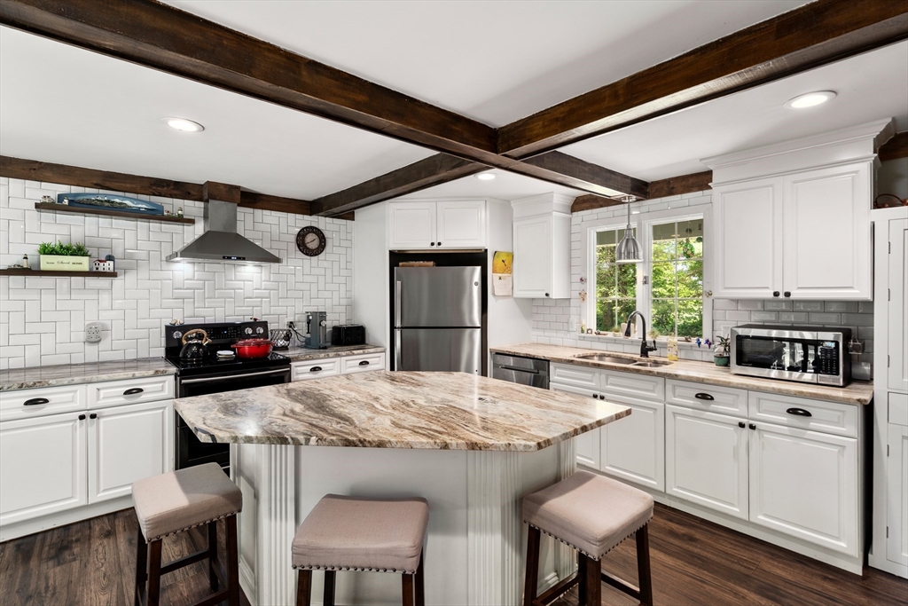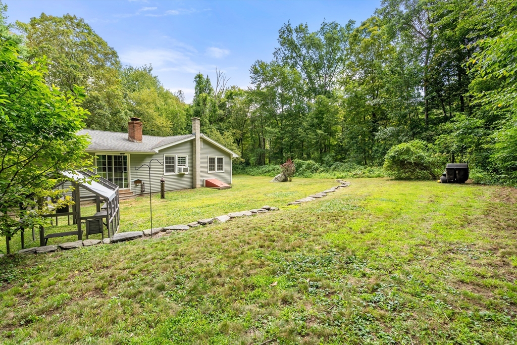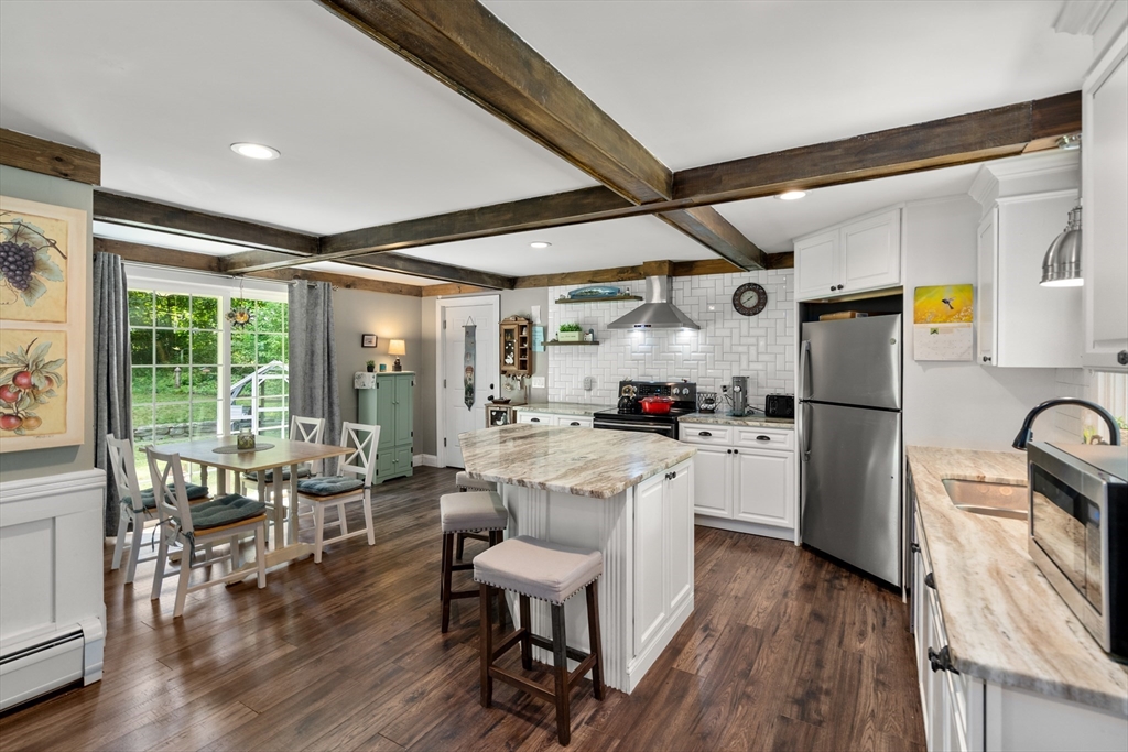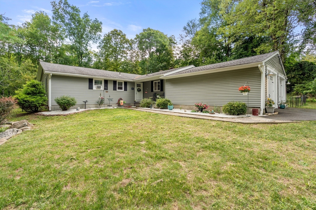 Welcome to this beautifully updated Ranch-style home, set on a generous 1.32-acre lot with easy access to downtown and shops, dining, and amenities. This move-in ready property offers the perfect blend of modern upgrades, spacious living, and outdoor tranquility. Inside, you'll find a remodeled eat-in kitchen featuring granite countertops, stainless steel appliances, and a center island ideal for entertaining. The inviting living area includes a wood-burning fireplace and updated flooring throughout, creating a warm and stylish atmosphere. The primary bedroom suite boasts a fully renovated en-suite bath, while the second full bath has also been thoughtfully updated for guests. Additional improvements include newer siding, roof, and windows, updated electrical, and a refreshed two-car garage with a newly paved driveway and garage floor. Enjoy the privacy and space of your expansive lot—perfect for outdoor activities, gardening, or future expansion. This home checks all the boxes.