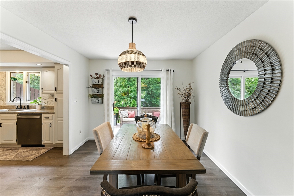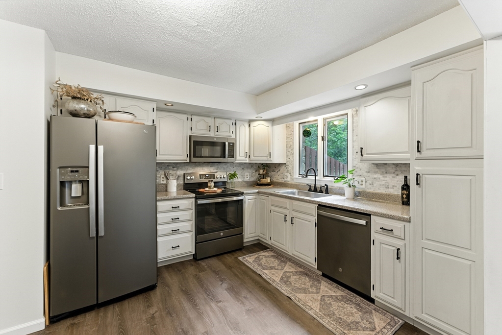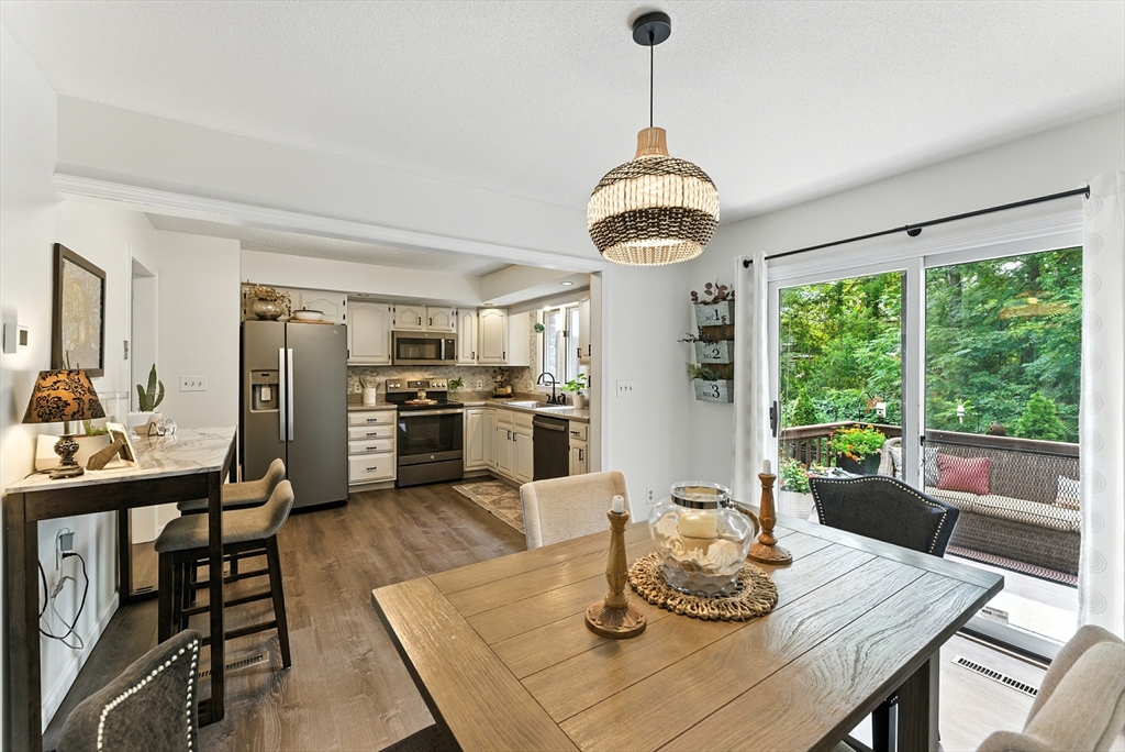 This Beautifully Renovated 2 bed, 2.5 bath Townhouse has the modern updates & open layout everyone wants and located in a Condominium Community Like No Other~ Castle Hill —where style, comfort, and convenience all comes together! You'll discover a bright open concept with "wood look" vinyl flooring throughout blends style & continuity into the condo. An expansive living room with cozy fireplace flows seamlessly into the inviting dining room with sliders to your private deck and yard—perfect for outdoor gatherings. The updated kitchen shines with white painted cabinetry, sleek counters, & newer appliances, while a sparkling half bath completes the main level. Upstairs, you’ll find a full guest bathrm, two generous bedrooms both w/plenty of closet space includes an exceptional primary en-suite is a splendid retreat. Featuring Gas Heat, Updated Central Air, Updated Gas Hot Water Tank & a full basement offers future potential & great storage. Move Right In! You'll Love Living Here!