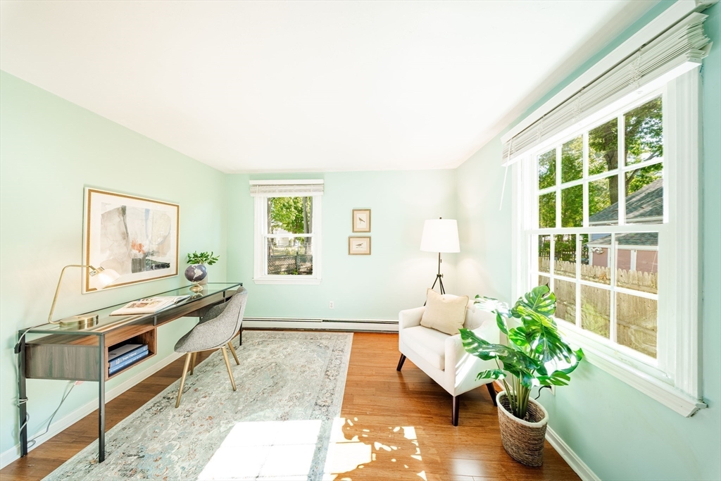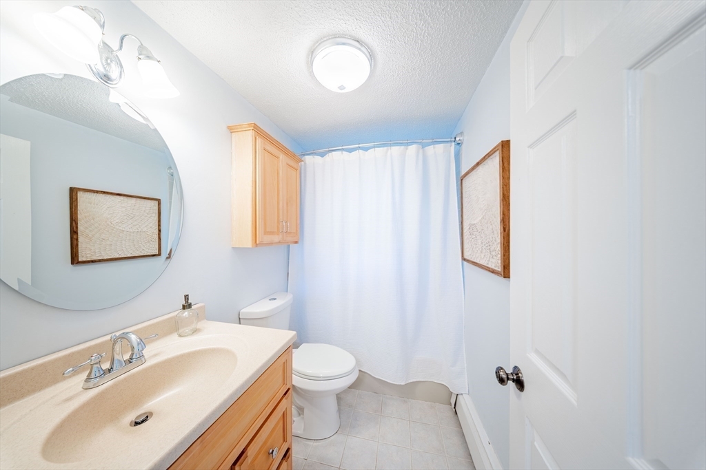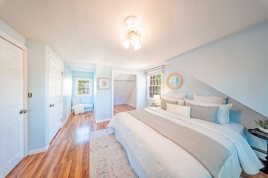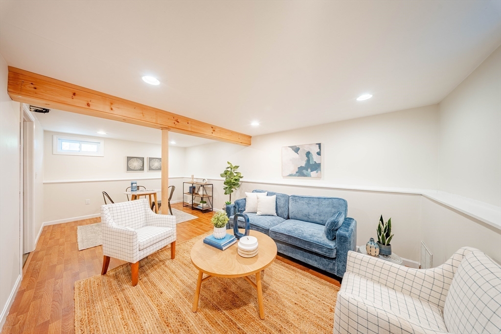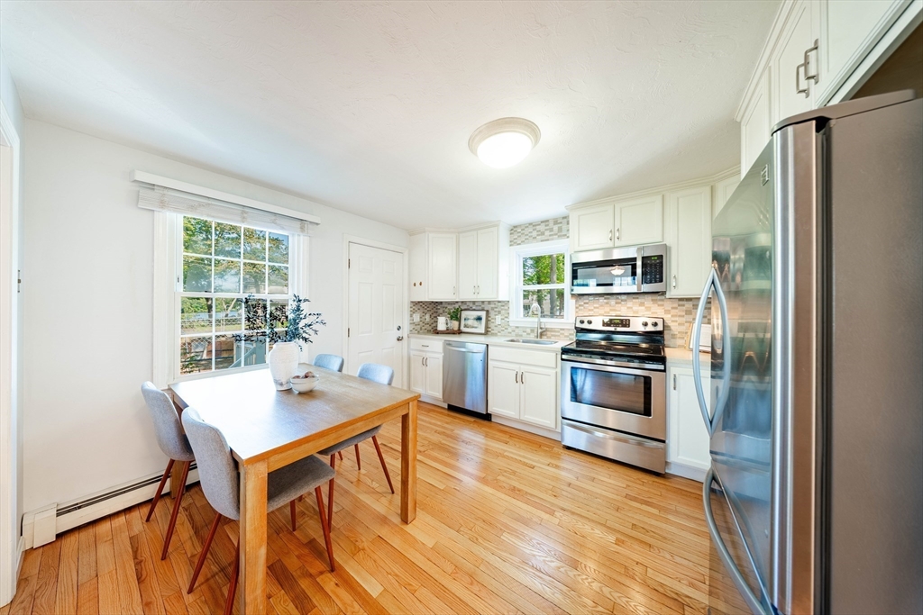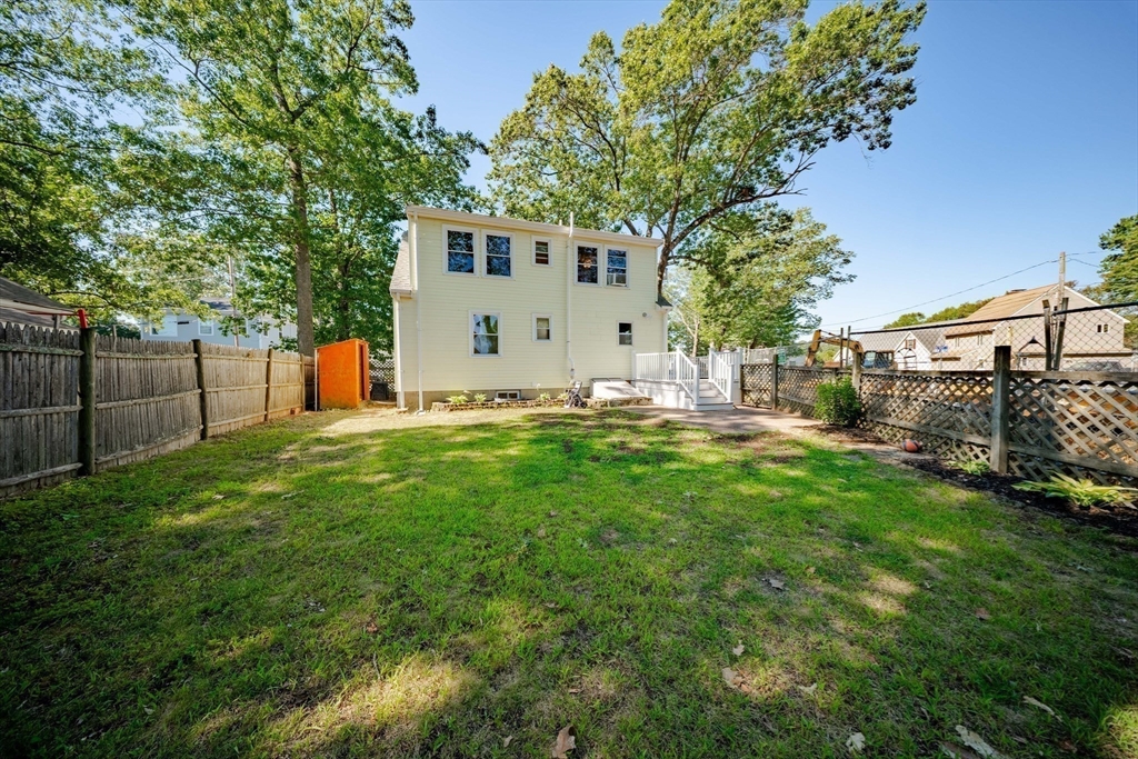 Welcome to this 4-bedroom, 2-bath Cape located across from Waushakum Pond, where neighborhood access makes it easy to enjoy boating, kayaking, and fishing, with beach access less than a mile away. The main level offers an open-concept layout with a fireplaced living room and an updated kitchen featuring stainless steel appliances, solid countertops, and a glass tile backsplash. Two bedrooms and a full bath complete the first floor, while the second level includes two spacious bedrooms, generous closet space, and another full bath. The lower level provides laundry, storage, and a finished bonus room perfect for a home office or playroom. Outside, relax on the newer composite deck overlooking the level, fenced-in backyard. Tucked away at the end of a quiet street, this home combines a peaceful setting with easy access to shopping, restaurants, and public transportation.