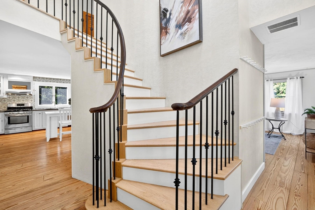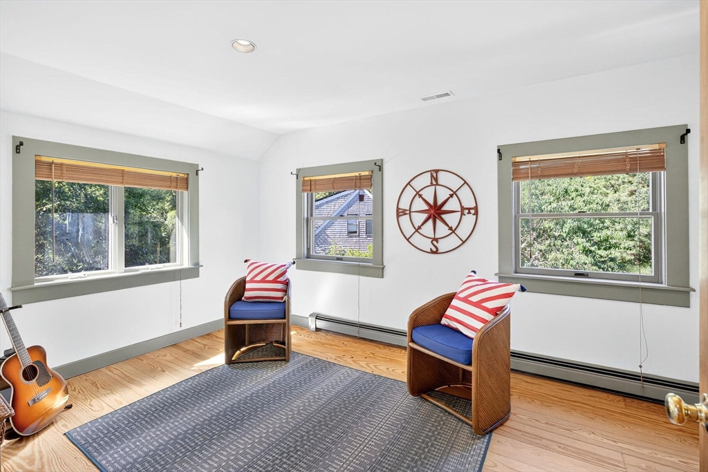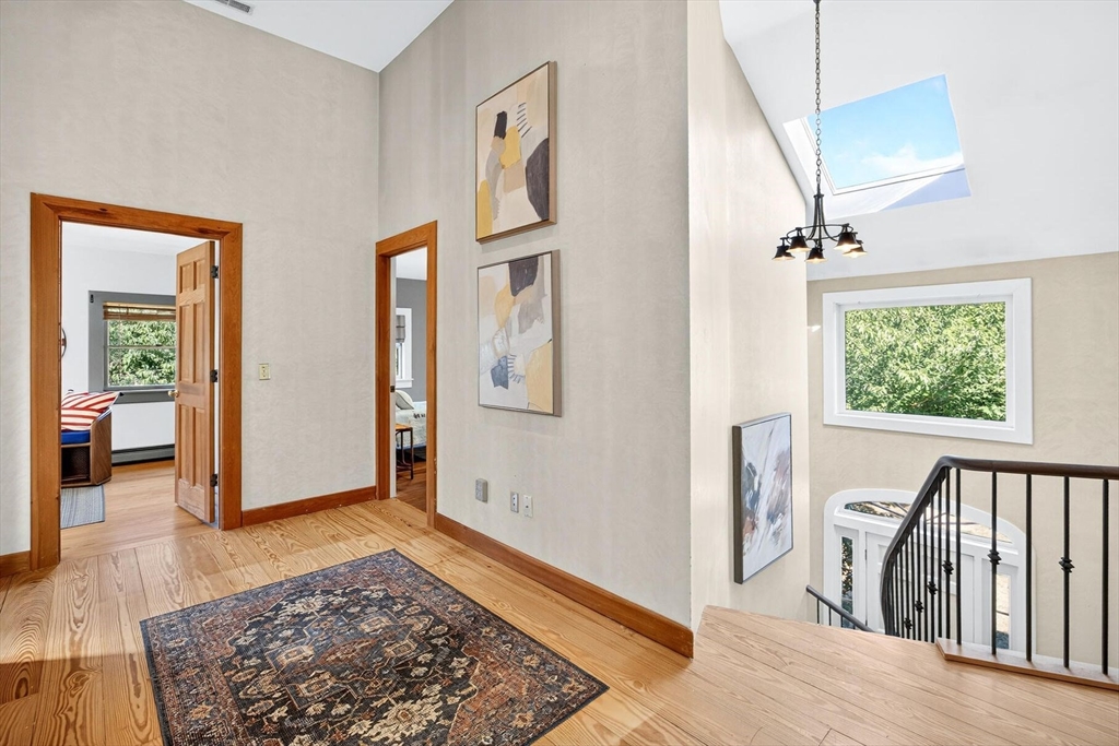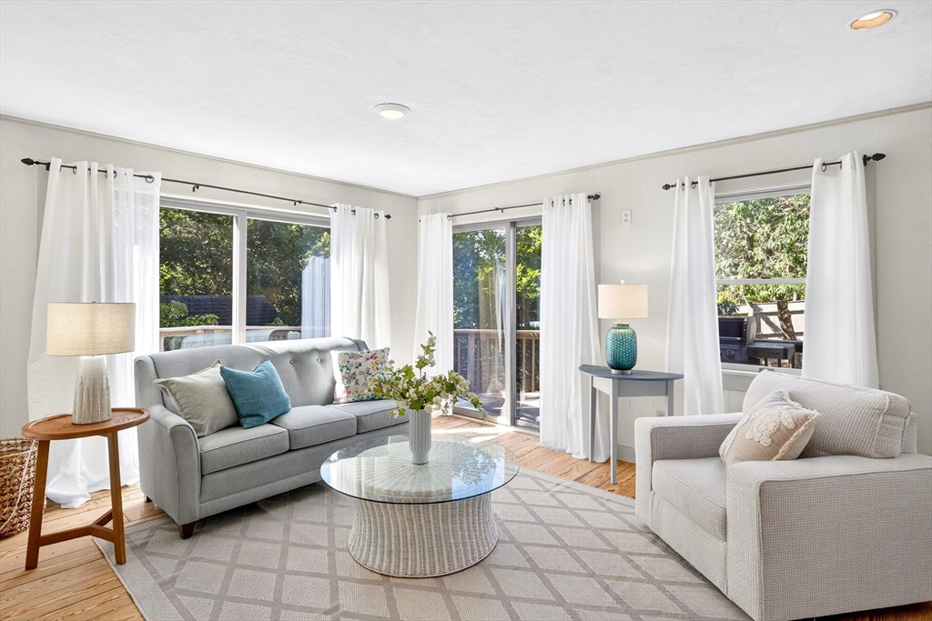 Gateway to the Cape Cod National Seashore Tucked away at the end of a quiet cul-de-sac, this custom-built Eastham residence offers nearly 3,000 sq. ft. of well-designed living space in an unbeatable location. Great proximity to Red Trail and Aschettino Property Walk, where you can explore the South Eastham Conservation Area, historic Jeremiah's Gutter, and the Cape Cod Rail Trail. The home features 3 bedrooms and 3.5 baths across three levels, highlighted by warm yellow pine floors, central A/C, gas heat, and solar panels. The walk-out lower level expands the living options, while the oversized wraparound deck creates the perfect space for outdoor entertaining.