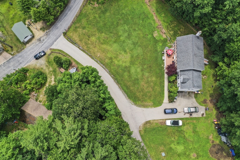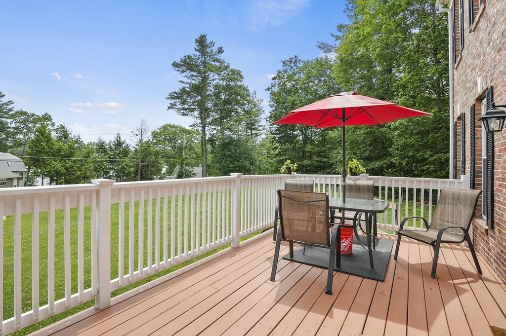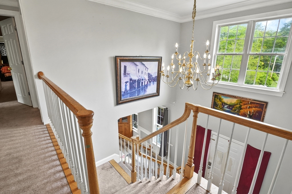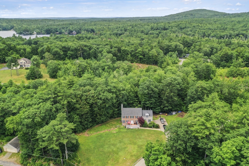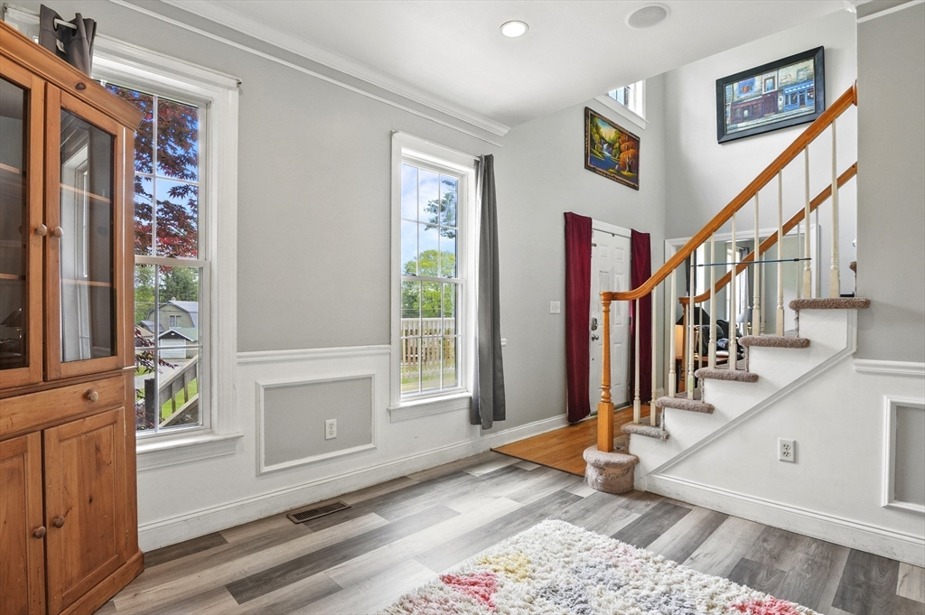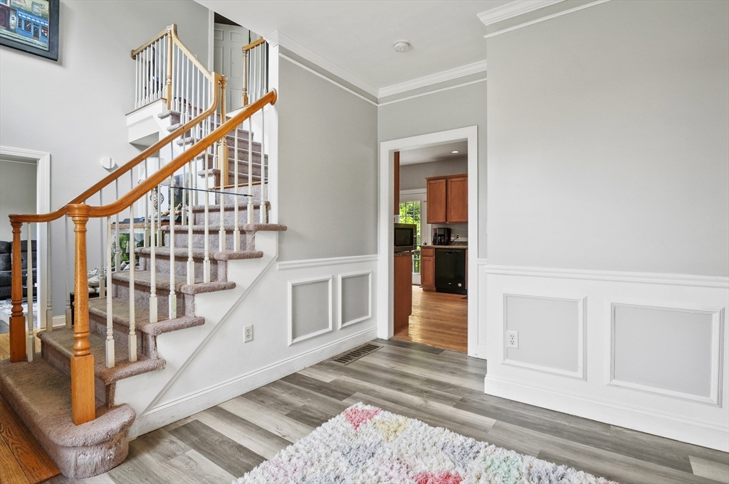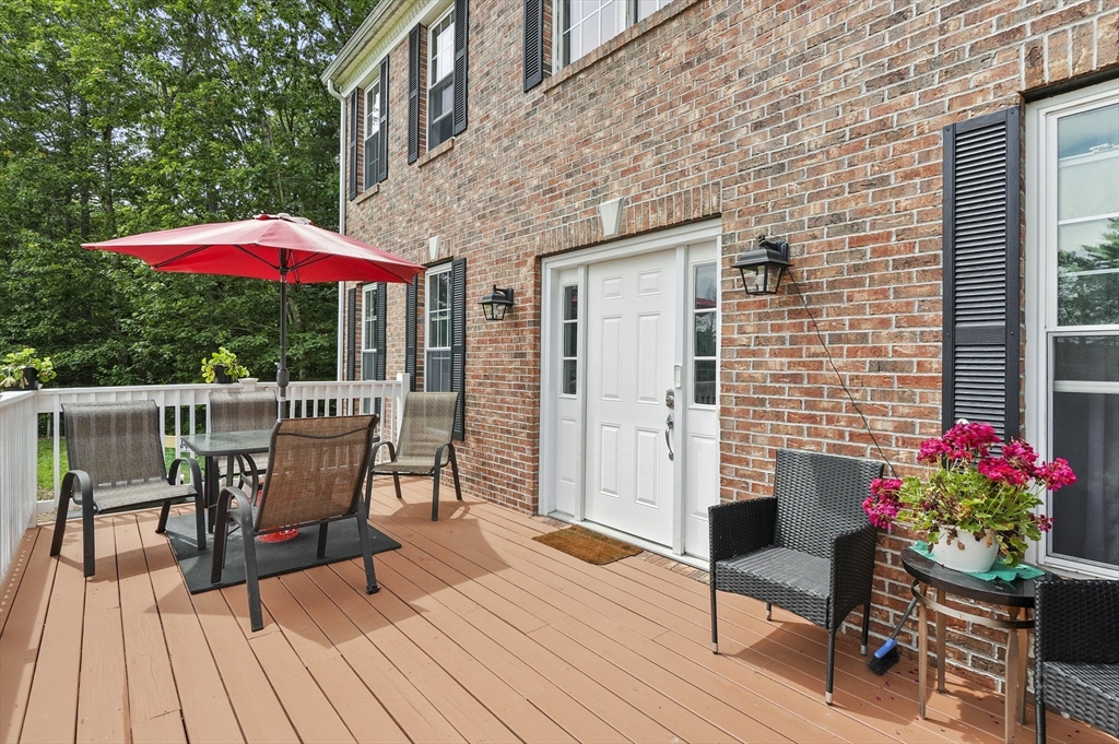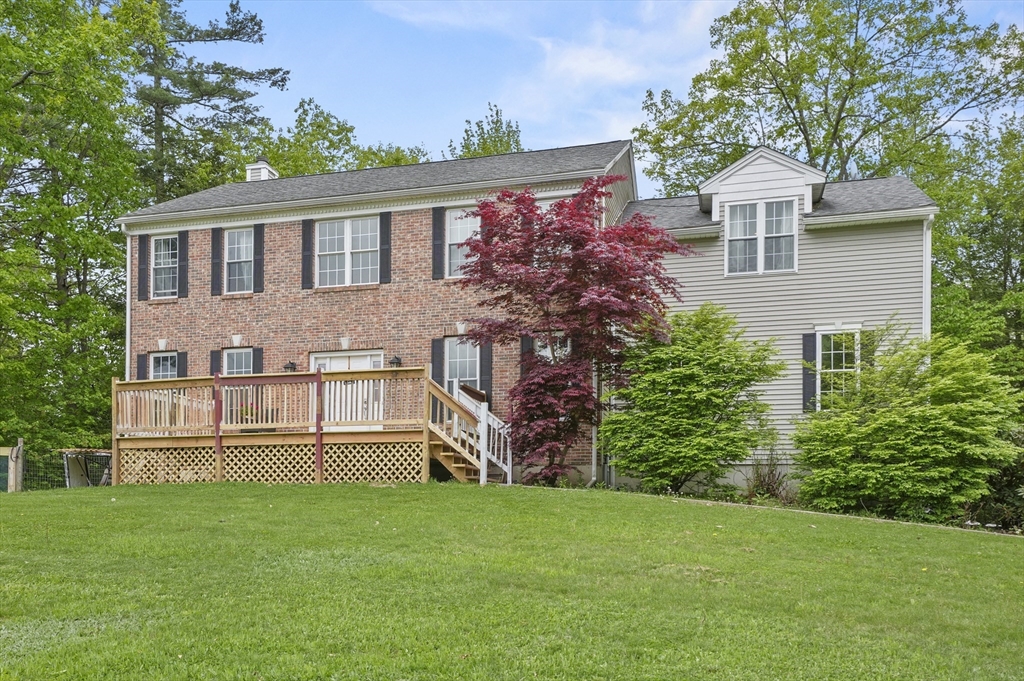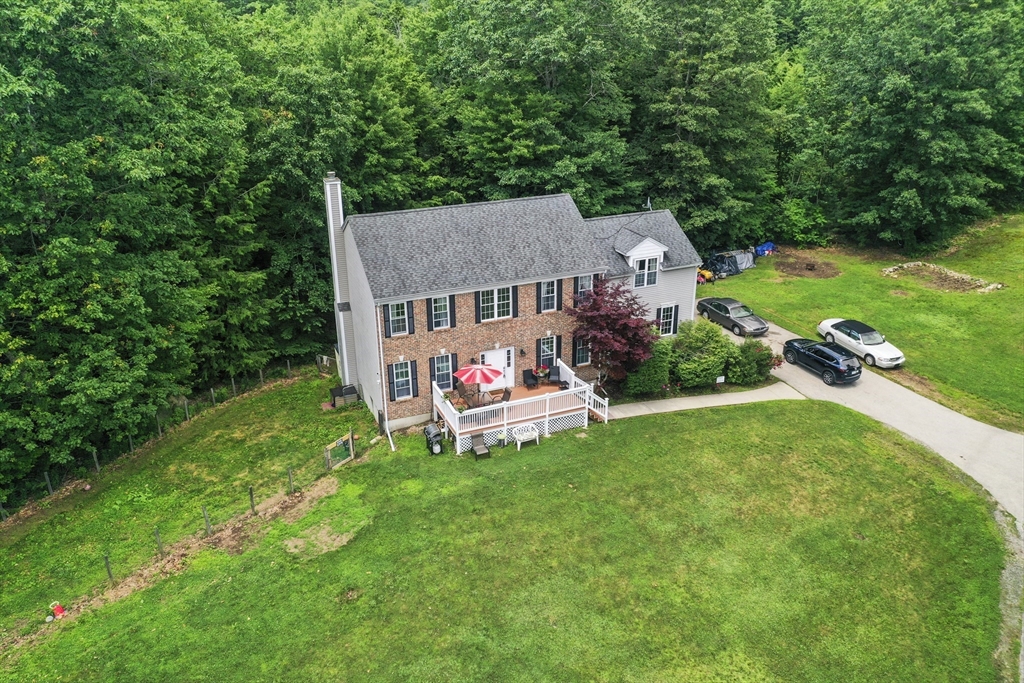 Welcome home to this elegant, brick-front 4-bedroom, 2.5-bath Colonial. Built in 2007, the home welcomes you with a dramatic vaulted foyer flanked by a living room and dining room featuring stylish vinyl plank flooring. The open-concept kitchen and family room boast hardwood floors, a fireplace, recessed lighting, stainless steel appliances, surround sound, and sliders that lead to a spacious back deck. A convenient half bath with laundry completes the main level. Upstairs, the primary suite offers a peaceful retreat with double walk-in closets, a soaking tub, dual sinks, and a separate shower. Three additional bedrooms and a full bath round out the second floor. With a two-car garage, over 1.3 acres of open land, and sweeping views of Stodge Meadow Pond, this property is a unique opportunity to bring your vision to life in a naturally beautiful setting. Schedule your showing today and imagine the possibilities!
