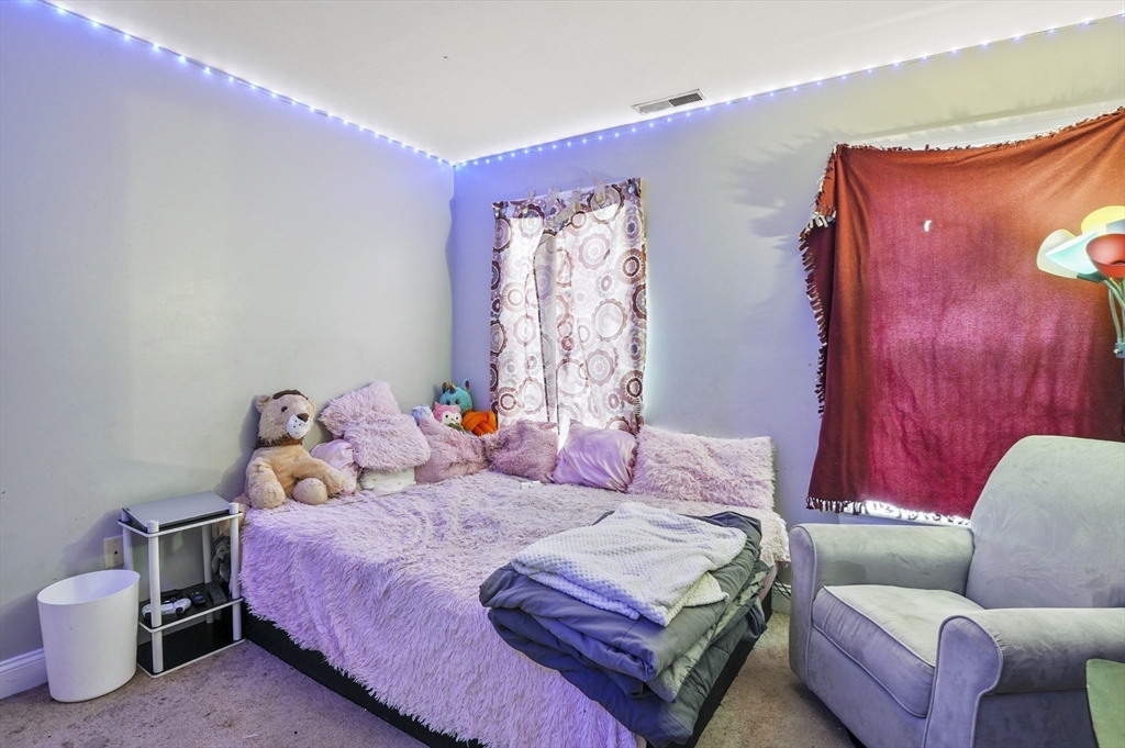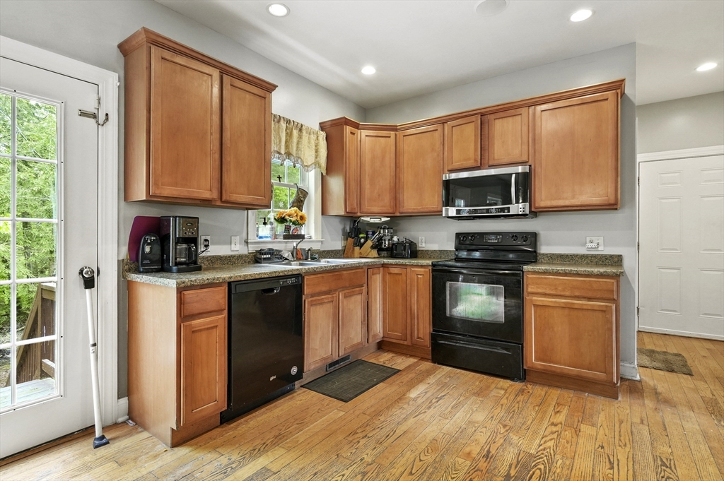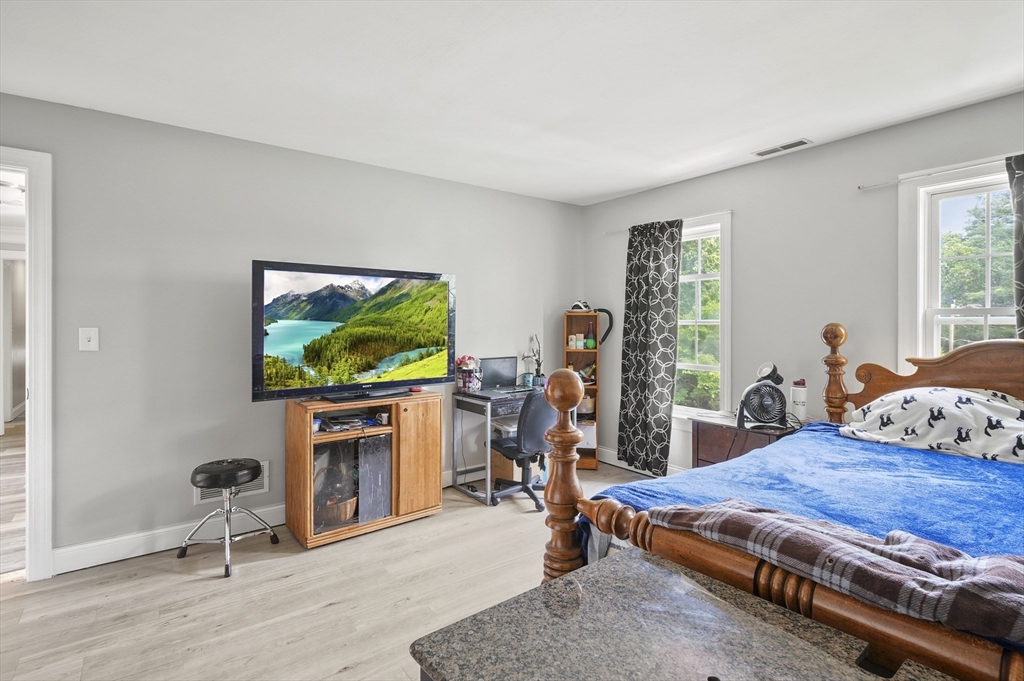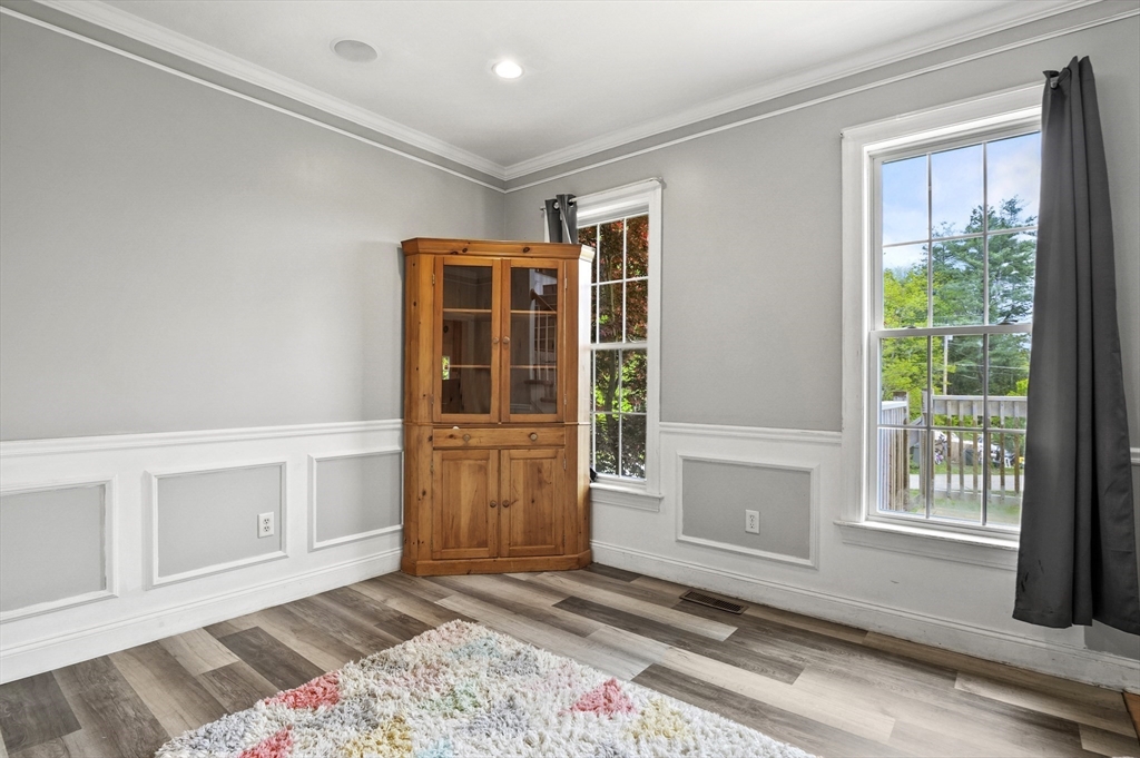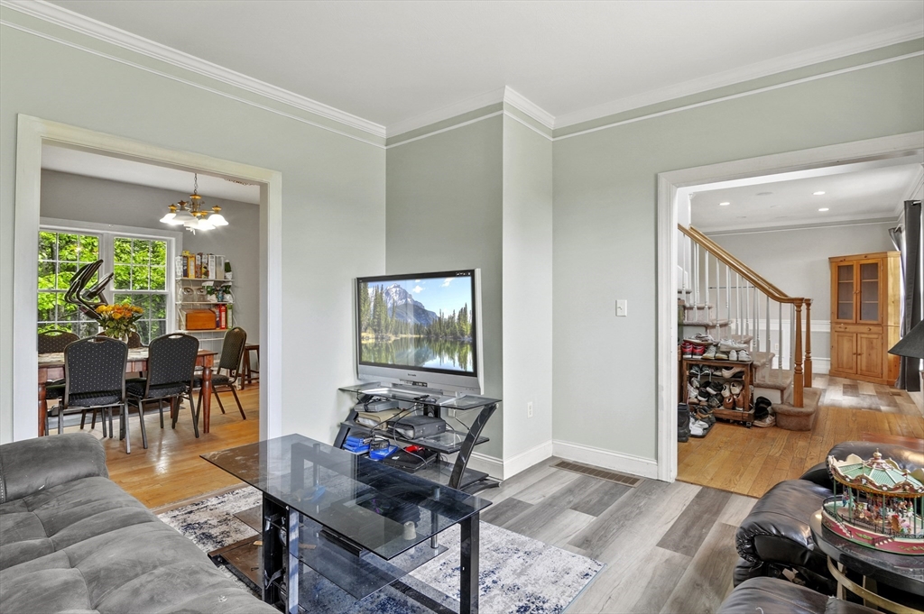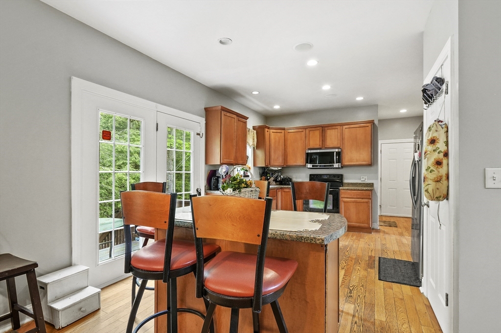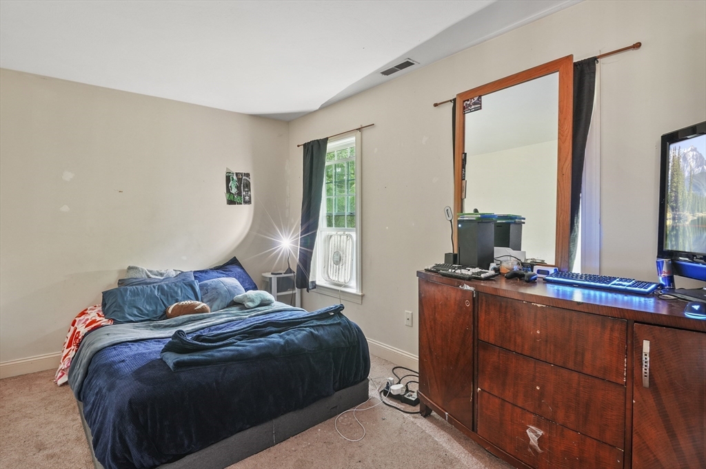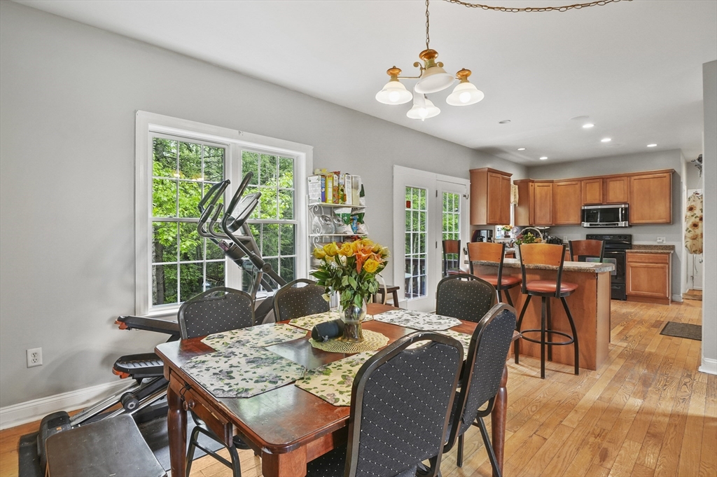 Welcome home to this elegant, brick-front 4-bedroom, 2.5-bath Colonial. Built in 2007, the home welcomes you with a dramatic vaulted foyer flanked by a living room and dining room featuring stylish vinyl plank flooring. The open-concept kitchen and family room boast hardwood floors, a fireplace, recessed lighting, stainless steel appliances, surround sound, and sliders that lead to a spacious back deck. A convenient half bath with laundry completes the main level. Upstairs, the primary suite offers a peaceful retreat with double walk-in closets, a soaking tub, dual sinks, and a separate shower. Three additional bedrooms and a full bath round out the second floor. With a two-car garage, over 1.3 acres of open land, and sweeping views of Stodge Meadow Pond, this property is a unique opportunity to bring your vision to life in a naturally beautiful setting. Schedule your showing today and imagine the possibilities!
