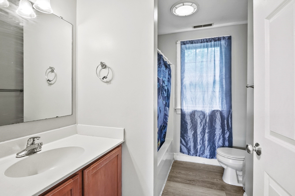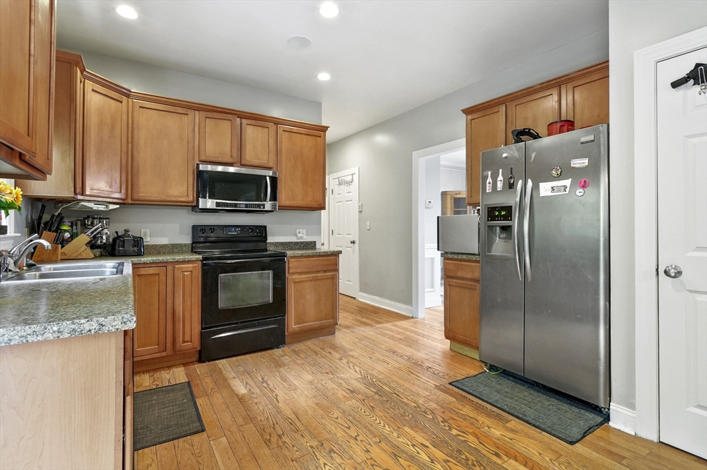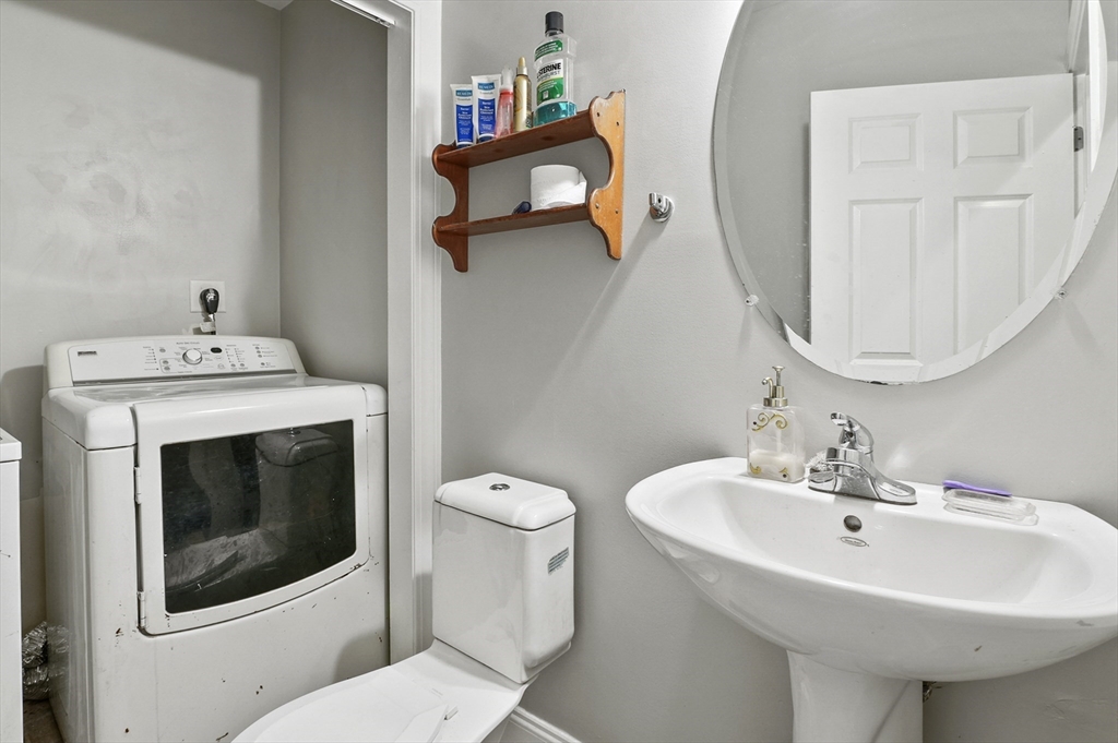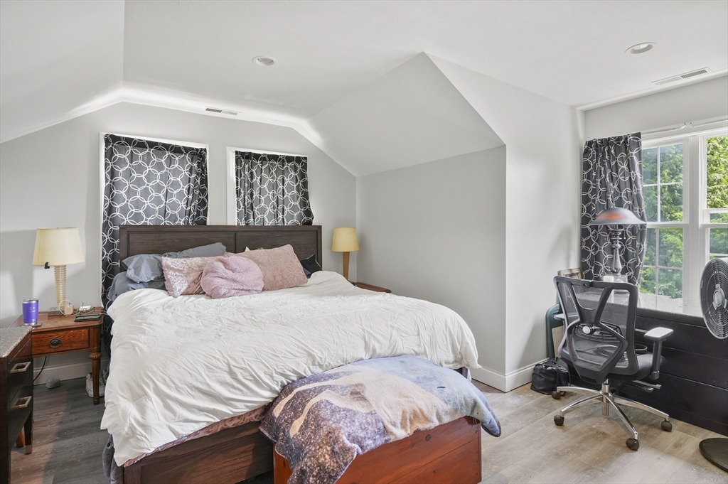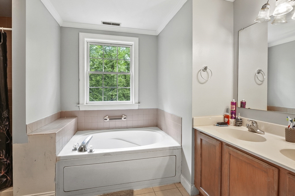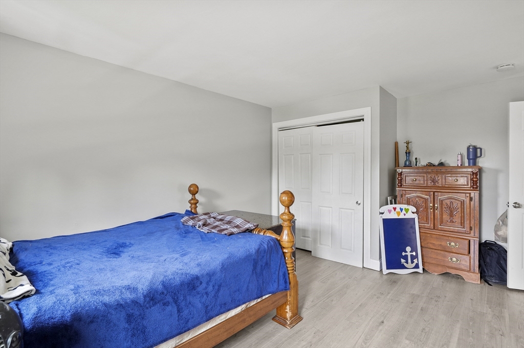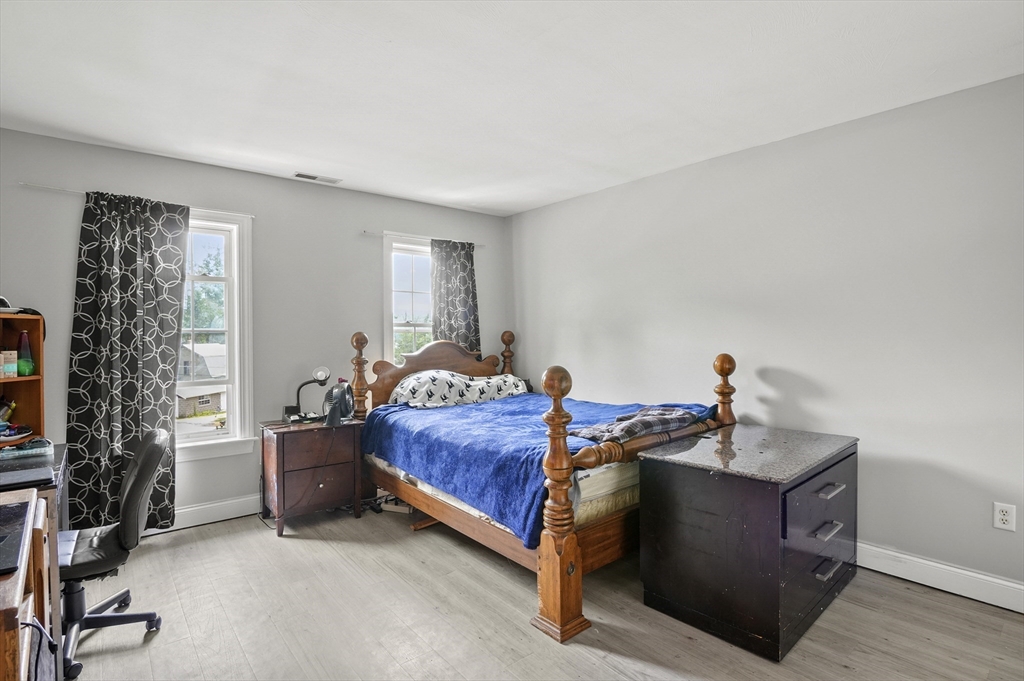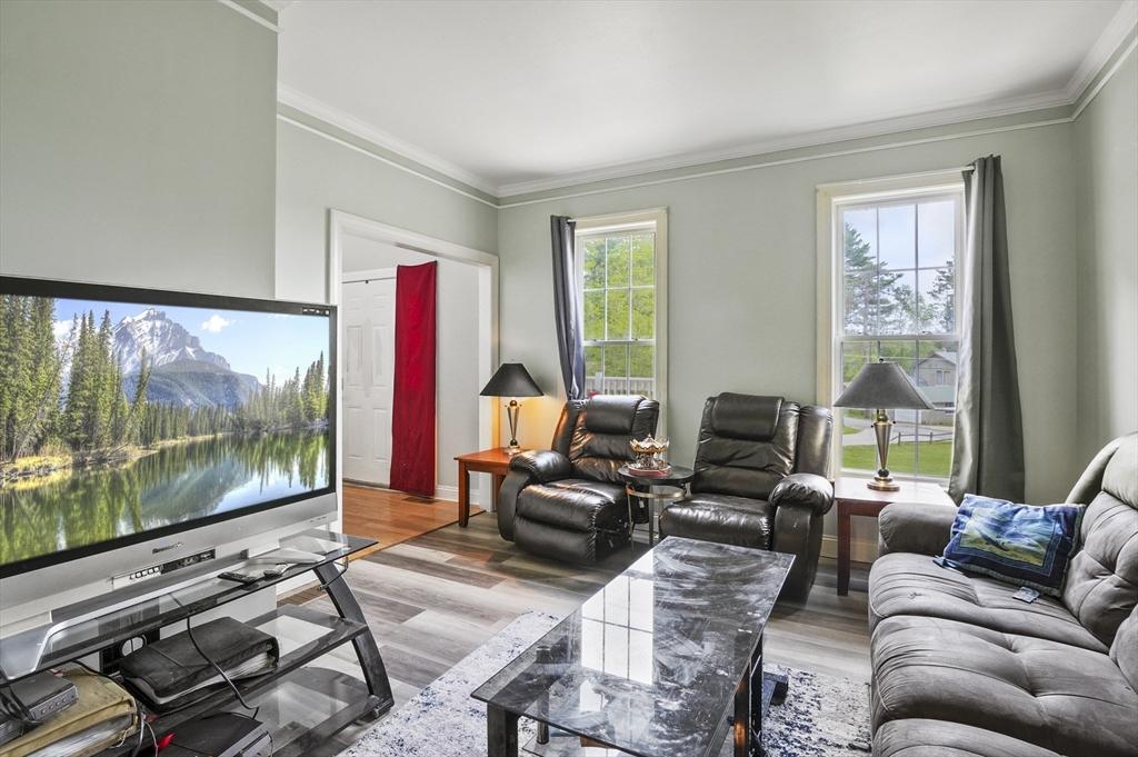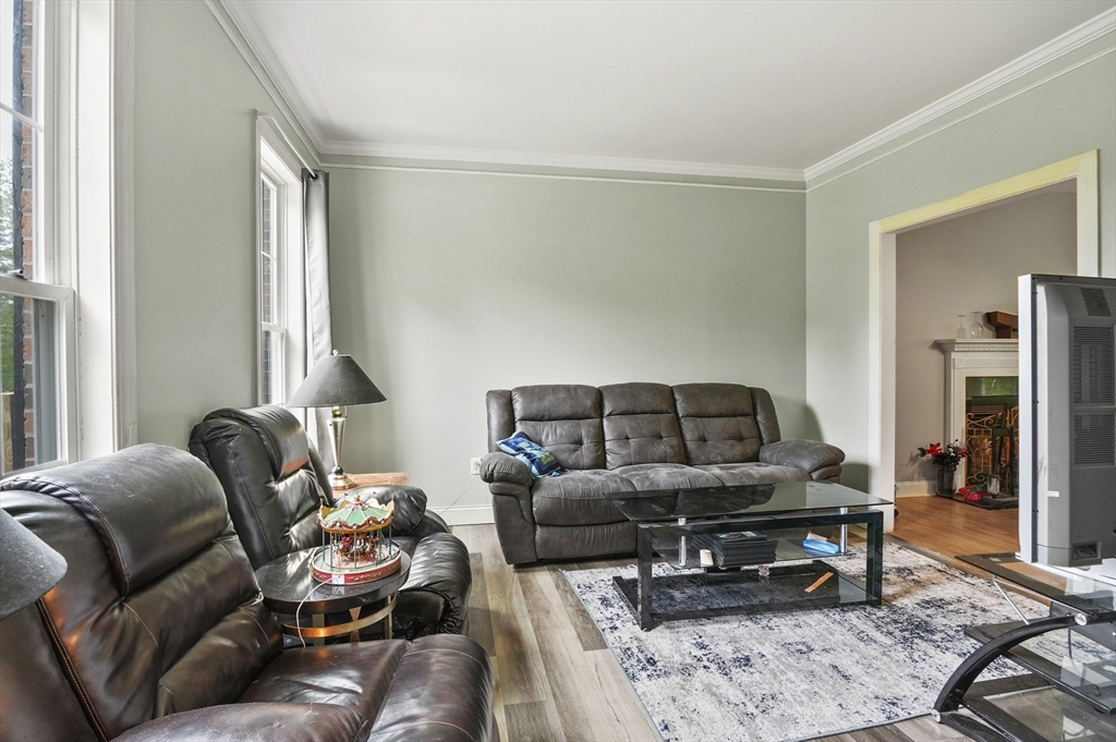 Welcome home to this elegant, brick-front 4-bedroom, 2.5-bath Colonial. Built in 2007, the home welcomes you with a dramatic vaulted foyer flanked by a living room and dining room featuring stylish vinyl plank flooring. The open-concept kitchen and family room boast hardwood floors, a fireplace, recessed lighting, stainless steel appliances, surround sound, and sliders that lead to a spacious back deck. A convenient half bath with laundry completes the main level. Upstairs, the primary suite offers a peaceful retreat with double walk-in closets, a soaking tub, dual sinks, and a separate shower. Three additional bedrooms and a full bath round out the second floor. With a two-car garage, over 1.3 acres of open land, and sweeping views of Stodge Meadow Pond, this property is a unique opportunity to bring your vision to life in a naturally beautiful setting. Schedule your showing today and imagine the possibilities!