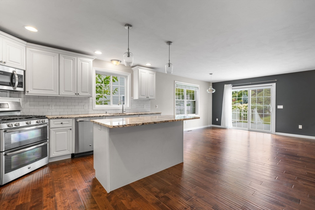 Welcome to 498 Hilldale Ave! Built in 2016, this beautiful townhome lives like a single-family home and has no HOA fees. The main level features an open floor plan with a bright living room, a gas fireplace, and a slider to a composite deck overlooking a fenced backyard. The kitchen offers granite countertops, stainless steel appliances, white shaker cabinets, a center island, and a spacious pantry. Upstairs, the primary suite boasts vaulted ceilings, a walk-in closet, and an en-suite. Two additional bedrooms, a full bath with double sinks, and laundry complete the second floor. Additional highlights include hardwood flooring, recessed lighting, and plenty of storage throughout. With central air, an attached garage, and easy access to Routes 495, 93, and 95, this home blends style, comfort, and convenience in a prime Haverhill location. Move right in and enjoy!