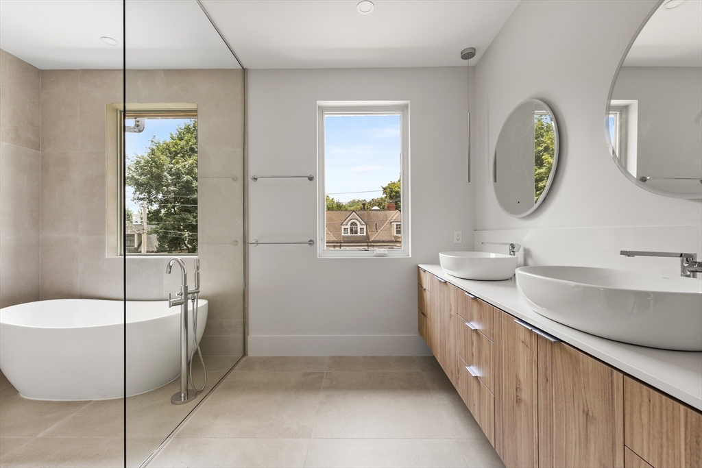 Introducing 185 Tappan, where modern design meets luxurious living in the heart of Brookline. 2025 built, featuring 5 bedrooms & 5.5 bathrooms, offering a perfect blend of style and function. Natural light floods the home through expansive windows, illuminating the open floor plan. The main level includes a sophisticated designer kitchen that seamlessly transitions to the dining area and family room, which opens onto a stone patio and a generous backyard. The main level also includes a bedroom with an en-suite bathroom. On the second floor, the primary suite impresses with a spa-inspired bath and a generous walk-in closet. 3 more bedrooms with en-suite bathrooms, a laundry room complete this floor. Enjoy the finest materials & finishes curated by reputable local developer, Arco Design + Build.