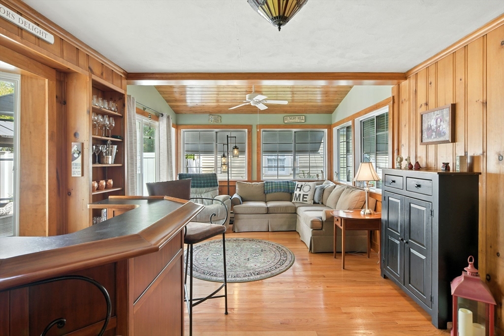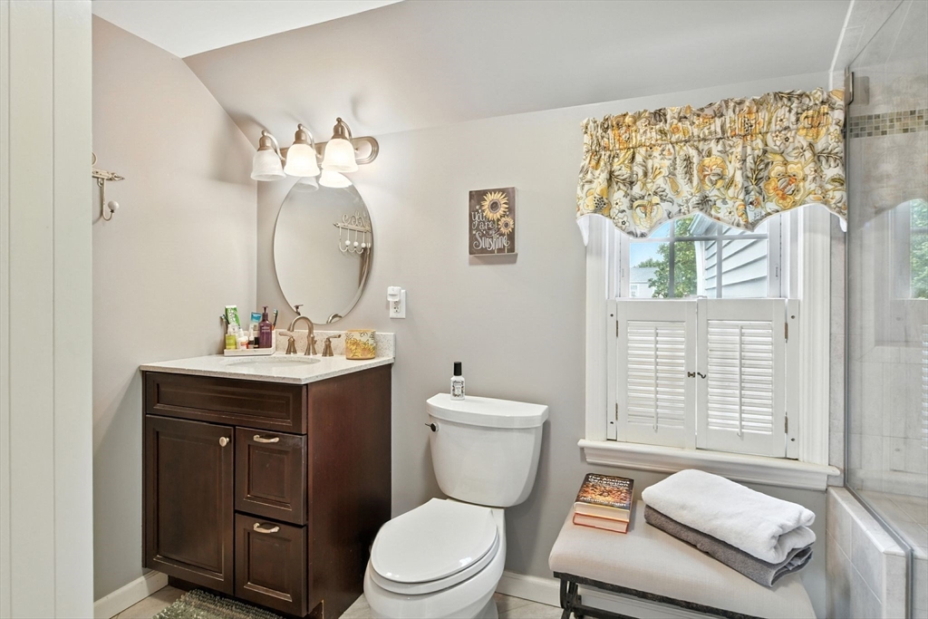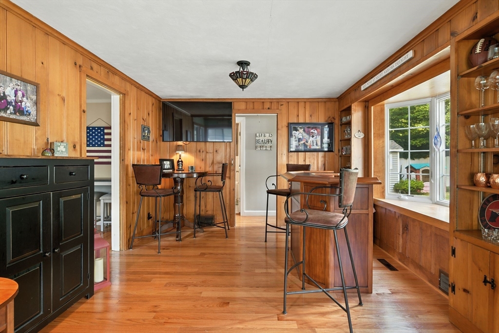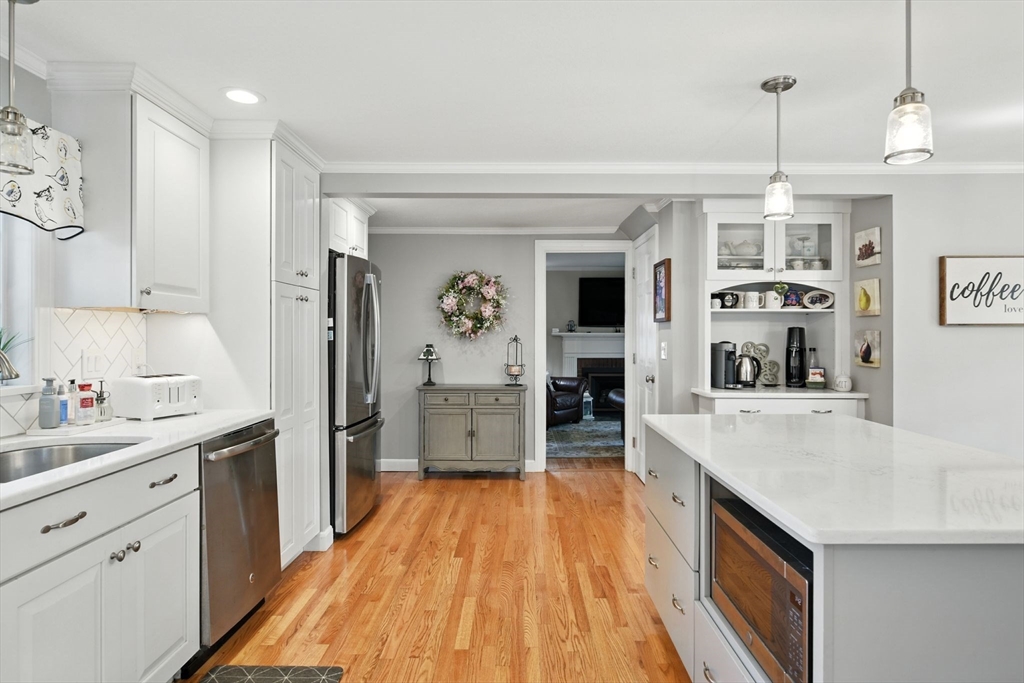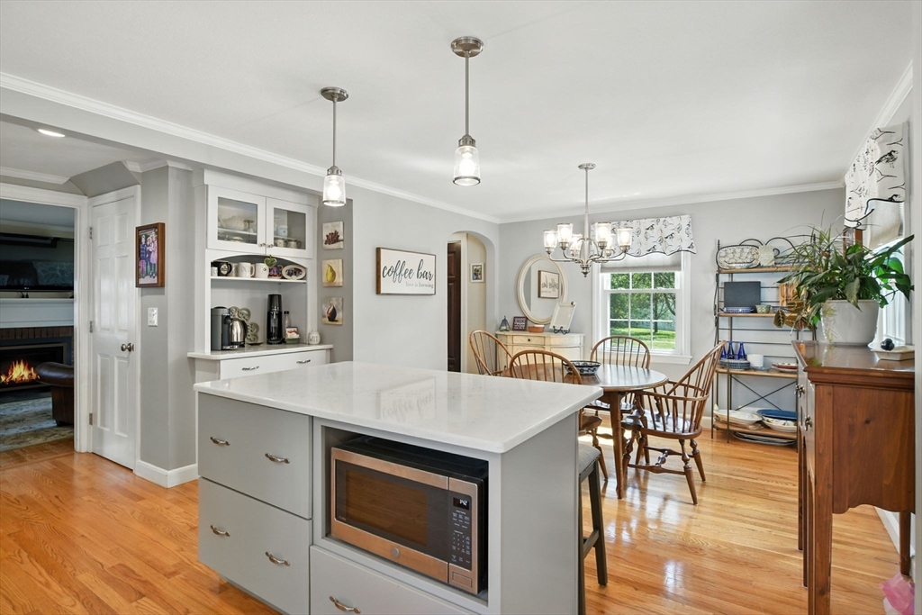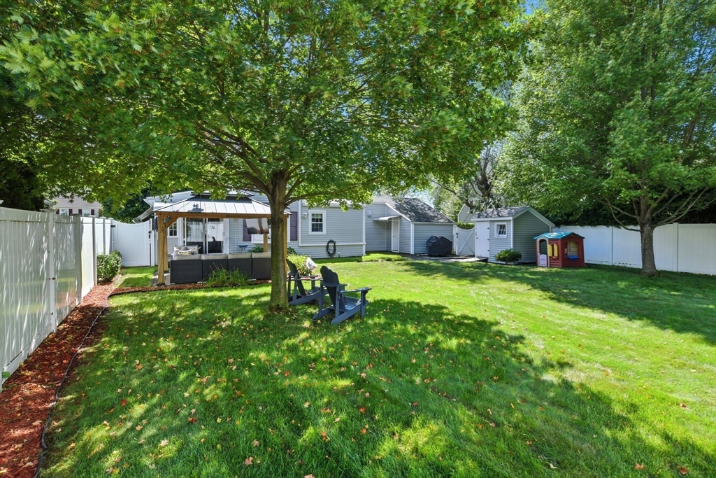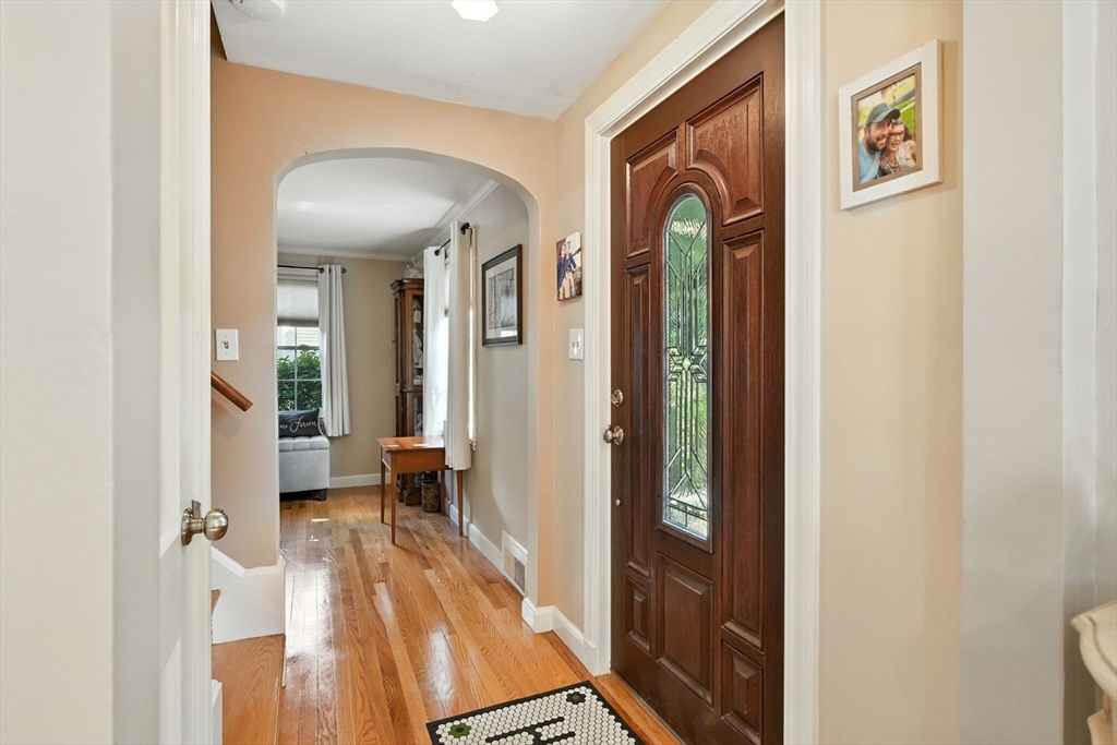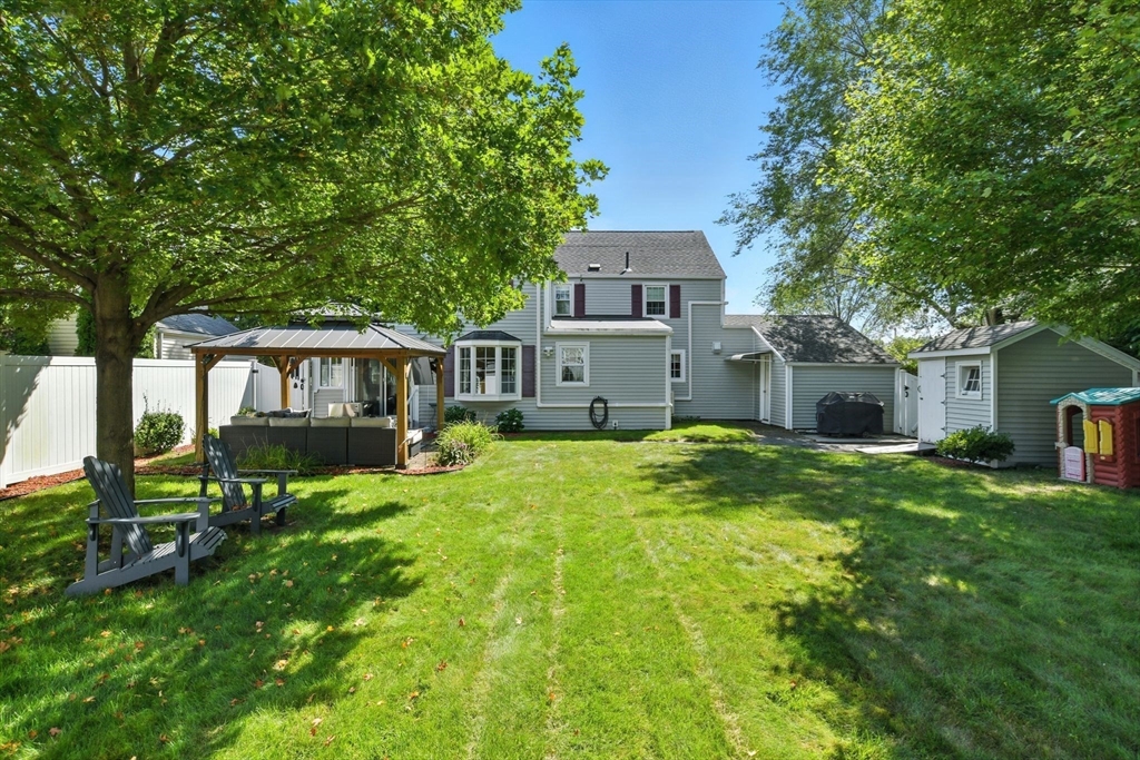 Meticulously maintained 7-room, 3-bedroom, 2-bath Colonial in desirable East Forest Park. Owned by the same family since 1947, this home has been thoughtfully renovated with pride of ownership throughout. Features include vinyl siding, updated windows, 1-car garage, and a fenced backyard with shed, paver patio, and gazebo. Inside offers hardwood floors, a spacious living room with gas fireplace, and a sun-filled sitting room with slider to backyard. The remodeled kitchen (2020) boasts quartz counters, custom cabinetry, stainless steel appliances, tile backsplash, oversized island, recessed lighting, and built-in coffee bar, opening to the dining room. First-floor full bath, laundry, and updates throughout. Upstairs includes a renovated primary bedroom with walk-in closet, stunning full bath with custom tile shower, and two additional bedrooms. Major updates: roof, baths, kitchen, electrical, mini splits, gas insert, and furnace.