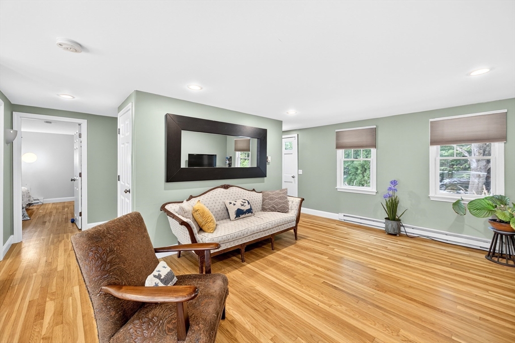 An exceptionally rare offering in the highly desired Sheep Pond Estates offers you deeded beach access to a private association beach on Sheep Pond, where sandy shores, boating and fishing opportunities await. This delightful well-maintained ranch-style home with a tastefully finished lower level offers the perfect blend of thoughtfully designed indoor and outdoor living. Step into a welcoming fire-placed living area that flows seamlessly to the dining area with access to a large deck ideal for entertaining. There are hardwood floors throughout and a stylishly renovated kitchen featuring maple cabinets, Corian countertops, Italian tiled floors and new appliances. With a private and spacious backyard, you'll also have plenty of room for outdoor activities or simply relaxing in your outdoor oasis. This home is not just a residence—it's a gateway to a lifestyle enriched by nature and community. A little slice of paradise awaits you and your loved ones.