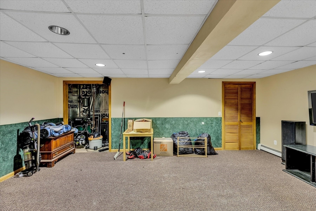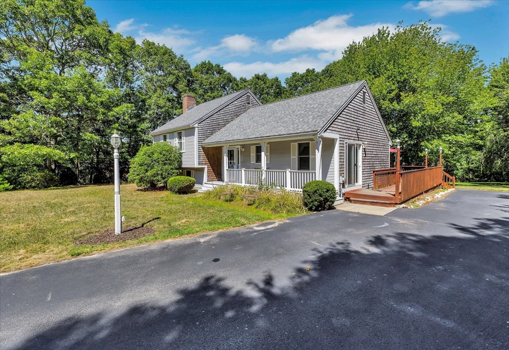 Set on 1.75 acres, this spacious split-level offers three bedrooms and two full baths with a versatile layout. The sunken living room features cathedral ceilings, hardwood floors, built-ins, and an abundance of natural light. The kitchen and dining area flow seamlessly to a large wrap-around deck with lots of privacy and a charming farmer's porch - perfect for entertaining or enjoying quiet mornings. The lower-level walk-out features a generous great room with a fireplace and wet bar, a dedicated laundry room, a home office, a media room, and a recently updated bathroom with tiled shower (2020). Additional highlights include central air conditioning, irrigation, a newer roof (installed in 2022), a newer boiler, a front door, and a freshly paved driveway. With plenty of indoor and outdoor space, this home combines comfort, updates, and character in a beautiful natural setting. Don't miss out on this opportunity to enhance this home and make it your own!