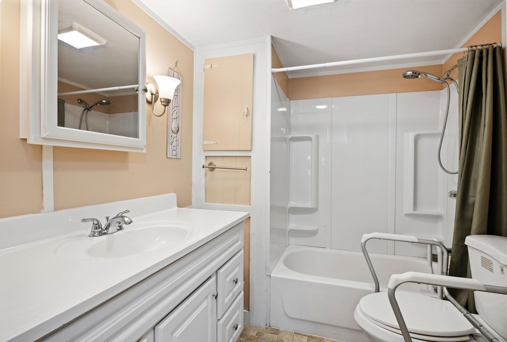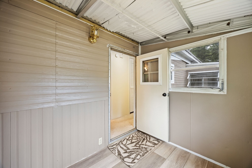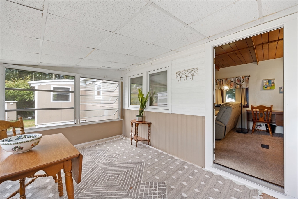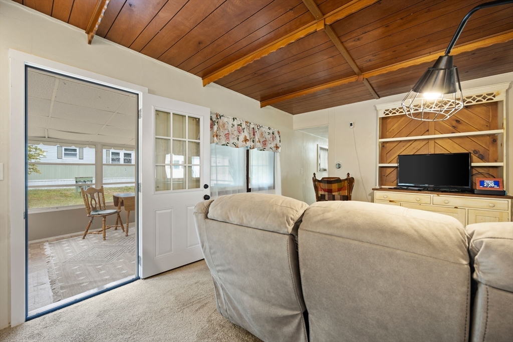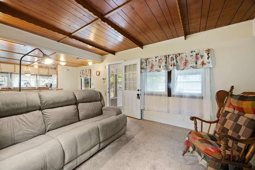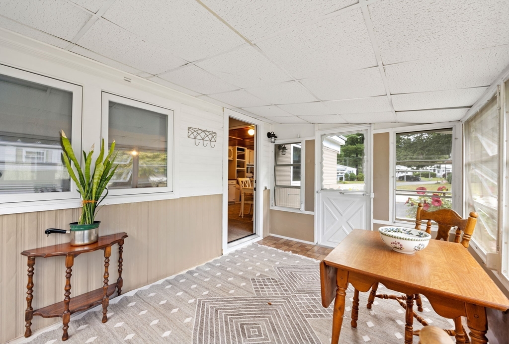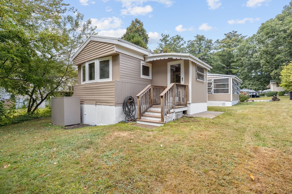 Well maintained manufactured home in Halifax Estates over 55 community. This home has a large open layout for the kitchen and living room.One small bedroom with laundry and one larger bedroom w/double closet. There are many windows throughout home that make the home bright and airy. Two 3 season porches add great space. Nice updated bathroom with tub/shower.There are 2 SMALL steps to get into trailer making it very easy to get into home from the car. There are trees behind the home and a shed with electricity. It’s such a comfortable home with a great yard & fabulous neighbors. The monthly fee of $670 covers a range of essential services, including: Basic cable TV, Weekly rubbish pickup, Town recycling,Town water, Septic system maintenance and/or updates. A one-time fee $1800 membership share purchase is required (this is not included in the home's price).Part of the membership application process, successful credit and background checks are required. Owner Owned Community! Built 1972