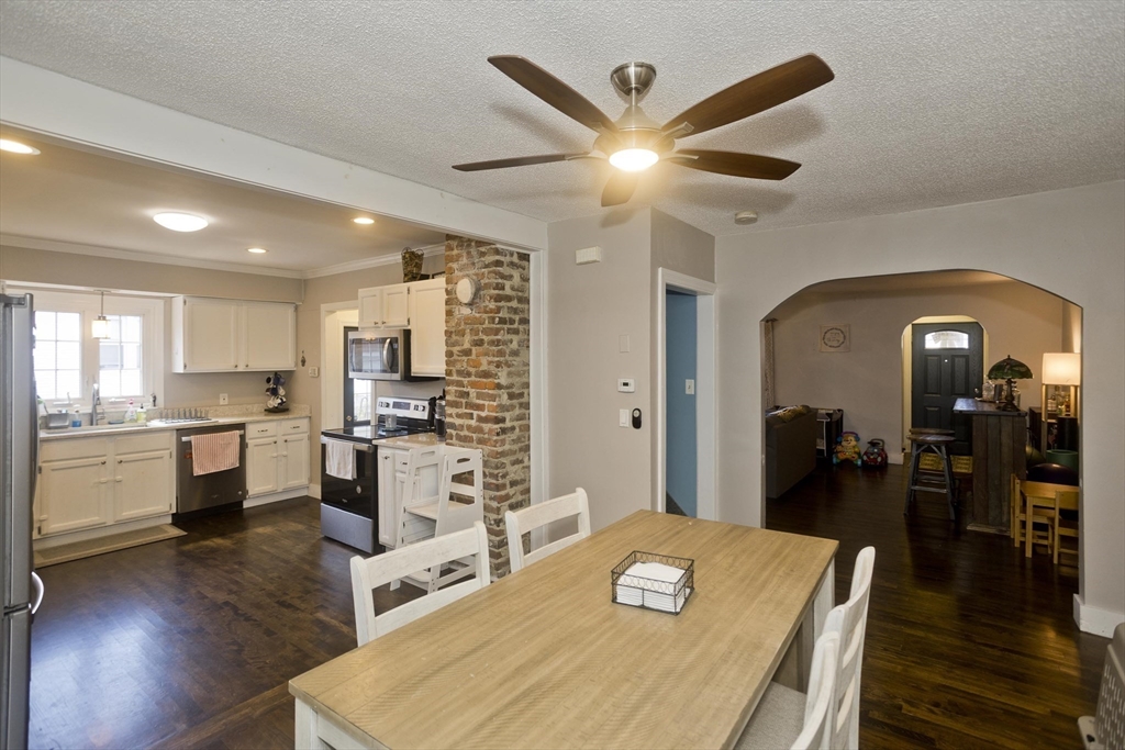 An exceptionally well maintained, charming brick Cape offering plenty of room to stretch out & settle into. With 5 bedrooms, 2.25 baths & an open floor plan, there's space for everyone, plus pets & plants too! Brand new AC unit! The layout includes 2 bedrooms & a full bath on the 1st floor & 3 more bedrooms upstairs along with a generously-sized carpeted landing perfect for a family area, office, or play space. The eat in kitchen was renovated within the last 5 years with quartz counters & stainless steel appliances, making dinner prep more fun. The cozy 3-season porch is ready for morning coffee or evening chats & the fenced-in, level yard is great for backyard games or garden dreams. There’s also a heated, partially finished room in the basement with a quarter bath, extra space ideal for hobbies or hideouts. Beautiful wood floors & updated finishes throughout add a polished touch. Nearby you'll find parks, ponds, shops, Ludlow CC & the local high school conveniently located.