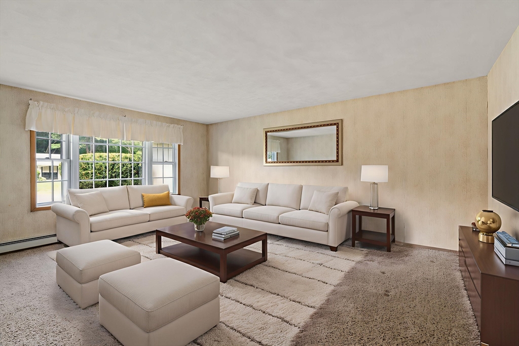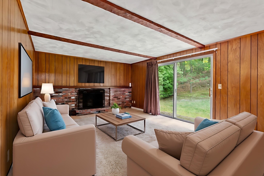 Discover this spacious and sun-filled 3-bedroom, 2.5-bath ranch, offering 1,678 square feet of comfortable living across seven versatile rooms. Nestled on nearly half an acre of land, this home combines privacy, potential, and a prime Wayland line location. Step into the inviting family room, where a cozy fireplace sets the tone for relaxing evenings and sliding glass doors open to a serene backyard—perfect for entertaining or unwinding in peace. The primary suite features its own private bath, creating a restful retreat within your home. An oversized one-car garage adds convenience and storage, while the flexible layout is ready for your personal touch. Whether you're a first-time buyer eager to build equity or an empty nester seeking single-level living, this property offers a rare opportunity to customize and create lasting value. Easy access to Rt 20 and Mass Pike. Act now and be in your new home this fall.