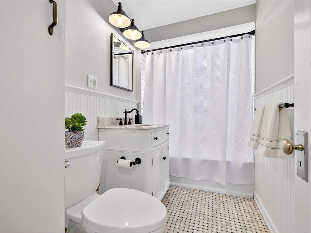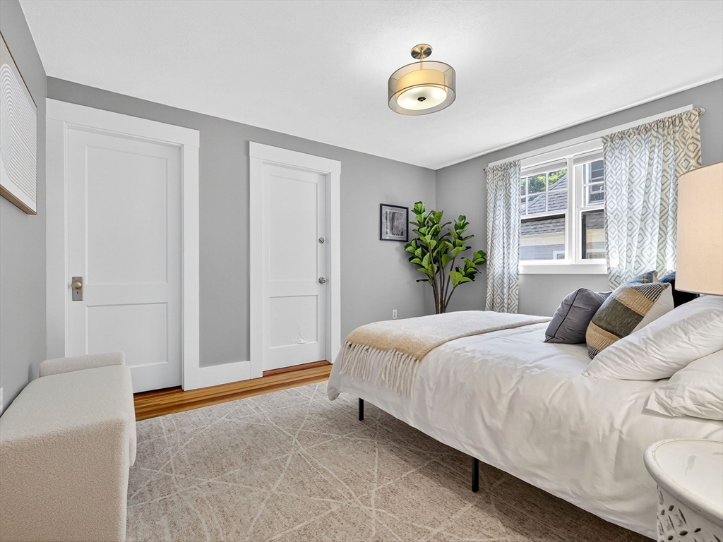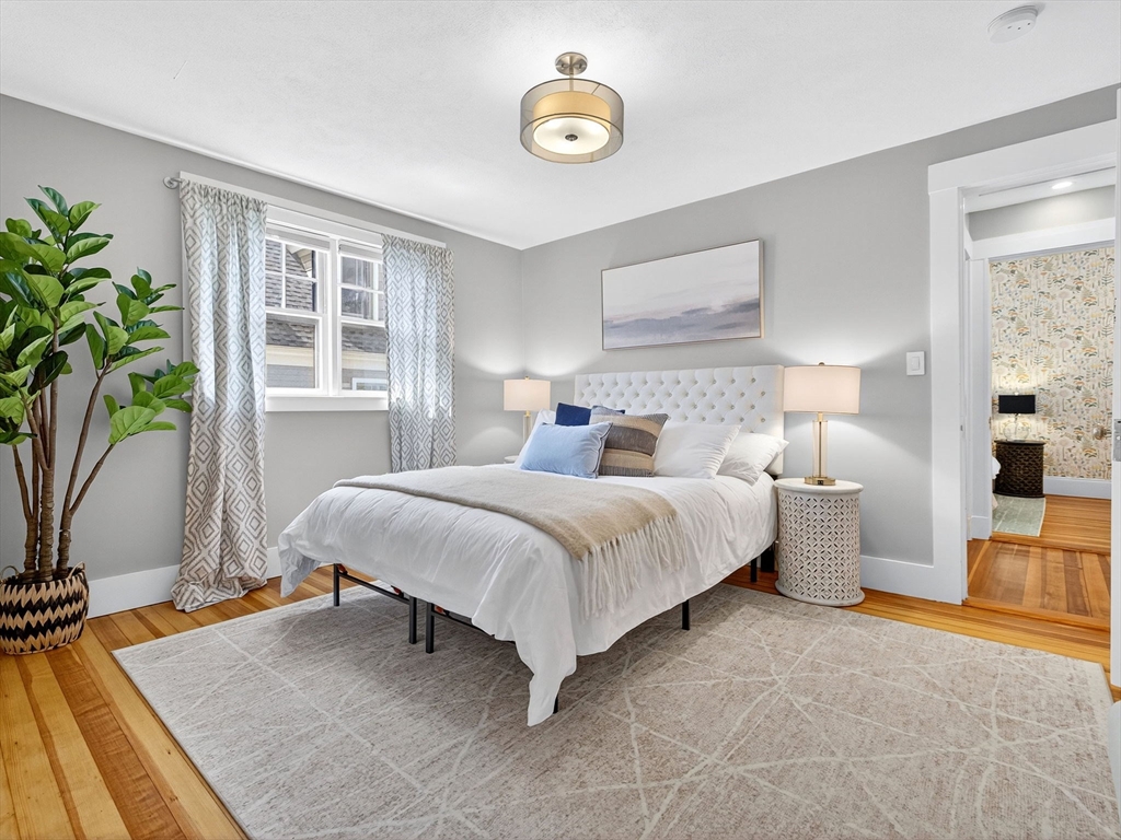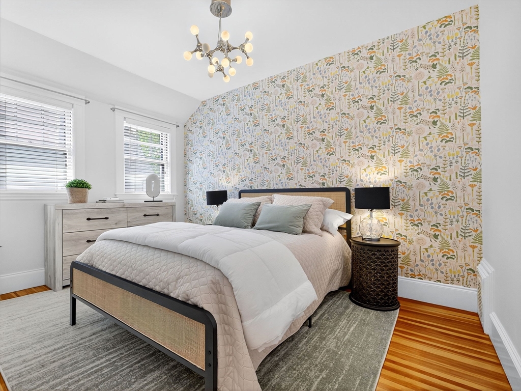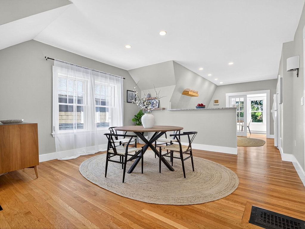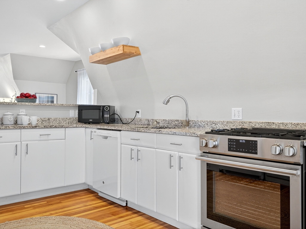 This bright penthouse, a true gem in a classic Gambrel-three family home, boasts an open-concept living and dining area that feels expansive due to cathedral ceilings and abundant natural light. The updated kitchen and bath feature modern tile, granite counters, & French Doors. Two bedrooms, separated by the full bath, offer ample closet space. Enjoy wood flooring, wide moldings, and a spacious south-facing sunroom overlooking a shared yard. Parking, Air Conditioning, and storage in an exclusive use attic space in addition to the basement are included. The vibrant location provides easy access to public transit, the Emerald Necklace Parks, and Jamaica Plain center. Welcome home to your urban oasis!