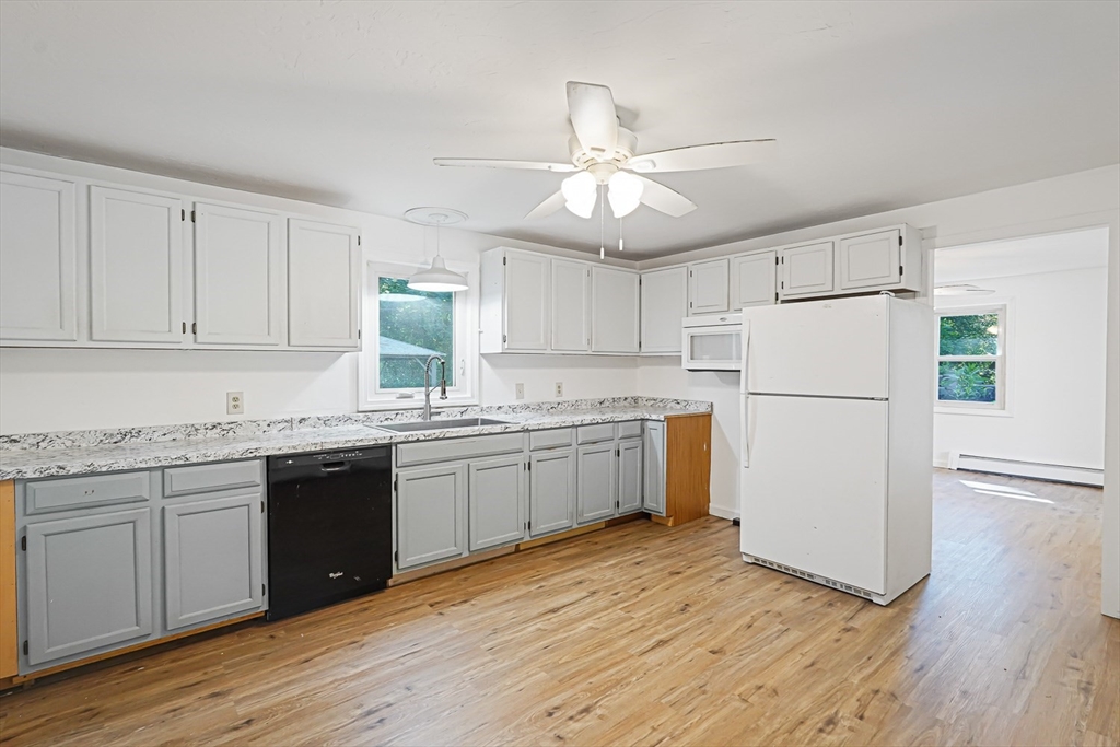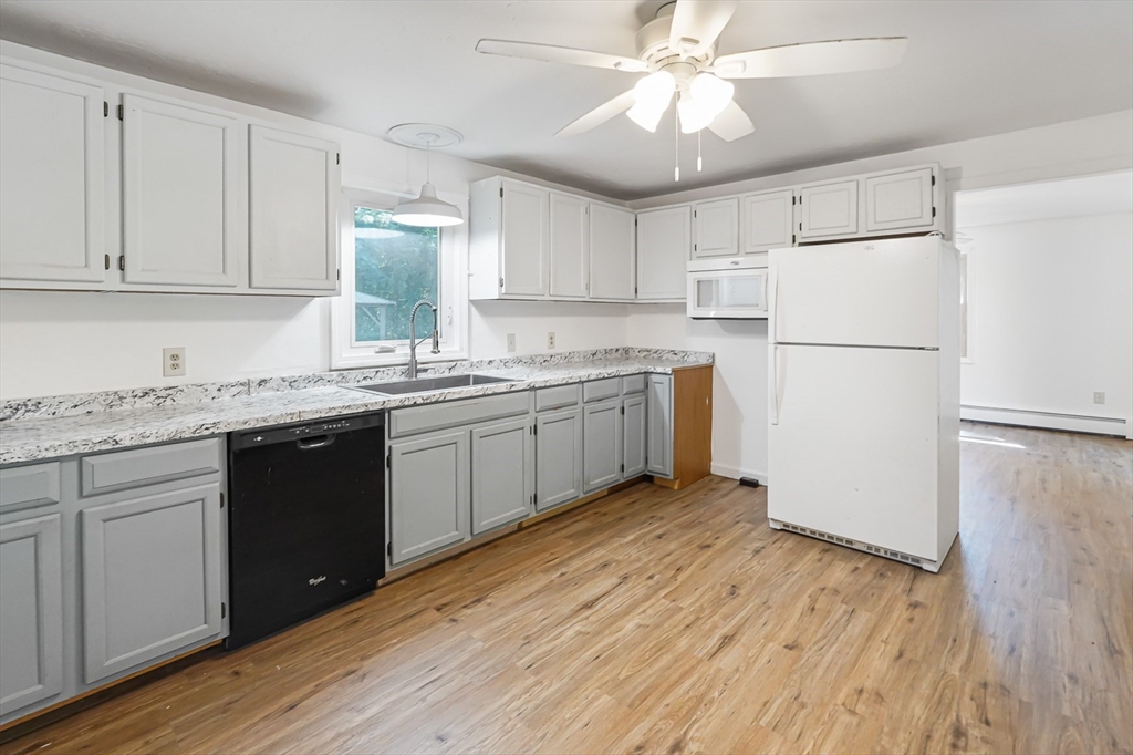 Open House Thursday, 9/4 6:30 PM - 7:30 PM & Saturday, 9//6 10 AM - 12 PM.Charming 3-bedroom, 1-bath home with peaceful pond views in a quiet neighborhood. Features include a one-car garage under, vinyl siding, replacement windows, and anewer roof. Inside you’ll find fresh paint, new flooring, and a bright layout with good natural light. The kitchen offers white cabinets and updated fixtures, while the full bath includes a tub/shower and modern flooring. The basement provides a Buderus boiler, wood-burning fireplace, workshop space, laundry hookups, and interior garage access. A level lot with fire pit area and water views makes this a great opportunity to add your finishing touches and enjoy Oxford living.
