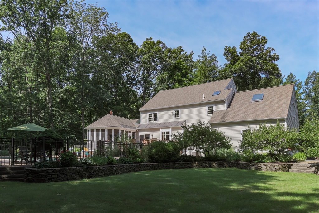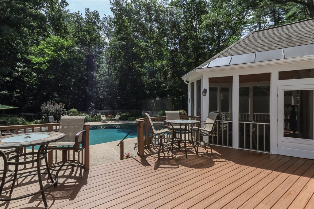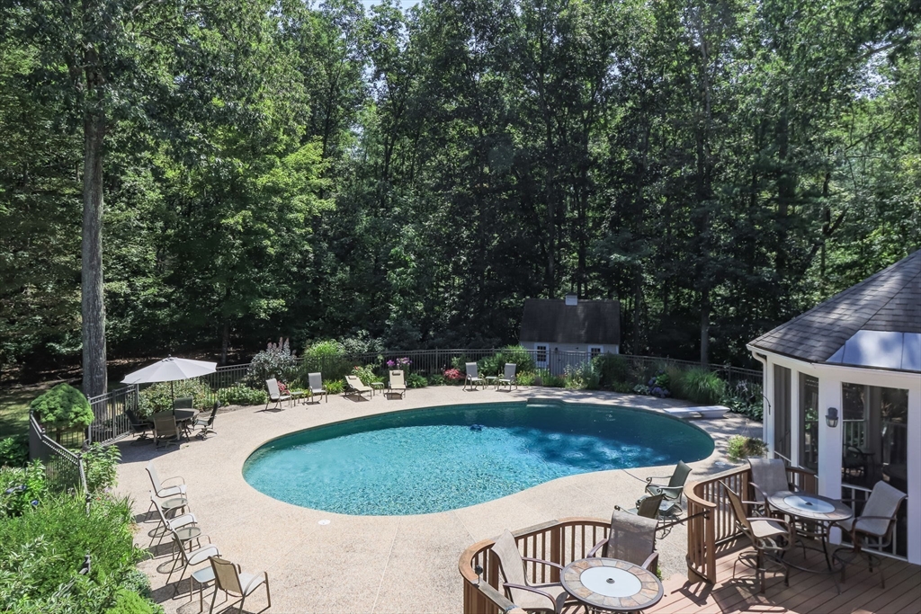 Meticulous Colonial in the highly desirable Partridgeberry Woods neighborhood! Beautifully updated offering a stunning backyard oasis w/ in-ground pool, deck, screened-in porch. Custom kitchen w/ large center island, paneled Sub-Zero fridge, Convection oven, Induction stove top, Steam oven, Island drawer microwave, wet bar, Copper hood. The vaulted octagon family room w/ fireplace opens to the kitchen & porch. Formal Dining sits off the kitchen, while the formal living room offers great flex space or home office potential. Mudroom w/built in cubbies, half bath & separate laundry complete 1st flr. Upstairs is a spacious primary suite w/ vaulted ceiling, walk-in closet & updated full bath w/ double vanity, tiled shower & air tub. Three large bedrooms & full bath complete the 2nd floor. Newly remodeled finished LL offers fireplace, bar area, 3/4 bath & storage. Full Walk-up attic, town water/sewer, gas heat, sidewalks, trails & ideal location near thriving town center, I-495 & T-station.