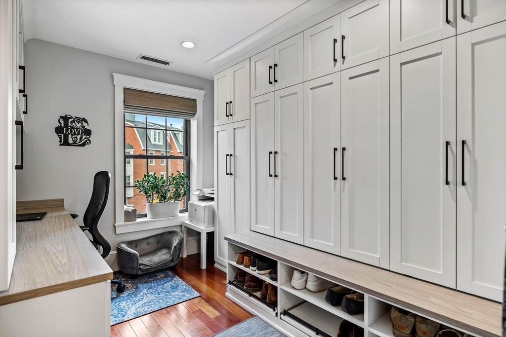 Truly one-of-a-kind, this expansive, newly renovated bi-level penthouse with deeded parking is located in one of Charlestown’s most sought-after locations, steps from Warren Tavern, Bunker Hill Monument, the Freedom Trail, and City Square Park. With Main Street at your doorstep and the North End and Downtown Boston just minutes away. This sun-filled duplex offers an open living and dining area with refinished hardwood floors, a private back deck, updated kitchen and appliances, plus a renovated bonus room transformed into a custom home office with built-in cabinetry and mudroom. A new skylight brightens the upstairs, with high ceilings, two spacious bedrooms, custom closets and cabinetry, recessed lighting, and automatic blinds. Offering central air, a tankless water heater, 2024 roof, low HOA fees, basement storage, and extensive renovations, this home delivers high-end living in one of Charlestown’s most coveted locations.