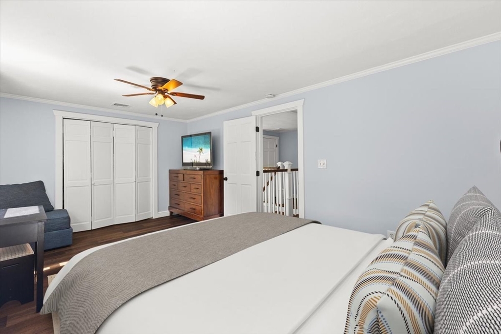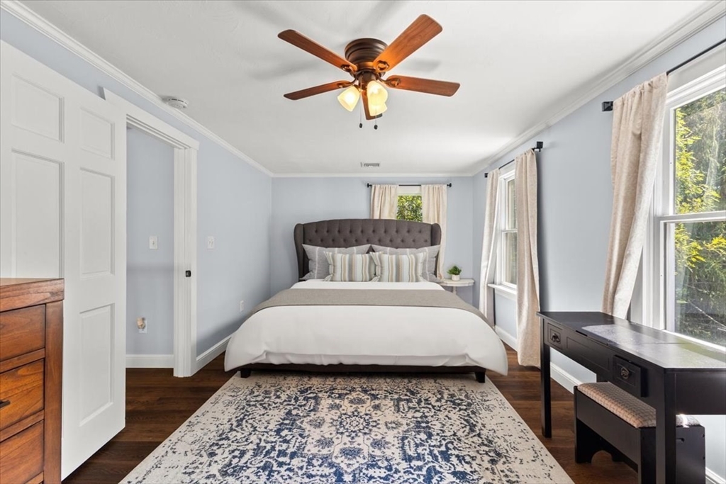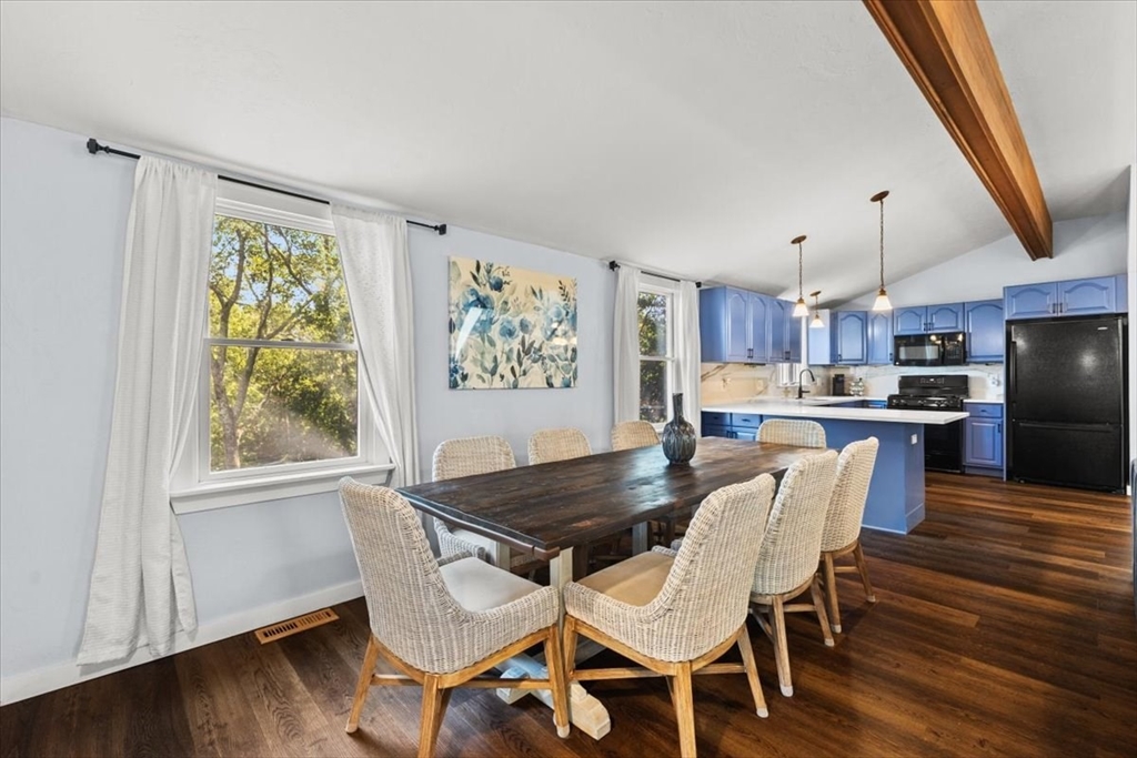The "House on the Hill" has been remodeled home is ready for it's new owners! As you drive up the hill you'll notice a nice breeze & the views from the top. There is a large sunroom that boast panoramic views; Enter into the 1st floor & you'll notice the open floor plan & vaulted ceilings w/2 accent beams & new laminate flooring throughout. The kitchen features painted cabinets, Quartz countertops & black appliances. 1st floor office makes for a good guest room w/full bath across the hallway; Staircase to the 2nd floor w/hardwood stairs & skylight & storage closet for additional space; Primary Bedroom is large & has a big walk-in closet; 2 additional bedrooms also good size & remodeled full bath complete the 2nd floor; Besides the views, outside is a storage shed & prep for a firepit/patio set up. Minutes to MBTA, Crescent Ridge, shopping & highway access. This home is turnkey & if you like open space, this is the one for you!