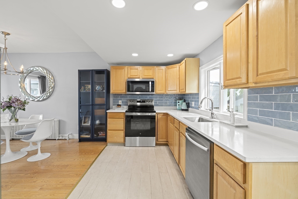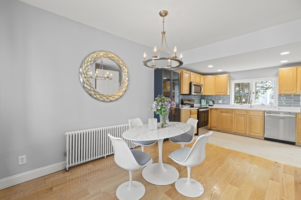 Charming and elegant single family house in west Everett near the Medford and Somerville border. Lovingly kept by the same family for 18 years, this home features a practical and flexible layout with high ceilings and abundant natural sunlight. The first floor offers a welcoming living room, a sun-filled dining room highlighted by a striking chandelier, and a bonus room ideal as a guest bedroom or home office. The kitchen showcases maple cabinetry, stone countertops and brand-new SS appliances including laundry. An updated full bath completes the main level. Upstairs are two comfortable bedrooms and a newly remodeled bathroom. Unfinished basement provides ample storage space. Gas heating. 2 parking spots. Located 2-minute walk to playground baseball fields. One block from multiple bus routes and Best Buy, 3 minute’s drive to Encore, Costco, Gateway Mall and MBTA orange line’s Wellington station. This home offers exceptional convenience, comfort, and the ease to reach Boston in minutes.