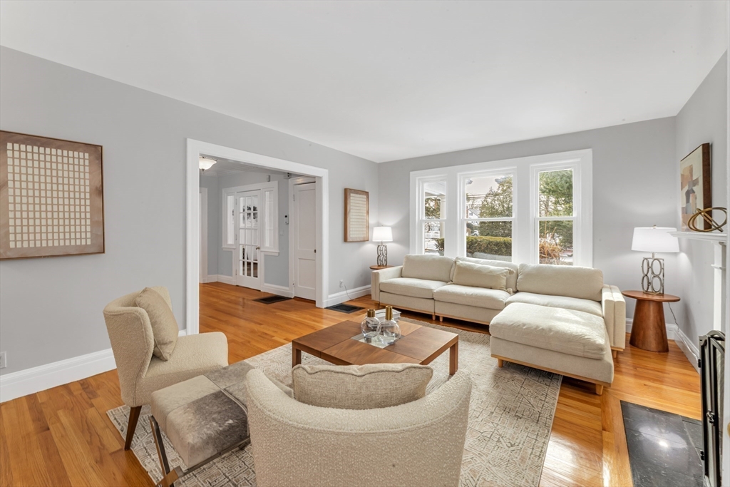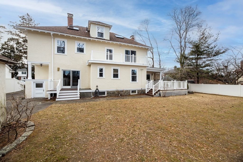 Magnificent Bellevue Hill Colonial, instantly recognized by its stately horseshoe driveway and exquisite stucco exterior. This exceptional residence offers 2,900 SF of living space across three finished levels, set on a 14,614 SF lot with garage parking. A grand foyer with dentil crown molding welcomes you into elegant formal spaces, including a fireplaced living room and a sun-filled library with a wall of windows, fireplace, and French doors overlooking the expansive deck and serene, pastoral gardens. The fireplaced formal dining room flows seamlessly into a butler’s pantry and modern eat-in kitchen featuring chef-quality appliances. The main level also includes a flexible office or guest room and a half-bath. The second floor offers four generously sized bedrooms, two full baths, and access to two decks. The third floor is highlighted by a private primary suite with a spa-like bath—an ideal retreat. A rare opportunity blending classic architectural detail with modern comfort! WOW!!!
