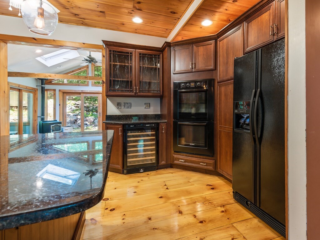 Nestled in a serene, country setting, this beautifully updated 3-bedroom home offers the perfect blend of luxury and tranquility. As you step inside, you’re immediately greeted by the warmth of newly refinished wide plank floors that flow throughout the home. At the heart of the house is a gourmet kitchen that will delight any culinary enthusiast. With high-end appliances, custom cabinets, and built-in wine fridge, this kitchen is a true masterpiece, perfect for both everyday meals and entertaining in style. The spacious, open living areas offer plenty of room for relaxation that flow into the private backyard. Step outside and relax to the sound of soft waterfalls, or enjoy direct access to miles of trails—ideal for hiking, biking, or ATV riding right from your back door. Additional updates include: Roof, heating system, and tank-less hot water system all replaced just 6 years ago, fresh trim outside the home and a brand-new larger septic tank in 2025 for worry-free living.