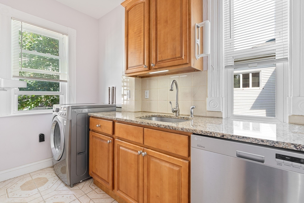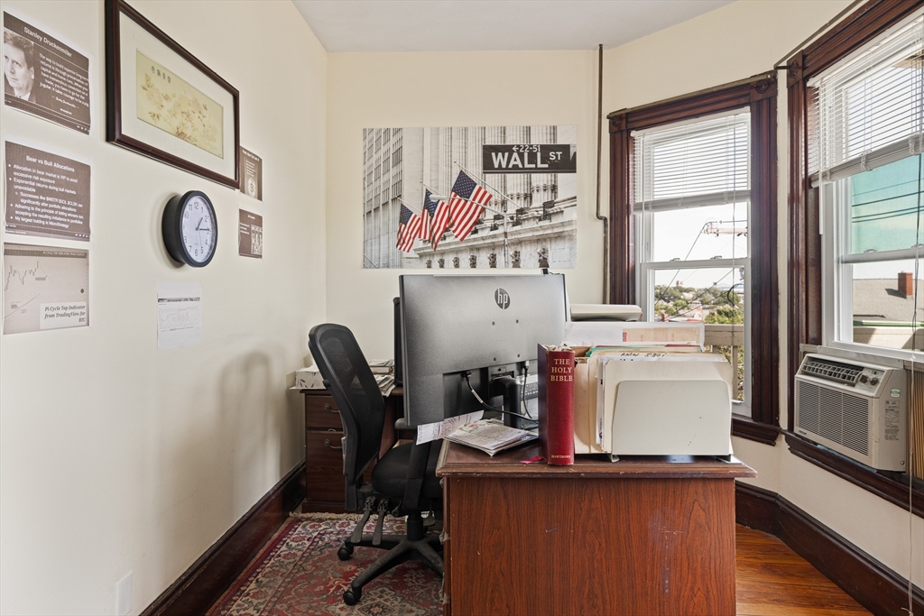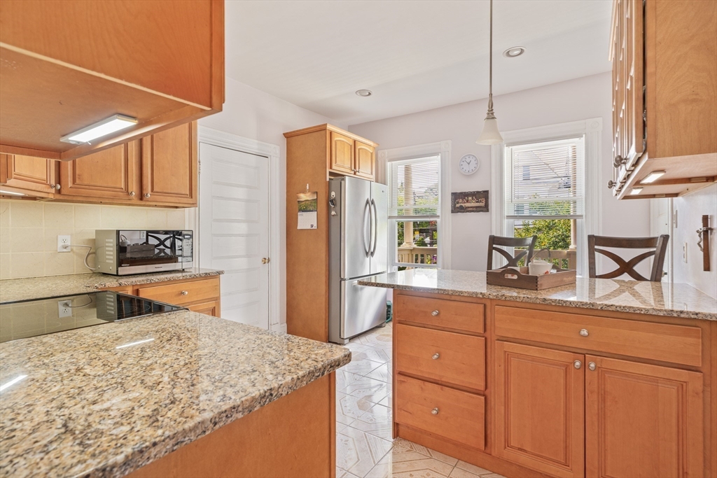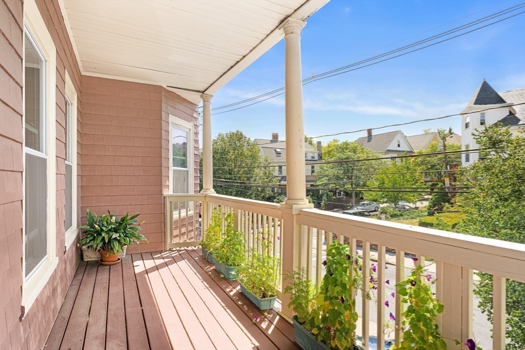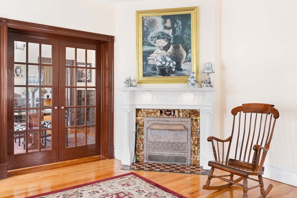 Perched atop historic Prospect Hill, this Colonial Revival–style condo charms with period detail and an unbeatable location. Featuring bay windows, tall ceilings, a classic fireplace, French doors, and a built-in china cabinet, the home balances vintage character with modern comfort. Extensively renovated in 2013, the kitchen boasts granite counters, stainless steel appliances, a breakfast nook, and access to one of two generous private outdoor spaces—perfect for al fresco dining or morning coffee. With 2 bedrooms plus an office, hardwood floors throughout, in-unit laundry, private basement storage, and off-street parking, this home checks every box. Situated in a well-connected neighborhood near the East Somerville Green Line station and Community Bike Path. Just minutes to Union Square’s shops, restaurants, and weekend farmers market, with easy access to Cambridge and downtown Boston—this is a rare offering that blends architectural charm with everyday convenience.