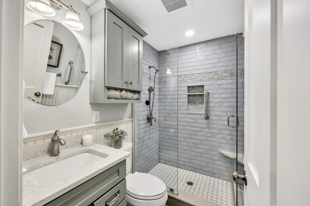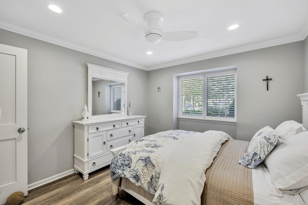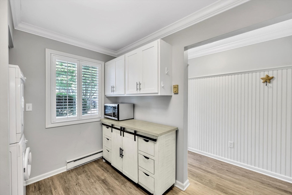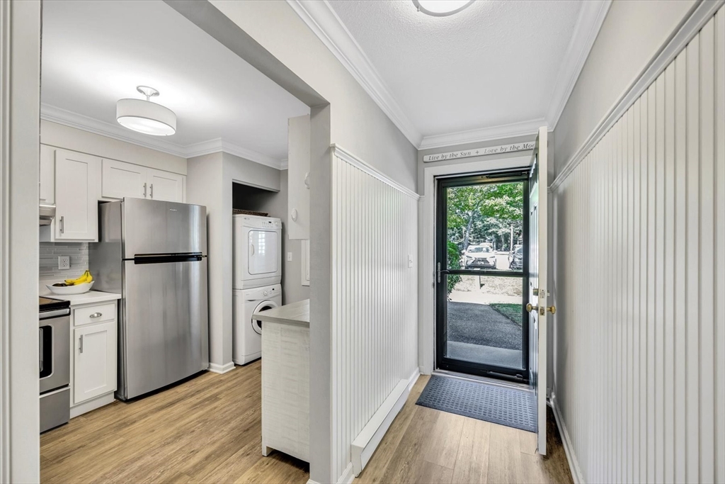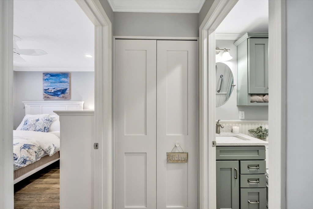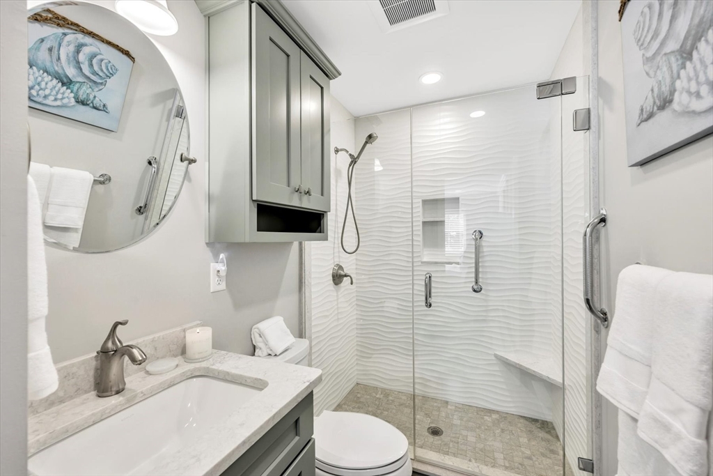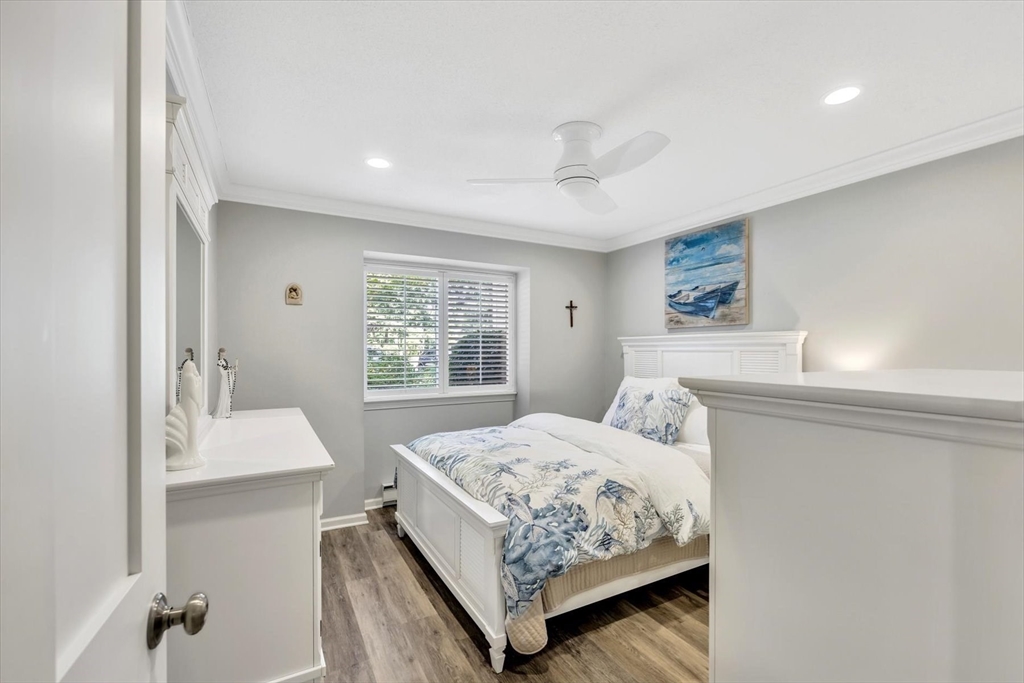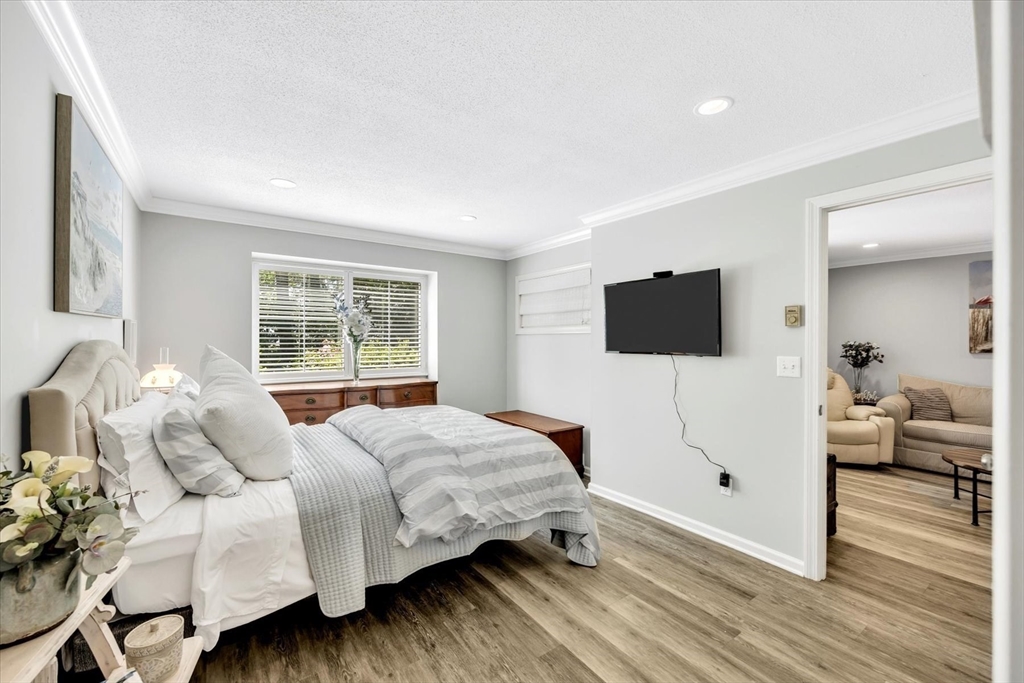 You will fall in love with this beautiful Garden-Style 2-bedroom, 2-bath entry level condominium in Eaton Village at Ocean Edge Resort. This unit offers comfort, style, and a picturesque view of the Jack Nicklaus Designed Private Golf Course. Step inside to find a spacious living and dining room combo with elegant crown molding throughout and modern recessed lighting, creating a warm and inviting atmosphere. The updated kitchen features stainless steel appliances, perfect for cooking and entertaining. Enjoy indoor-outdoor living with a newer sliding glass door that opens to your private patio area, ideal for relaxing and taking in the serene golf course views. Both bathrooms have been renovated, featuring stunning walk-in tiled showers that add a touch of luxury. Convenient to the Cape Cod Bike Trail, restaurants, shops, and beautiful Cape Cod Bay beaches. Don't miss your opportunity to experience the Ocean Edge lifestyle.