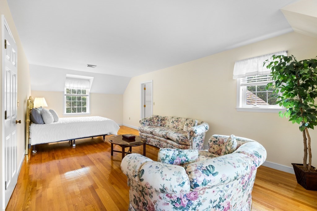 Welcome to Hunters Ridge—Andover’s hidden gem. Set on ~13 private acres with only 27 homes, 10 Martingale Lane lives like a single-family with condo ease. Main level features a fireplaced living room, formal dining, a well-appointed kitchen open to casual living/office, and a large first-floor primary suite with private bath and generous closets. A peaceful three-season/sunroom overlooks wooded views. Upstairs offers an expansive second primary suite with its own bath and walk-in closet, plus an unfinished room—ideal for office, gym, studio, playroom, or future expansion. Full lower level provides superb storage and finish potential. Attached garage, central air, mature landscaping, and quiet cul-de-sac setting close to downtown, commuter rail, and Rts 93/495. Association handles exterior maintenance—simply move in and enjoy refined, low-maintenance living in one of Andover’s most sought-after townhouse communities.
