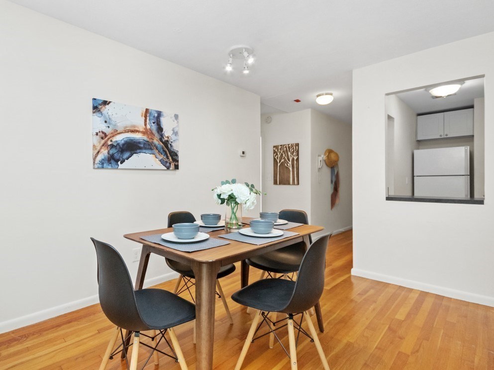 Wonderful Washington Square! This upper-floor condo in an elevator building is perfect for first-time buyers or those looking for an investment. The spacious dining and living room space features beautiful hardwood floors and a pass through into the kitchen for entertaining. Enjoy morning coffee on the private balcony which faces the quiet wooded area in the back of the building. The hardwood floors continue into the good-sized bedroom with its own closet in addition to an additional in-unit walk-in large closet in the living room. One parking space and common laundry on the first floor in the pet-friendly building completes this home. Fantastic location, just moments from restaurants, shops, the MBTA’s C & D Green lines.
