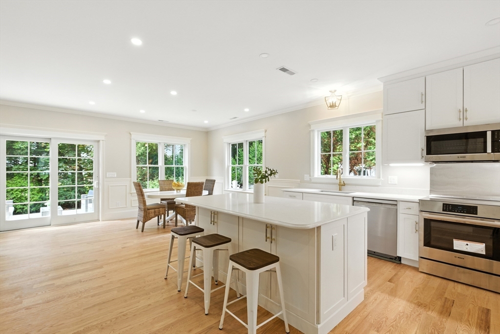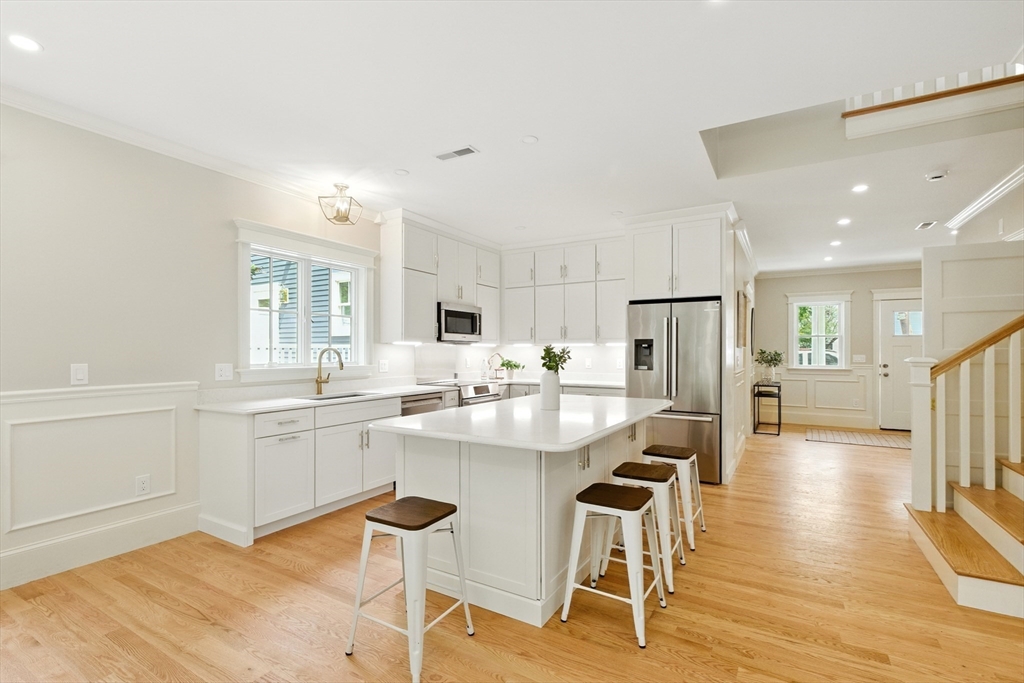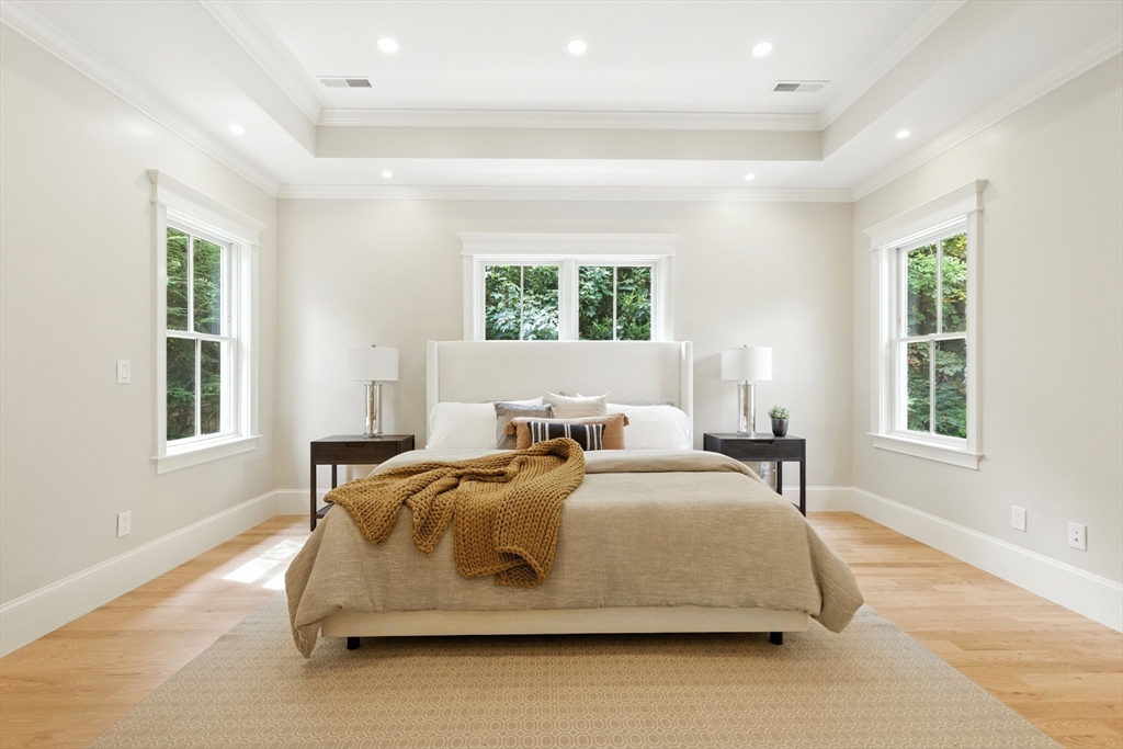 Experience the best of easy living in this newly built, sprawling townhome in sought after Newton Centre. Thoughtfully designed for downsizers, multigenerational living, or anyone seeking comfort and quality, this energy-efficient home by a trusted Newton builder offers both convenience and style. The main level provides true one-floor living with direct garage entry, an open kitchen/dining/living area that extends to a private patio and yard, plus a den/office, powder room, laundry, and serene primary suite. Upstairs, three bedrooms and two baths provide flexible space for family or guests, while the finished lower level offers a spacious media room, a large bedroom suite, second half bath, ample storage, and an additional laundry room. Set in a peaceful location with easy access to Boston, Cambridge, Boston College, Heartbreak Hill, and nearby houses of worship, this home combines comfort, flexibility, and quality craftsmanship in a coveted Newton setting.