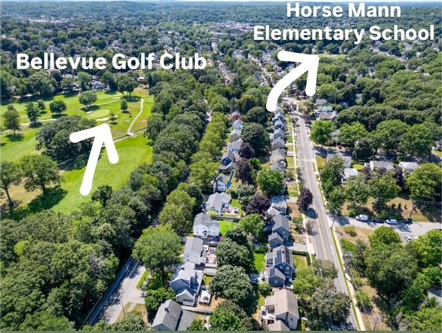 Picture-Perfect Eastside ranch checks all the boxes! Located across from the desirable Bellevue Golf Course, enjoy scenic views year-round and just steps to Horace Mann School, Whole Foods, the bus line, and the commuter rail. Inside, the sun-filled living room welcomes you with a bay window, fireplace, and French doors. The main level offers two spacious bedrooms with generous closets and a full bath. The large open-concept kitchen and dining room flow to a bright sun porch and onto an expansive deck overlooking a professionally landscaped, fenced-in yard, ideal for big gatherings. Lower level provides incredible space, featuring a bedroom, full bath, laundry room, office for work-from-home, and a large family room with a bar, perfect for entertaining and game day. New roof, four new mini-splits and a newer boiler, add comfort and efficiency throughout the seasons. Additional highlights include, walk-up attic with amazing expansion potential & 1 car garage. Don't miss it!